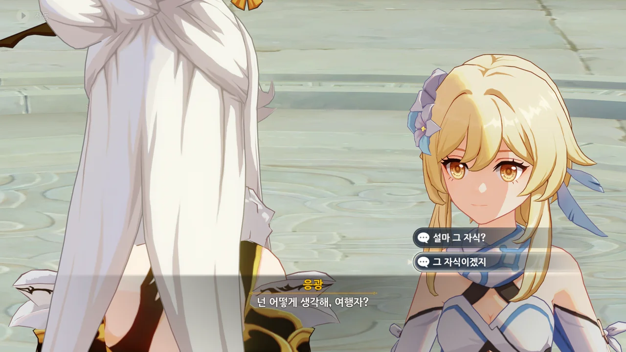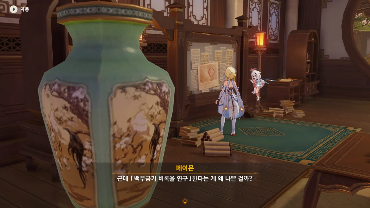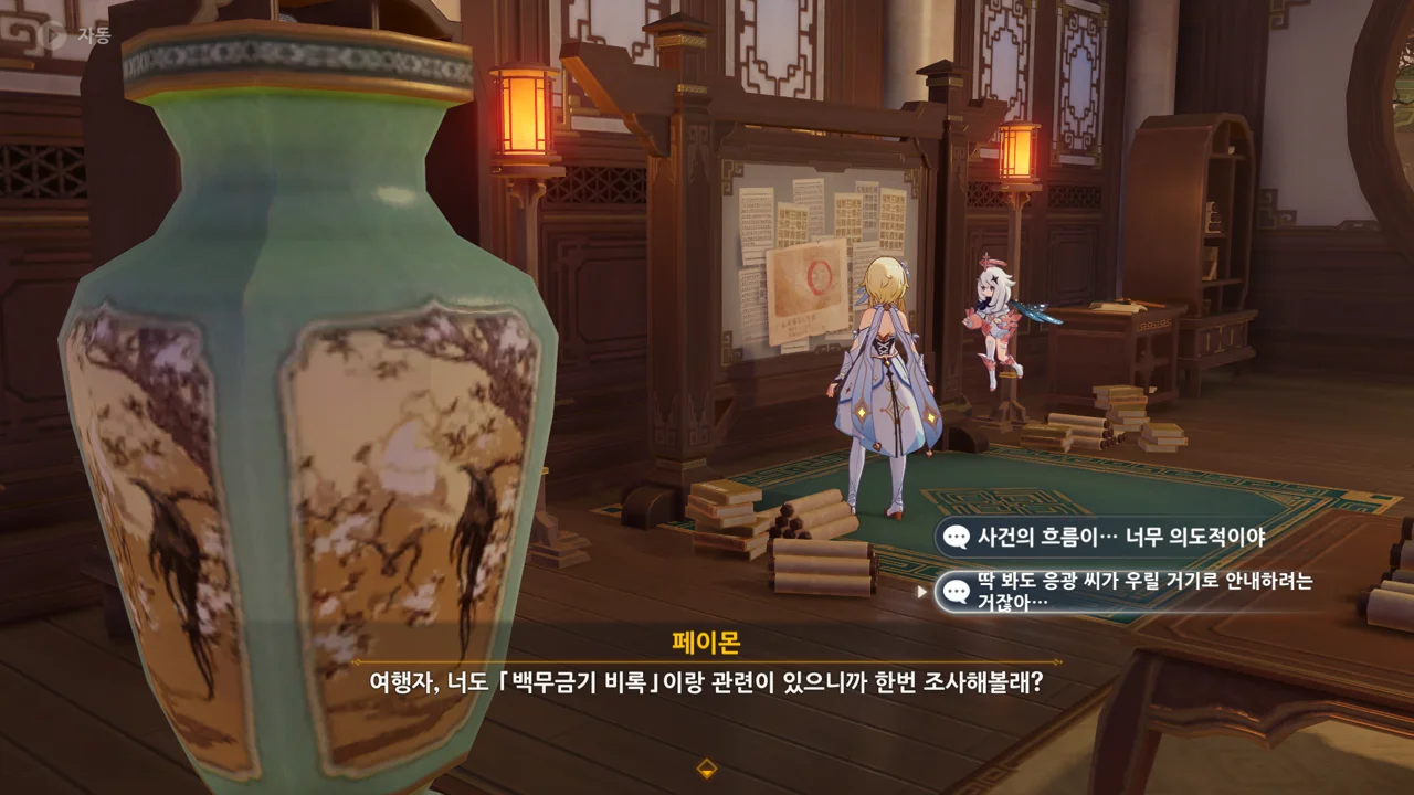 여행자 역시 「백무금기 비록」과 연관이 있으니, 가서 조사해 보자는 페이몬. 응광에게 제대로 낚였다.