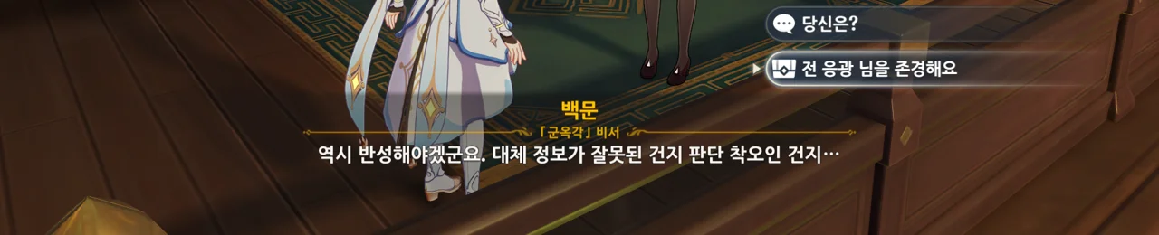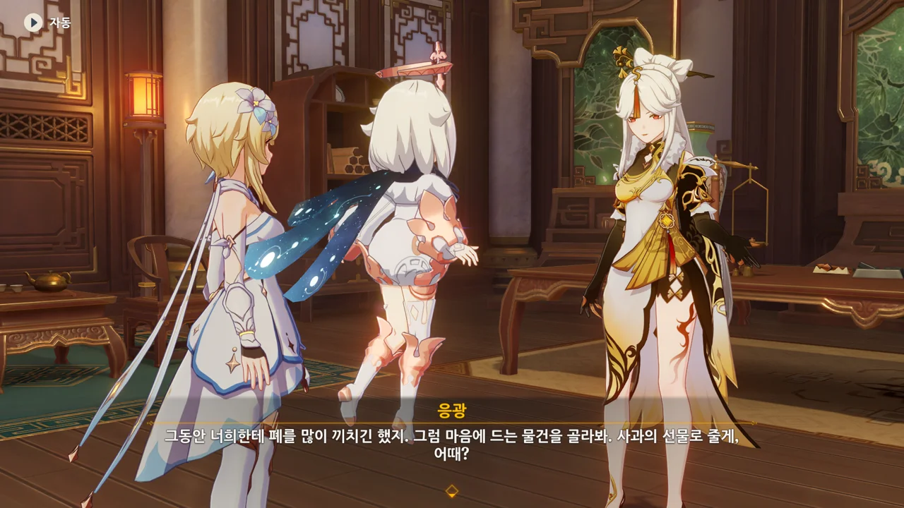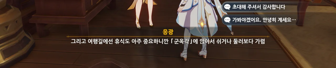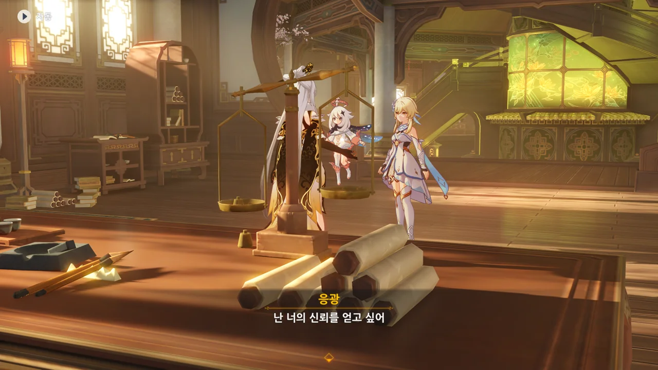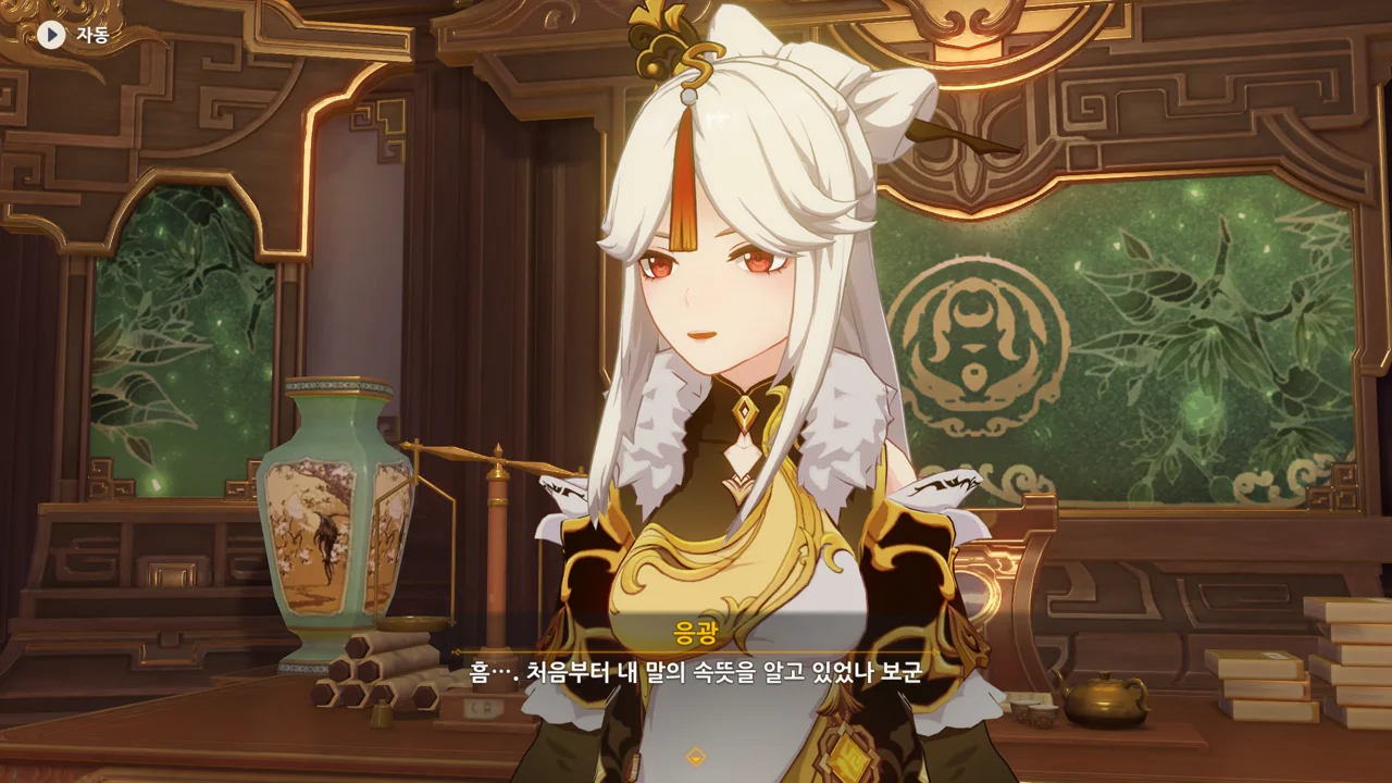 하지만 리월의 상업 기밀은 여행자에게 아무런 쓸모가 없다며, 자신은 여행자의 신뢰를 얻고 싶다고 말하는 응광.