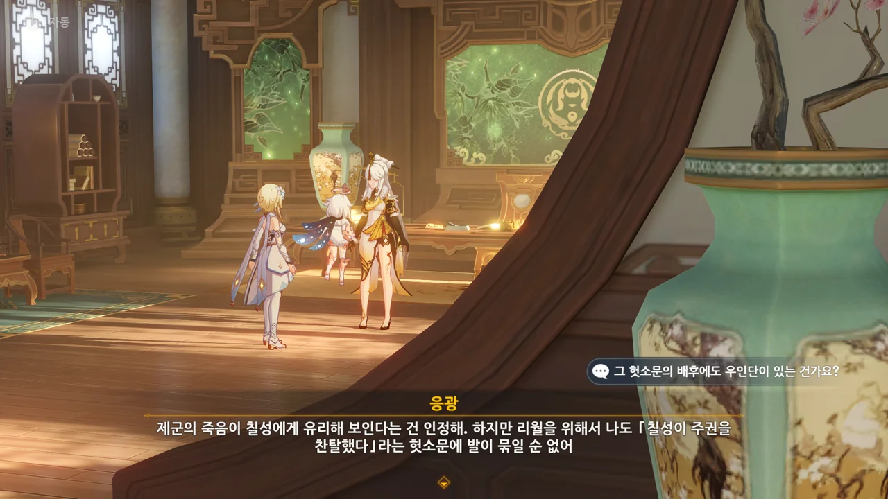 아니, 우리가 리월에 도착하기 전에 이미 진이 보낸 편지가 리월 칠성에 닿았던 거야? 그리고 응광은 여행자가 리월에 도착하자마자 사람을 붙여 미행했고?