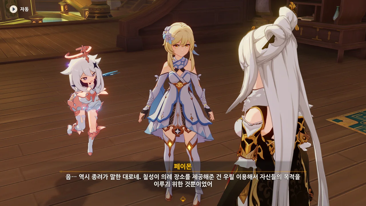 참 재미있어. 우인단도 리월 칠성도 사람을 붙여 미행하는 여행자라니. 이때부터 요주의 인물이었다는 건가.