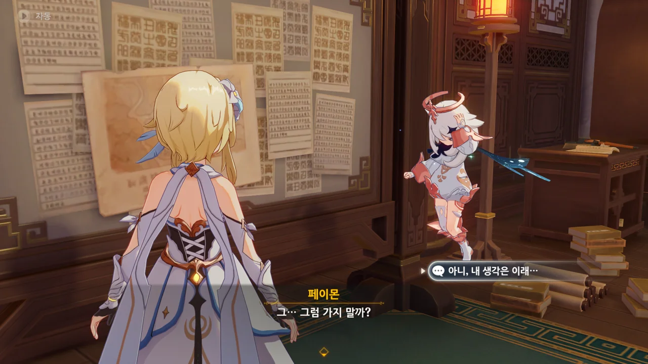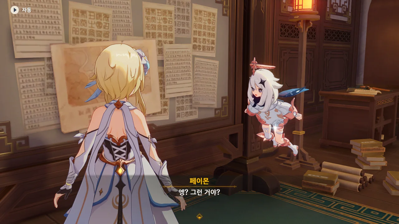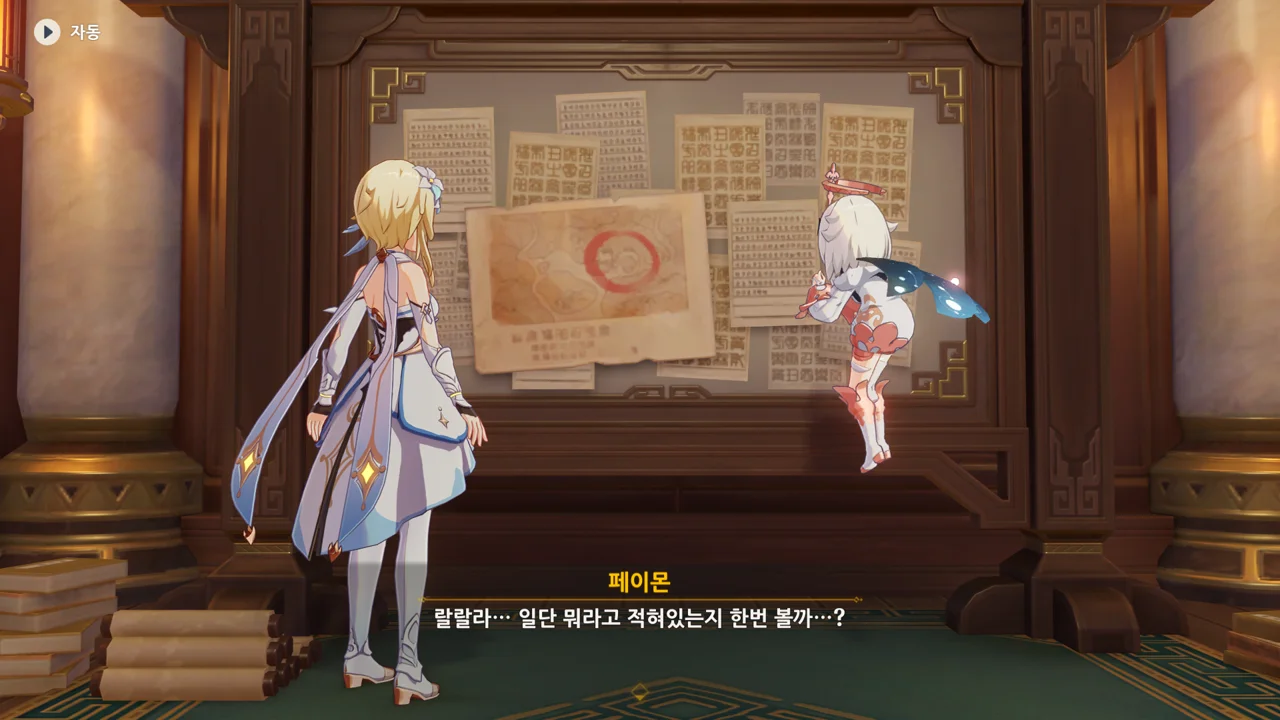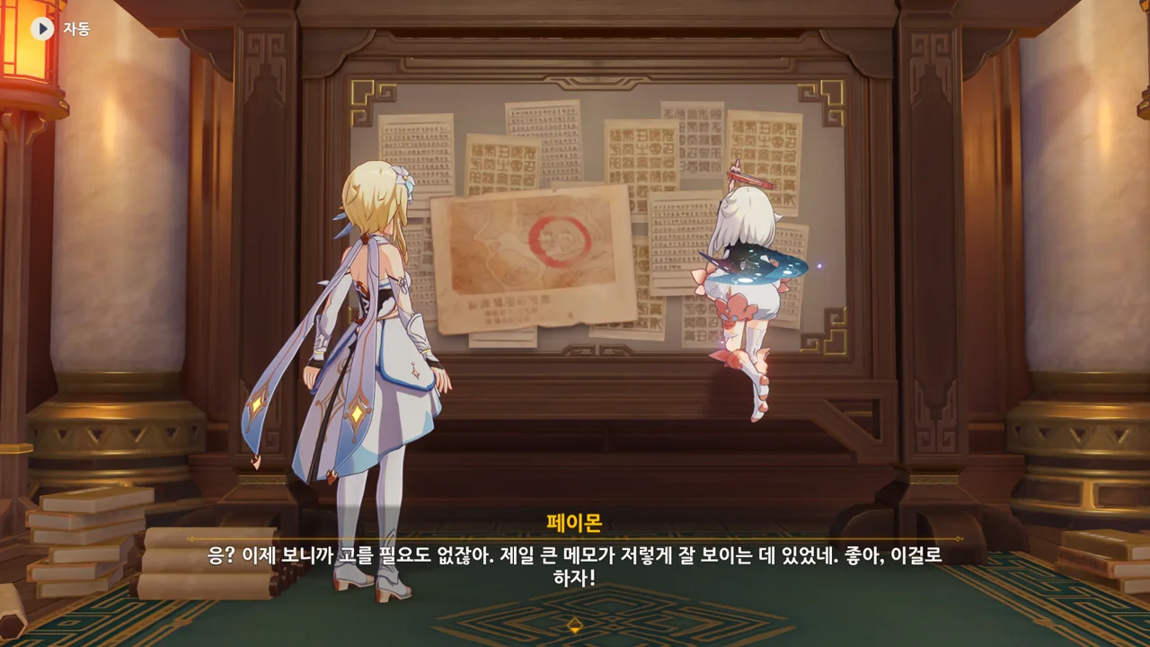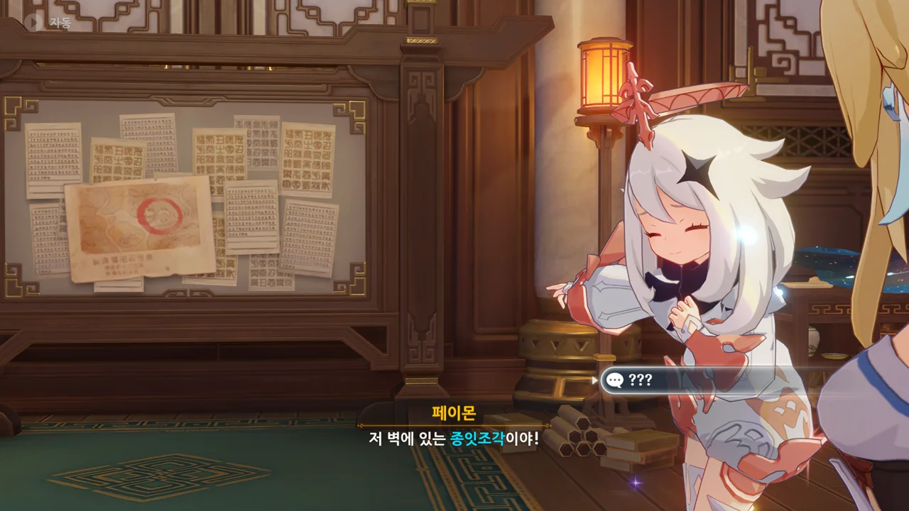그리고 페이몬이 고른 건 벽에 있는 종잇조각이었다.