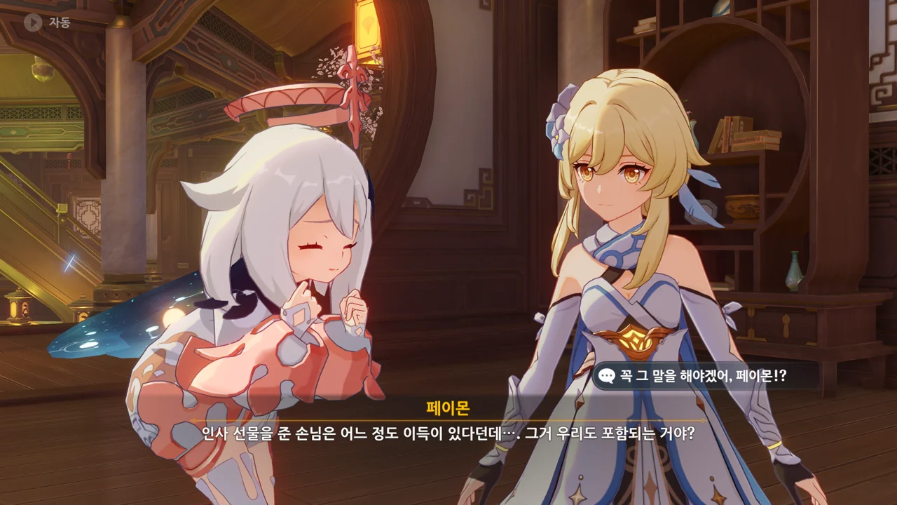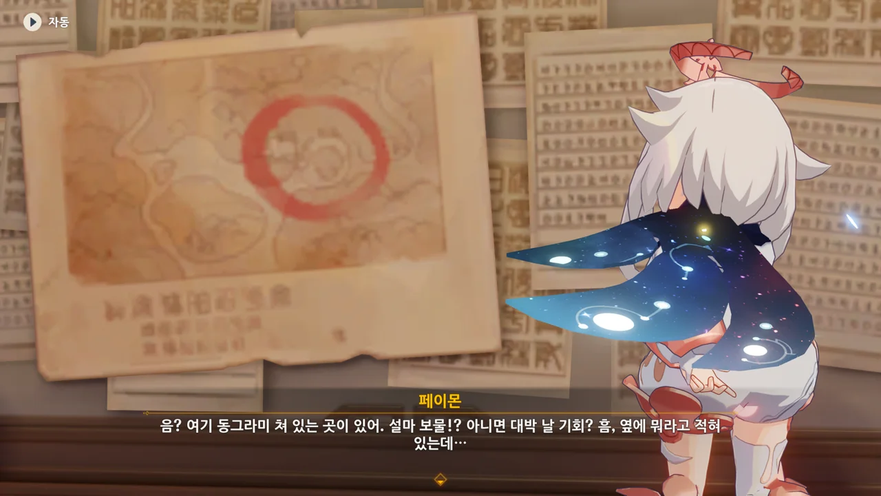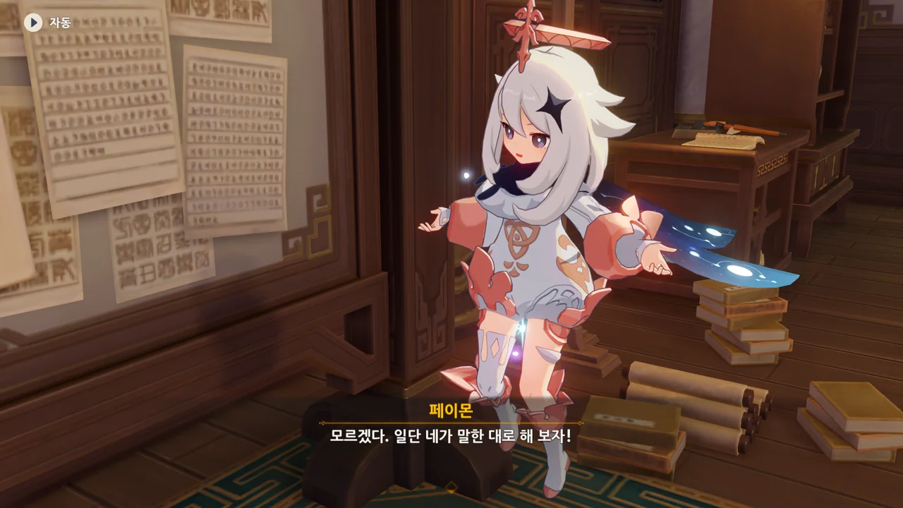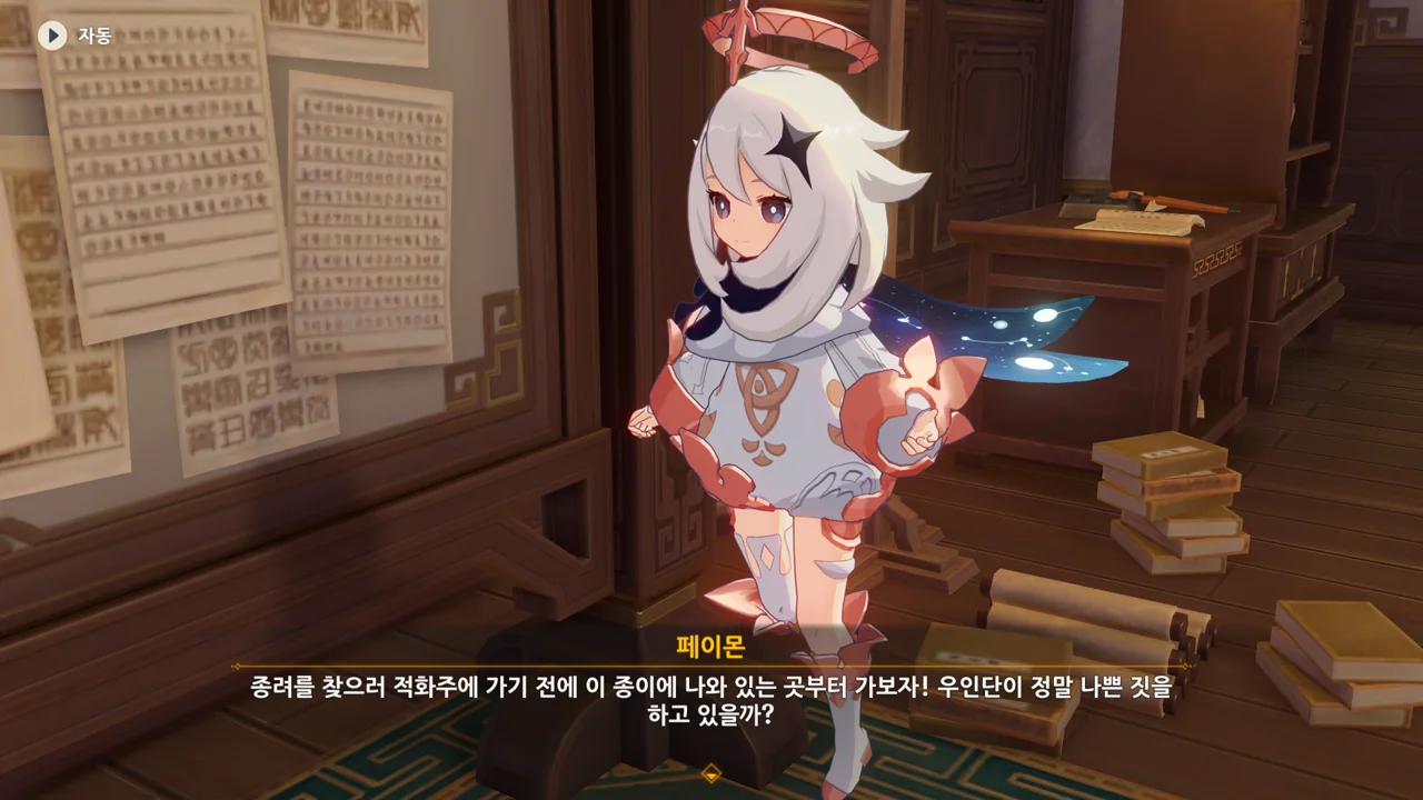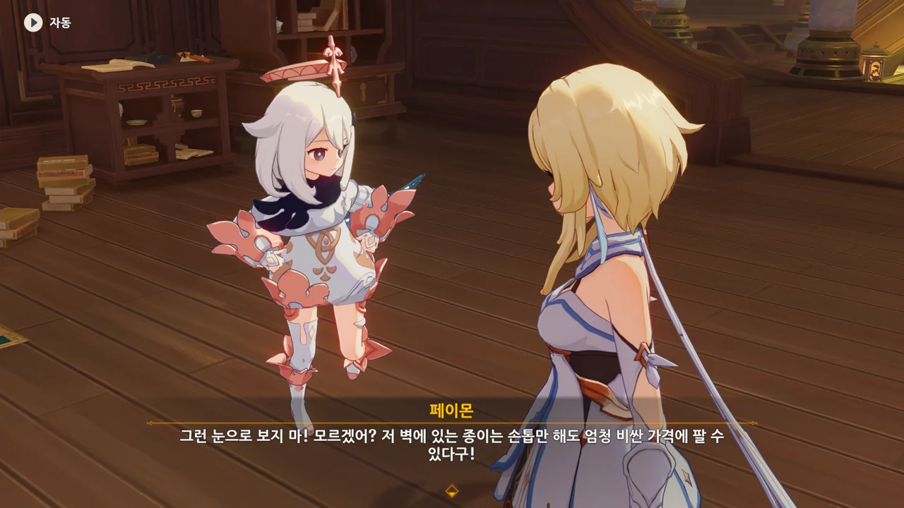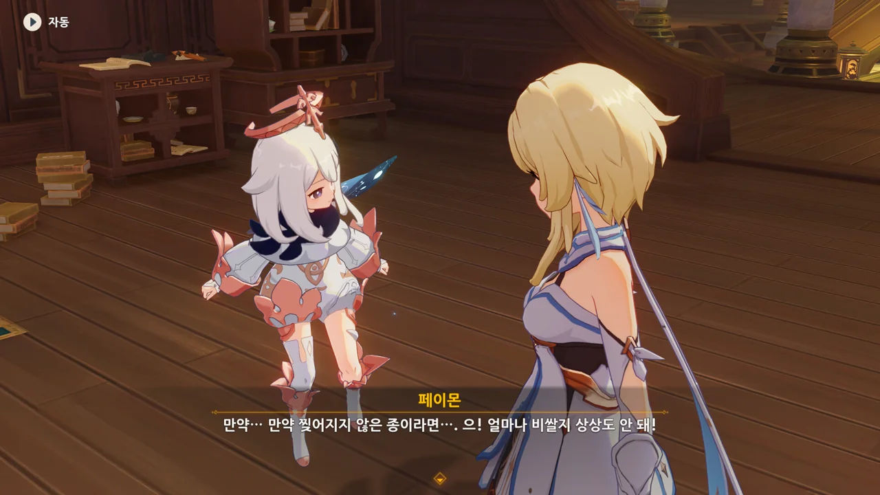 그리고 페이몬이 고른 건 벽에 있는 종잇조각이었다.