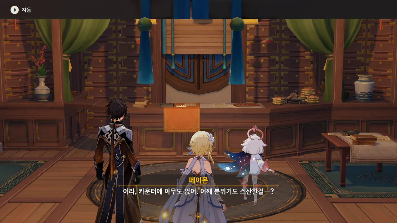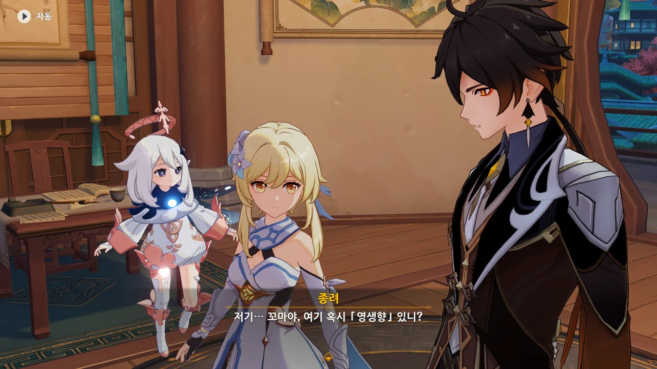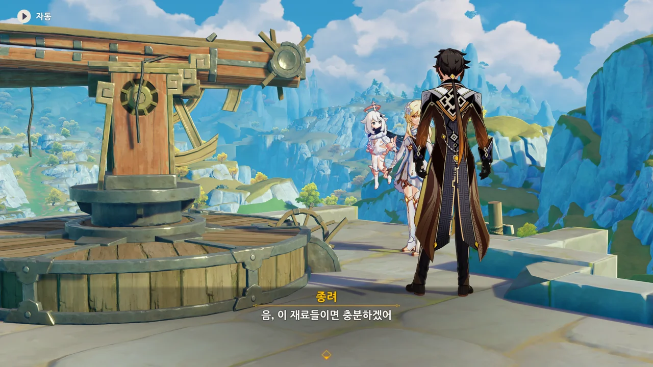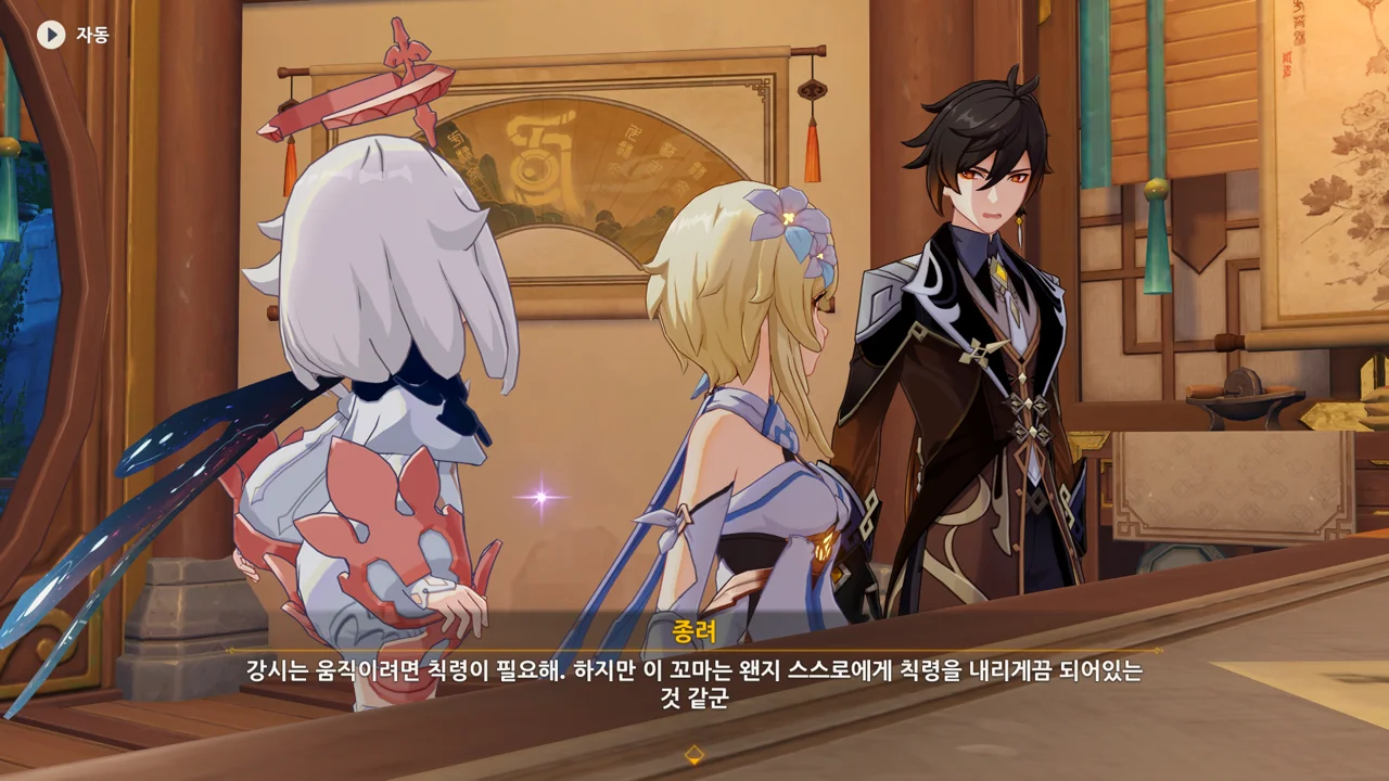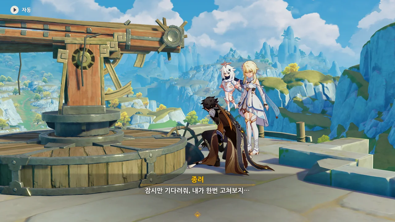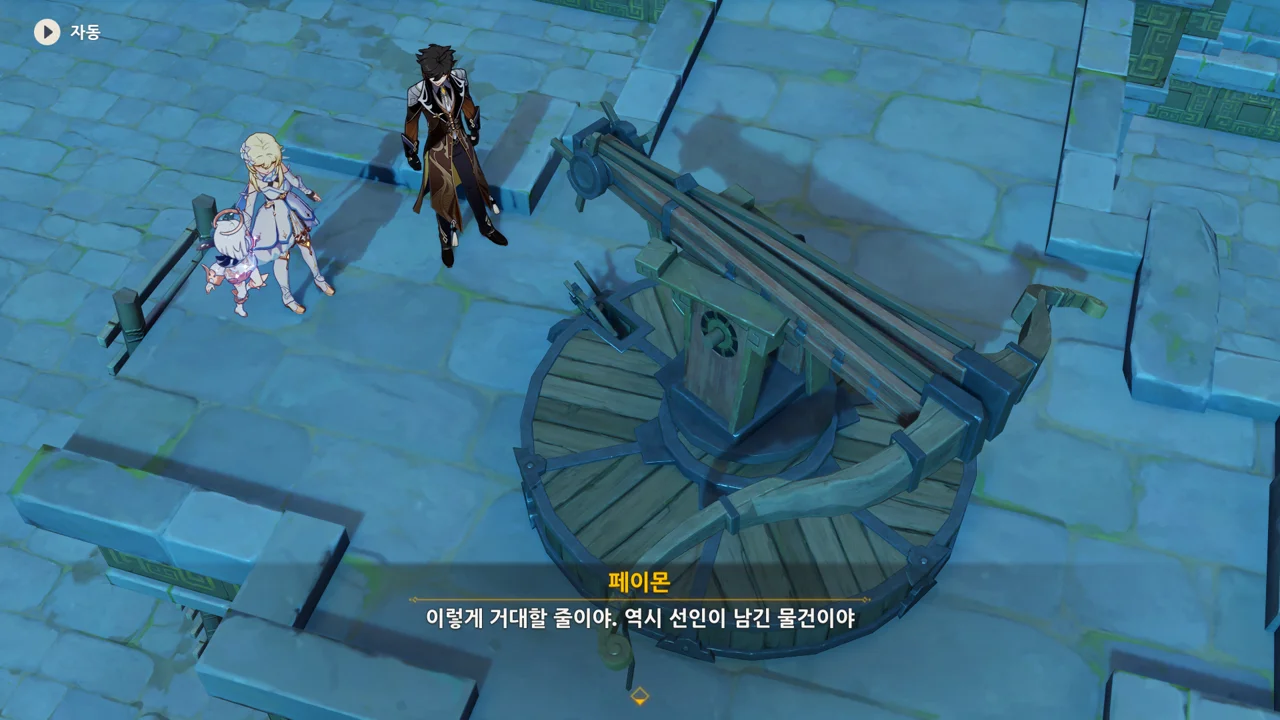 종려와 여행자는 무덤덤하게 서 있는 데에 반해, 페이몬 혼자 화들짝 놀란 모습이 너무 귀엽다.