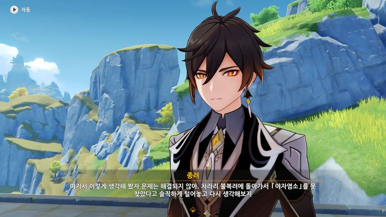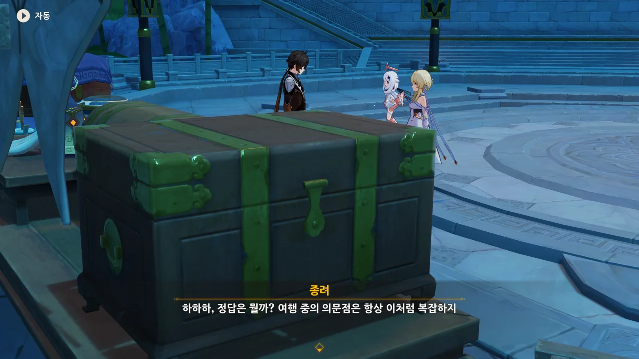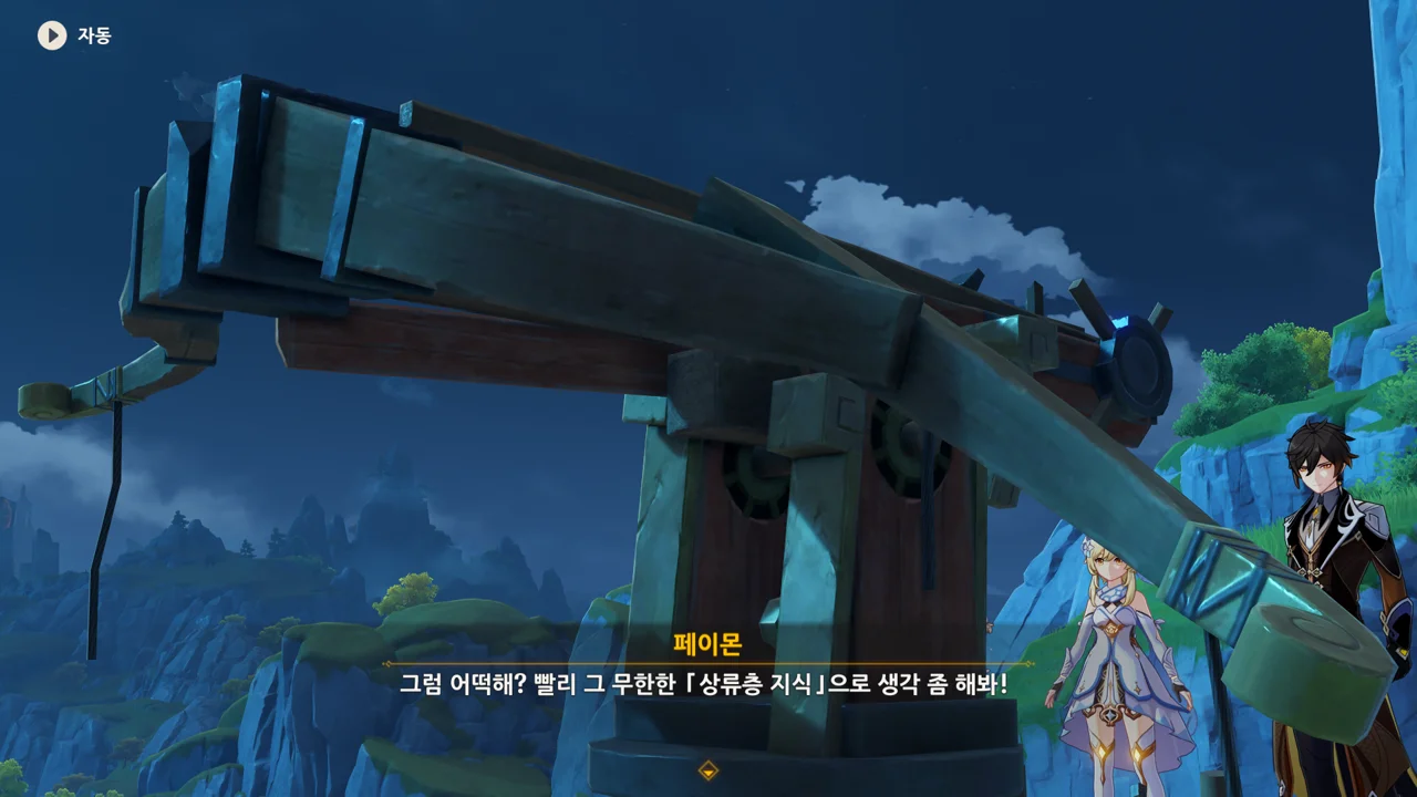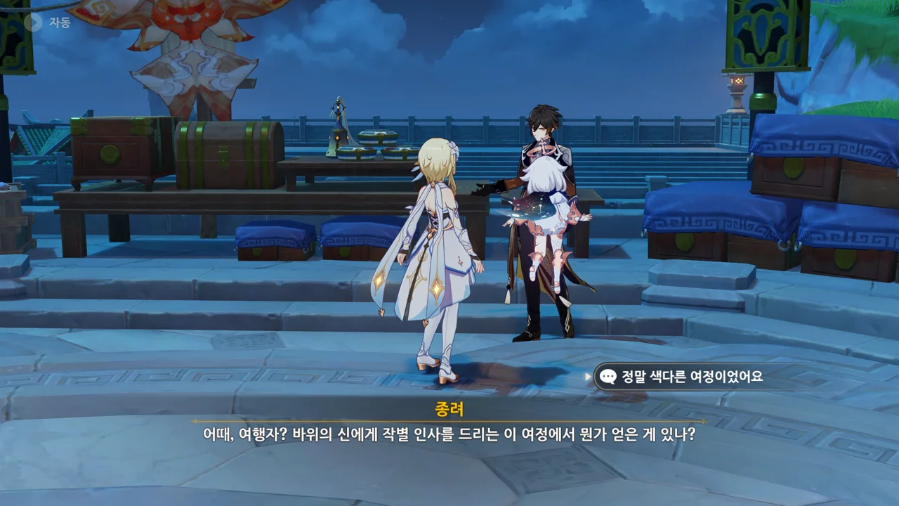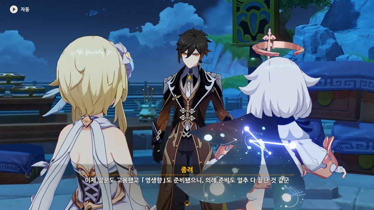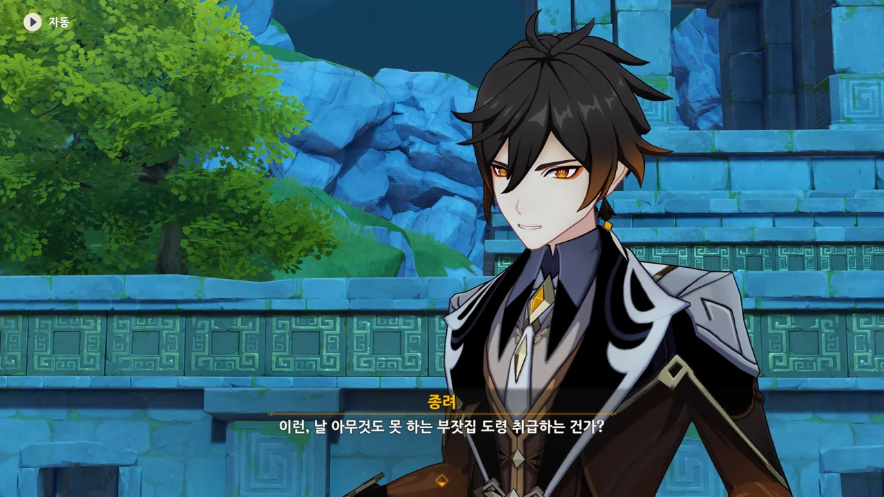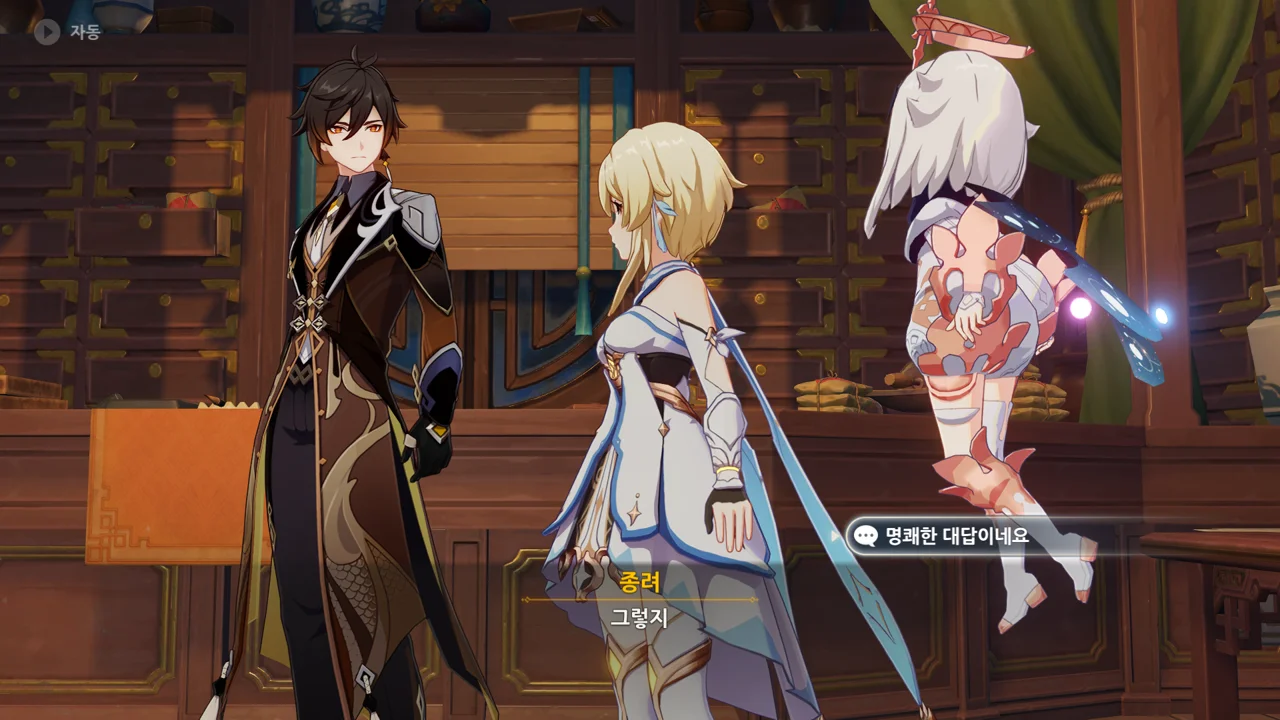 종려와 여행자는 무덤덤하게 서 있는 데에 반해, 페이몬 혼자 화들짝 놀란 모습이 너무 귀엽다.