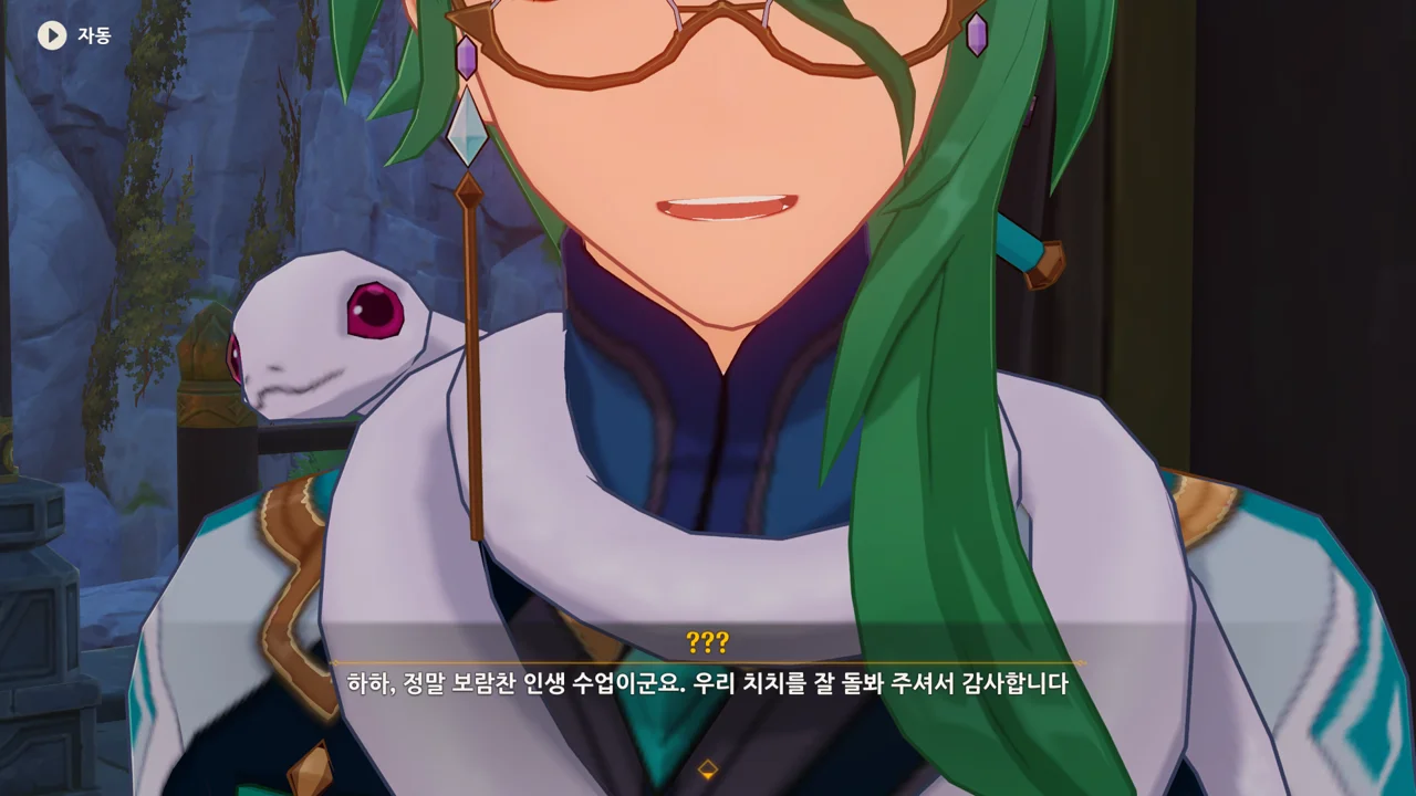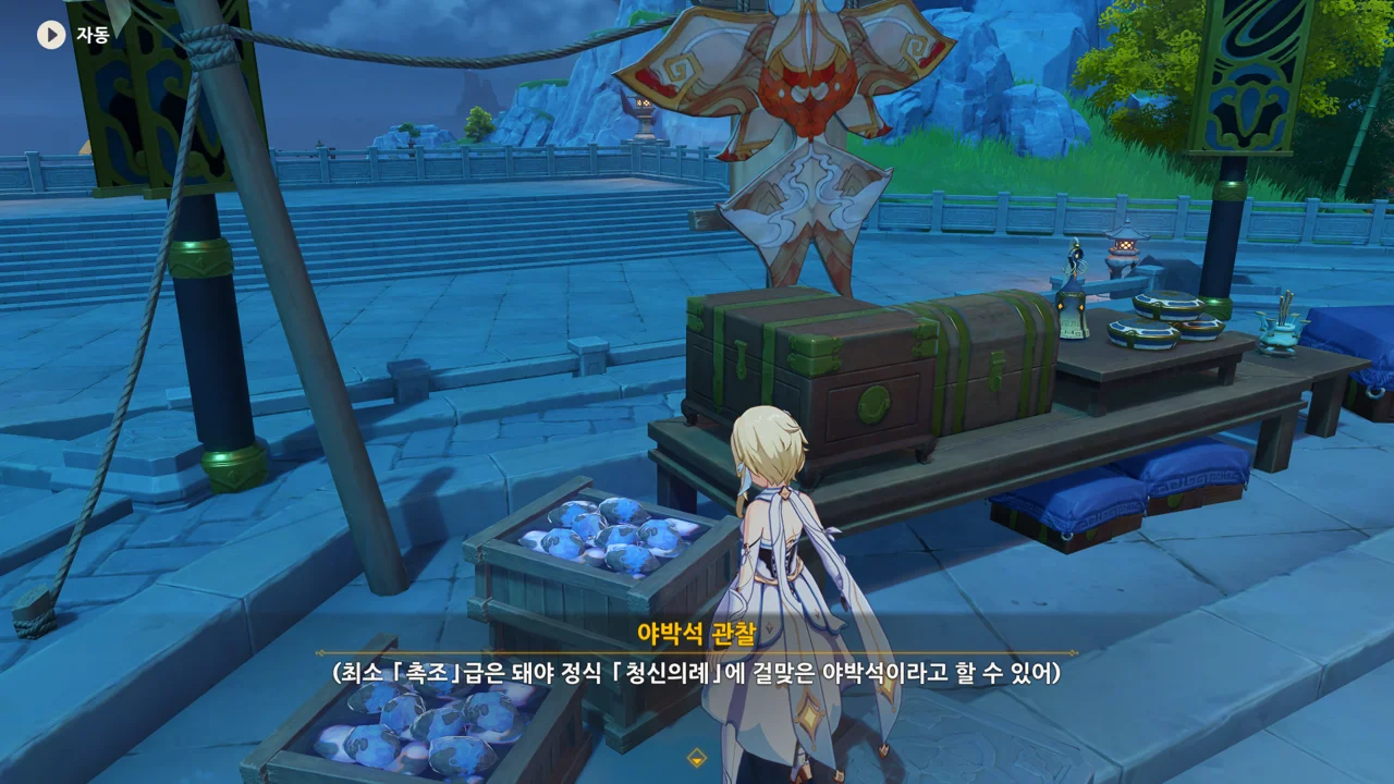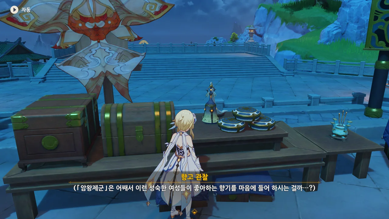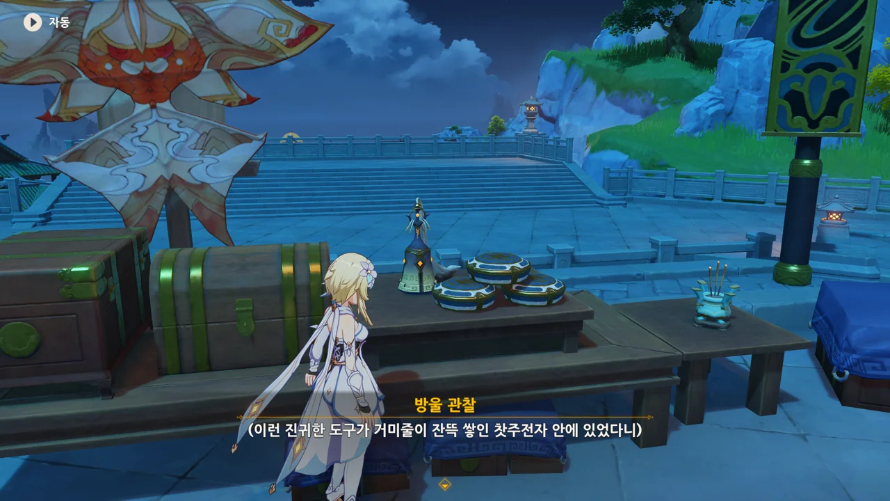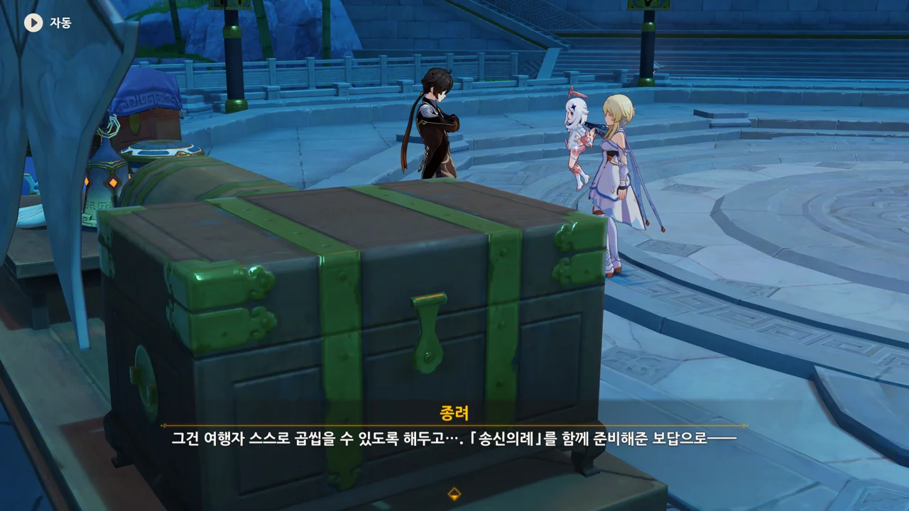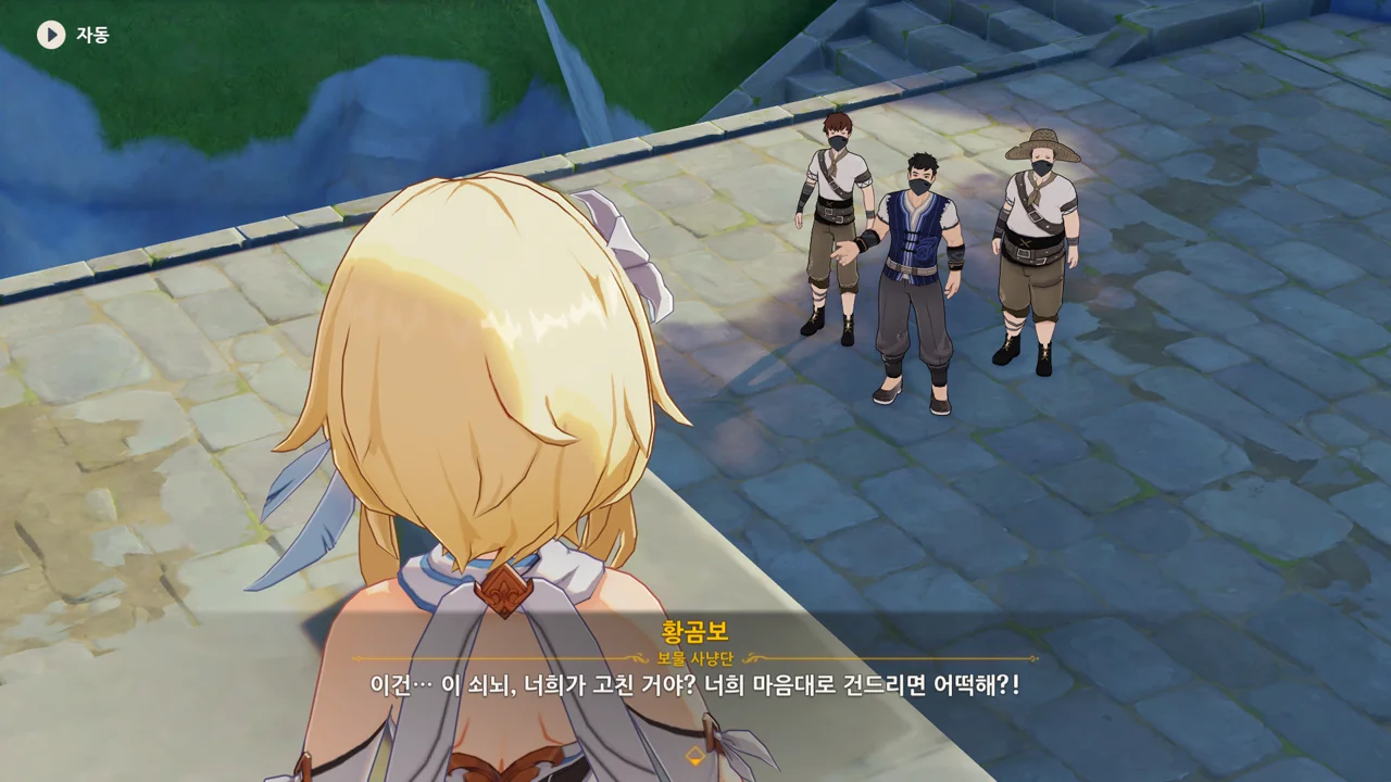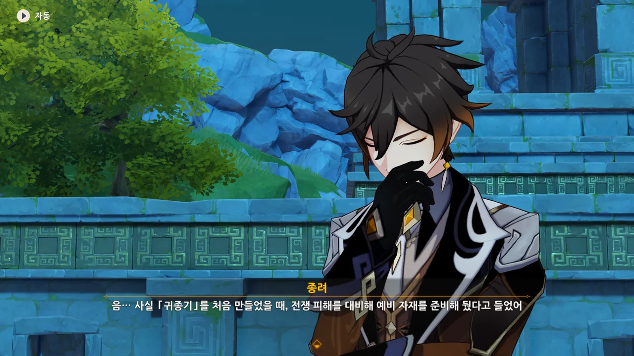 종려와 여행자는 무덤덤하게 서 있는 데에 반해, 페이몬 혼자 화들짝 놀란 모습이 너무 귀엽다.