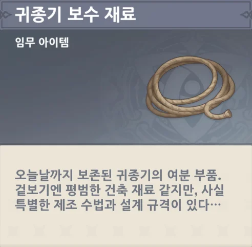근처의 보급소에서 귀종기의 예비 자재를 구해오면 귀종기를 수리할 수 있다고 한다.