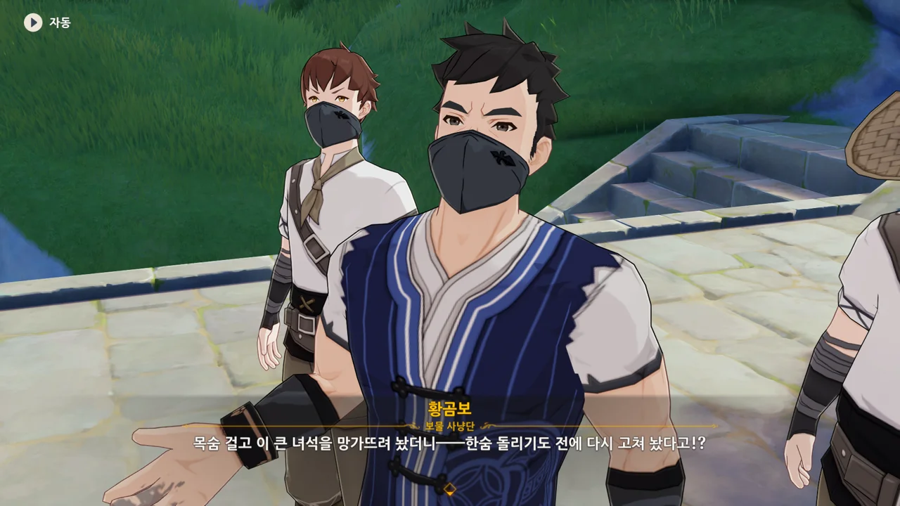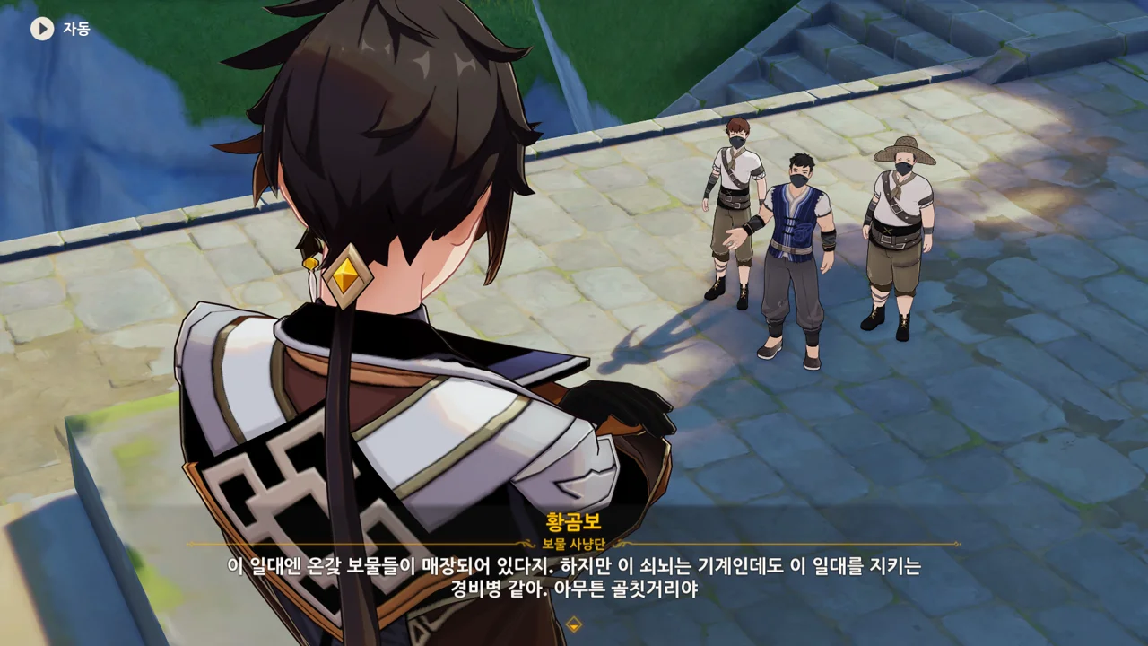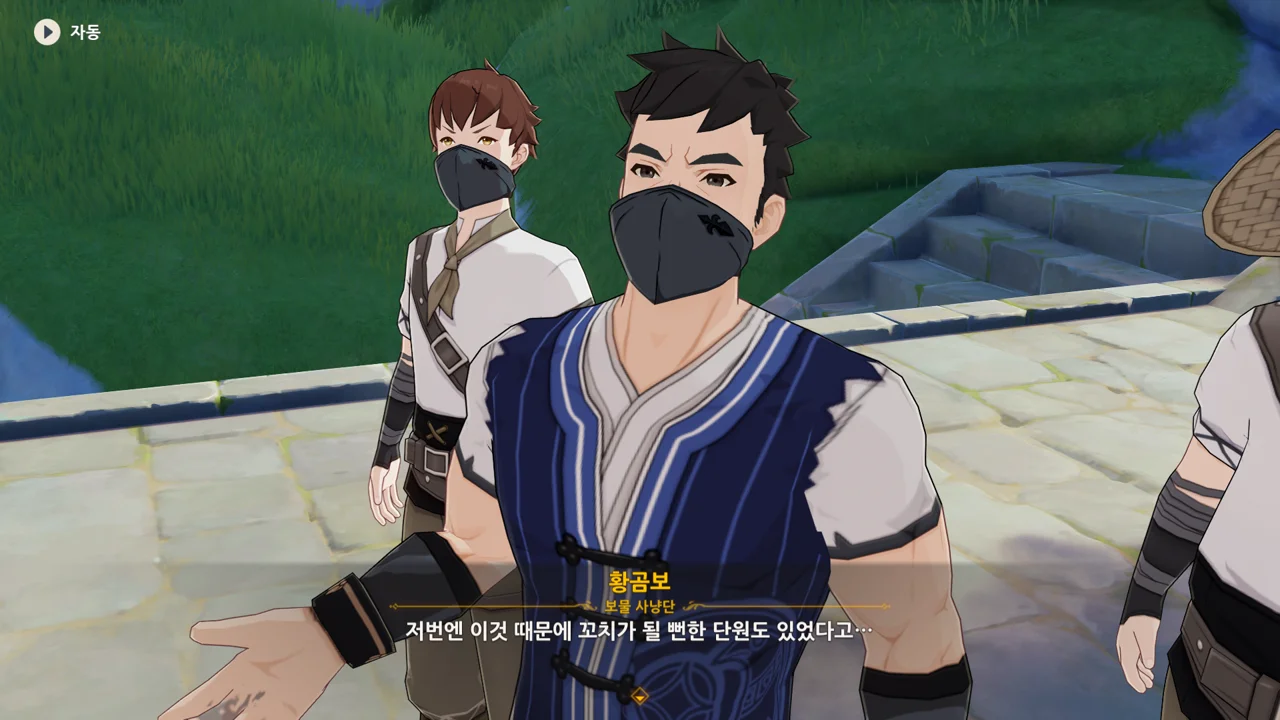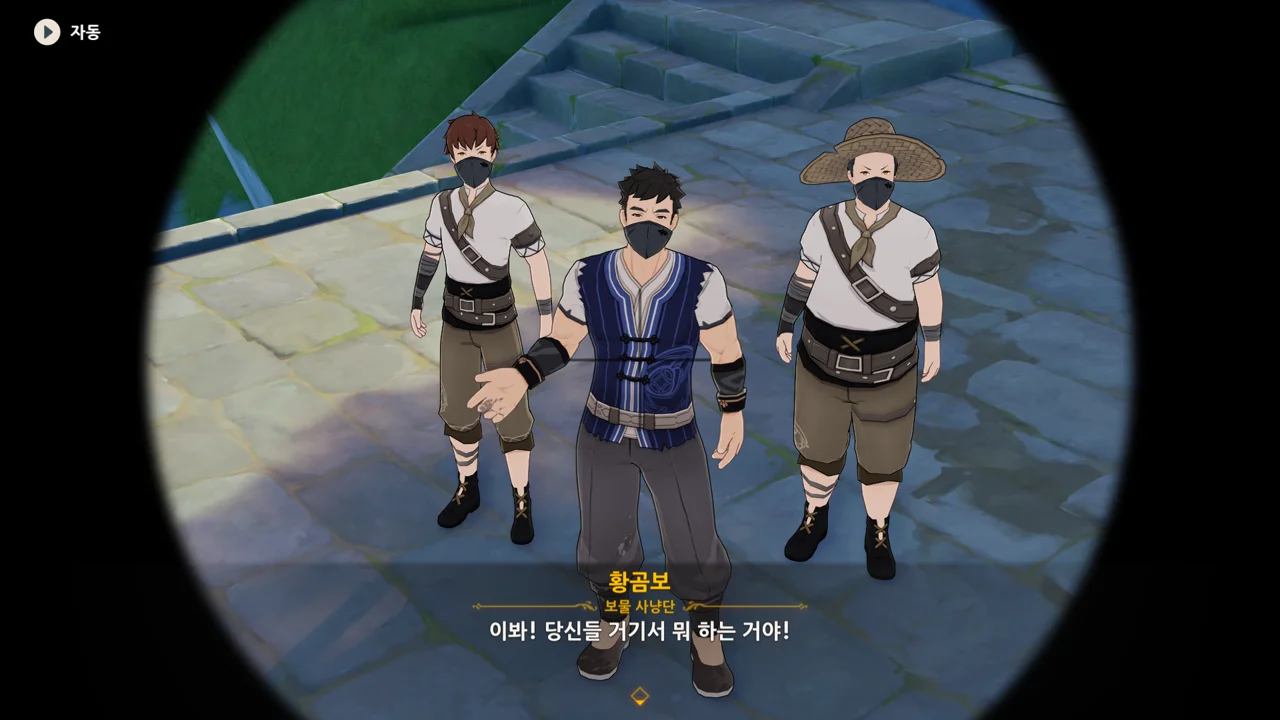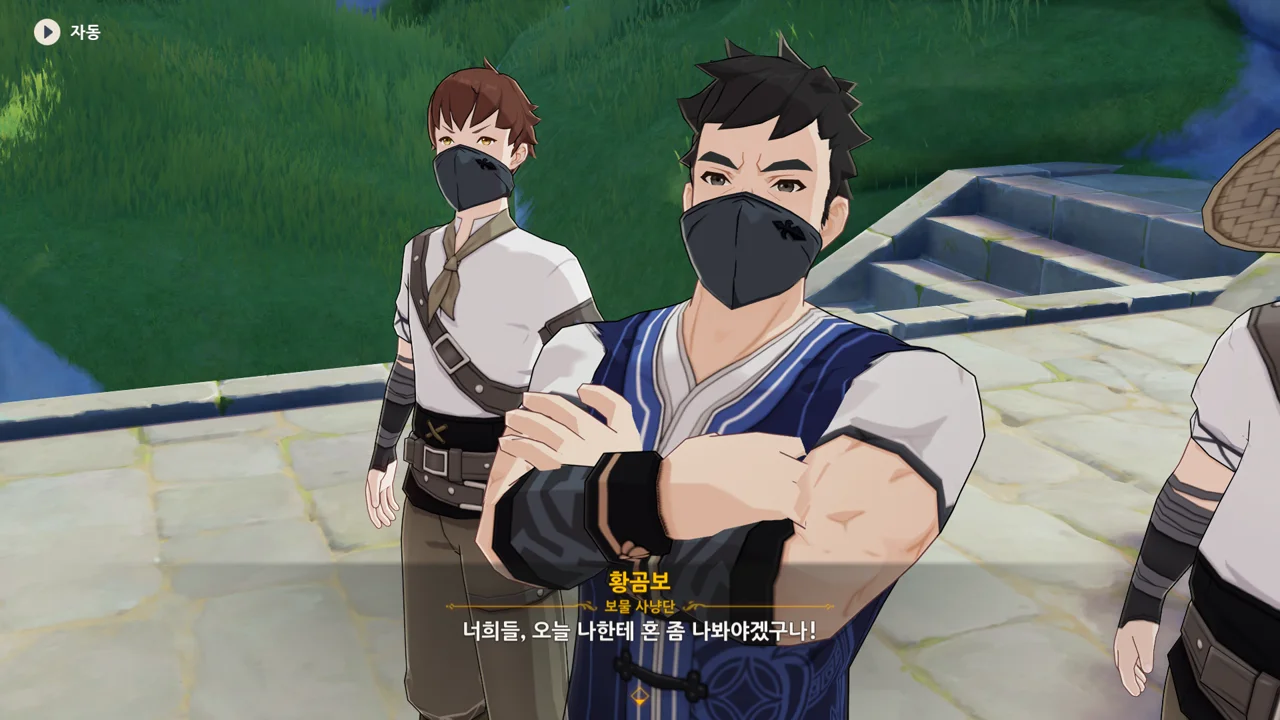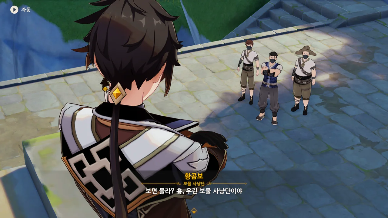 통성명을 요구하는 종려에게 보면 모르겠냐며, 보물 사냥단이라고 밝히는 곰보.