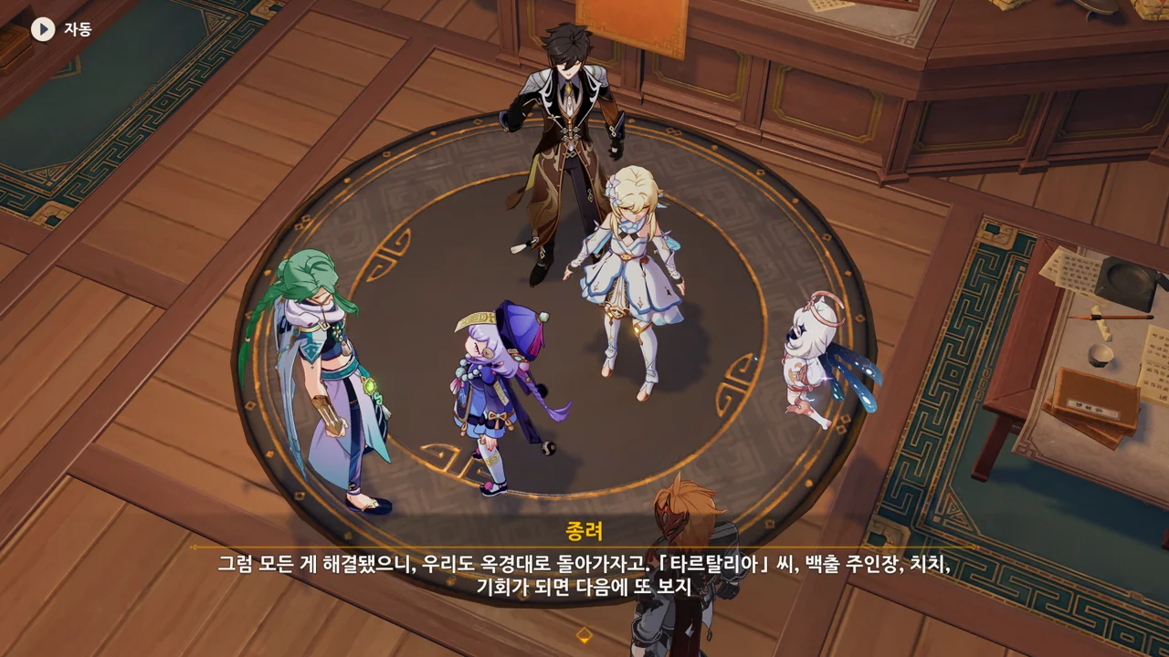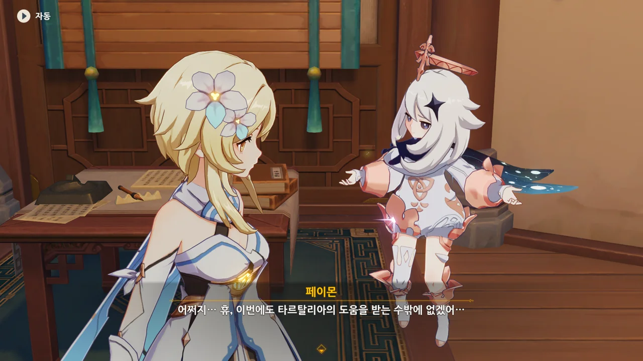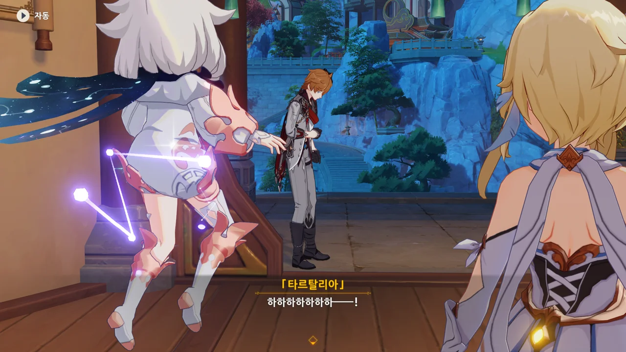 종려는 물론이요, 여행자 역시 300만 모라를 낼 재간은 없는지라, 별수 없이 타르탈리아에게 도움을 청할 수밖에 없다.