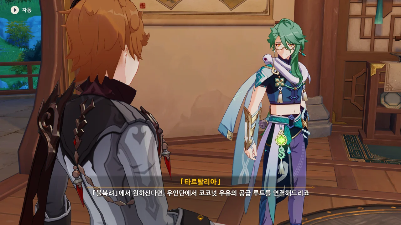 타르탈리아가 우인단이 코코넛우유의 공급 루트를 연결해 주겠다고 제안한다.