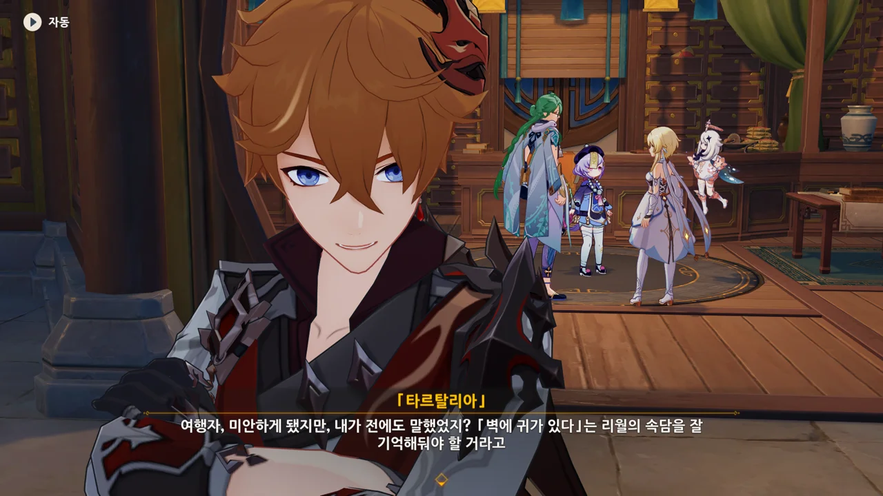 아까 페이몬이 실수로 말한 '리월 칠성이 황금옥 출입을 막고 있다'라는 정보가 타르탈리아가 미리 심어둔 밀정에 의해 우인단에 흘러 들어갔다.