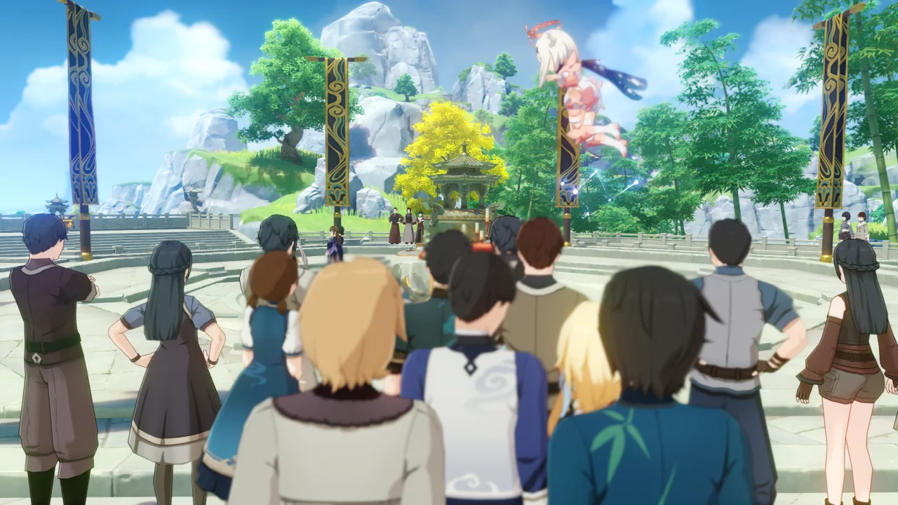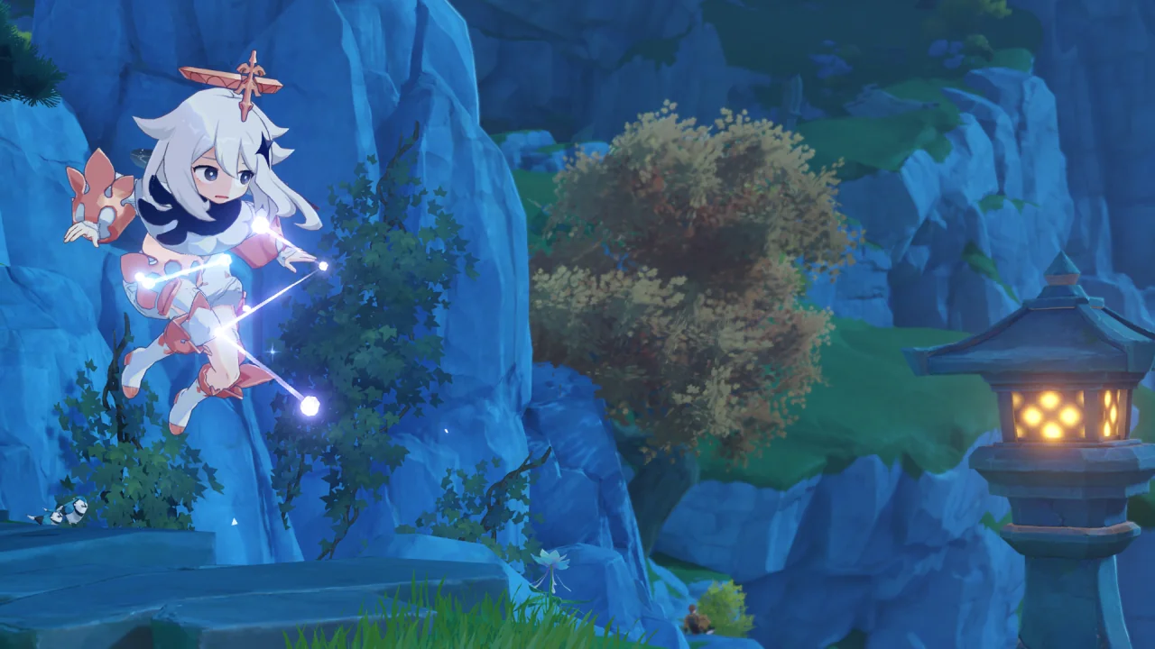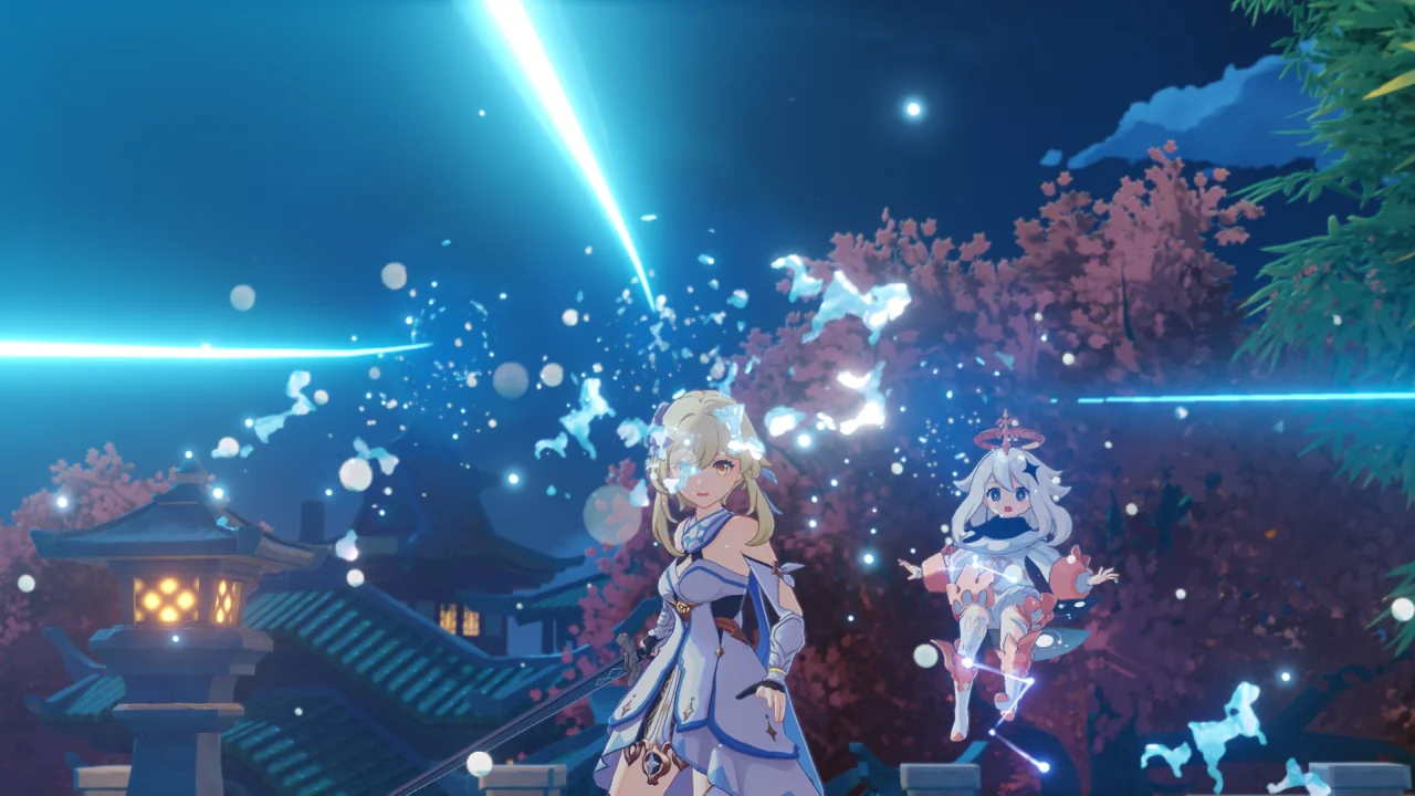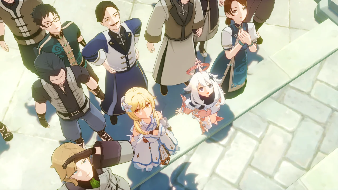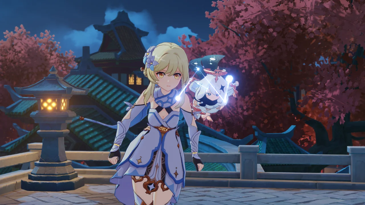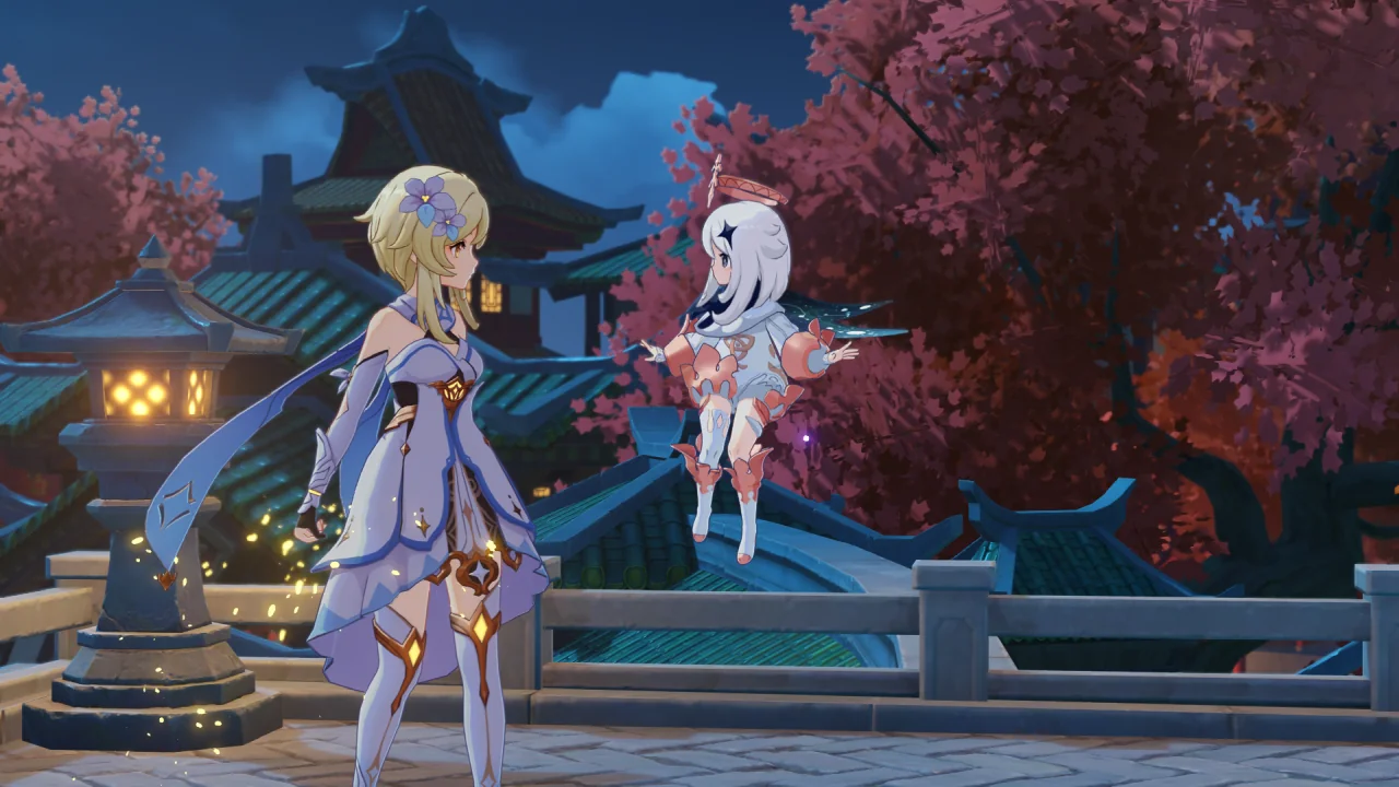 뒤에선 아무것도 보이지 않아, 앞으로 좀 더 다가서는 여행자와 페이몬.