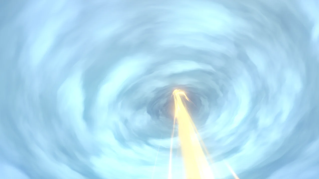 오오… 하늘로 빛이 쭉 솟아오르네…