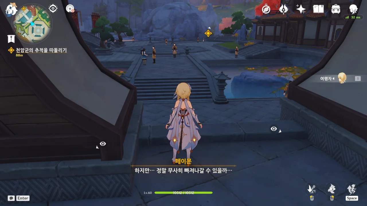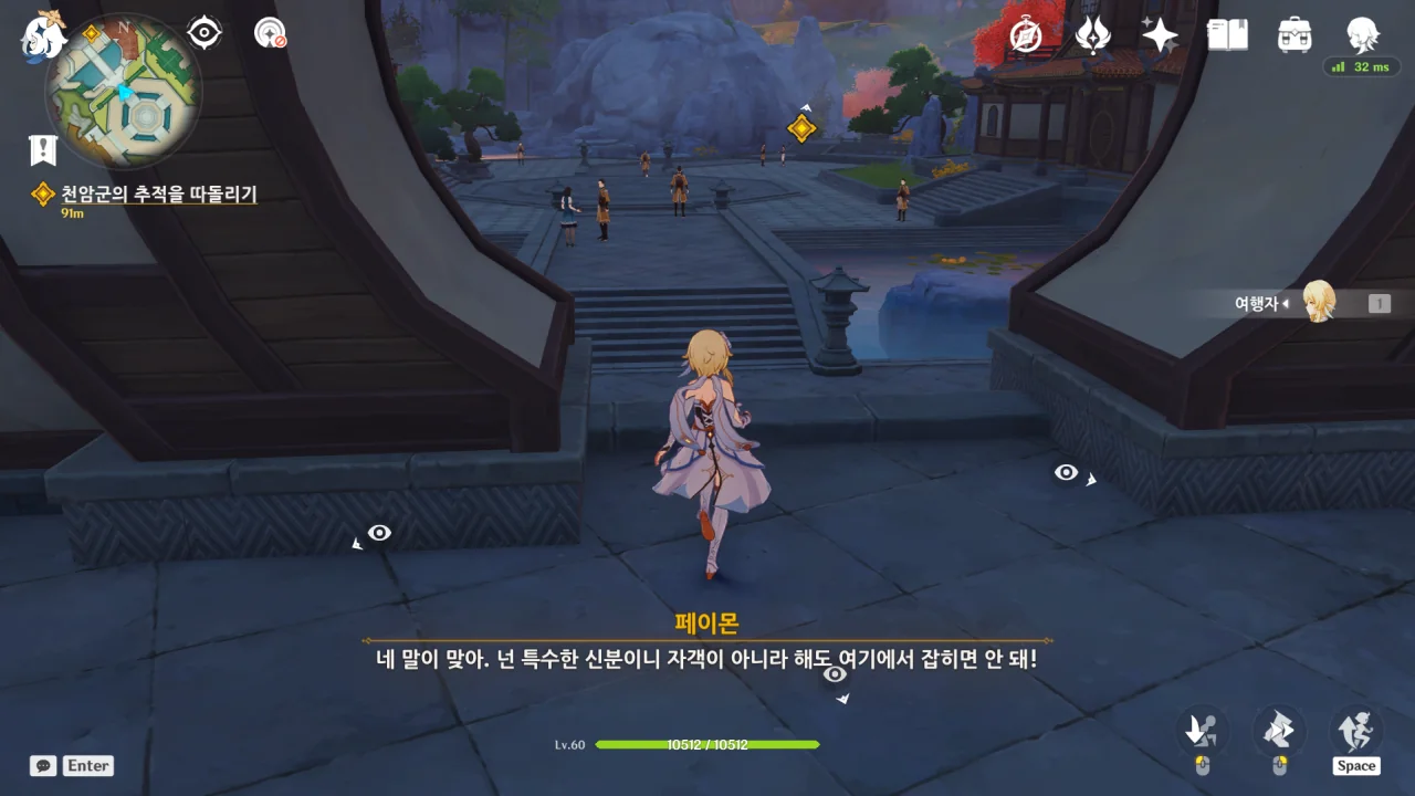 와, 대체 어디서 여행자를 훔쳐보고 있었던 거지? 옥경대 주변을 돌아다니다 보면 타르탈리아를 발견할 수 있었던 걸까?