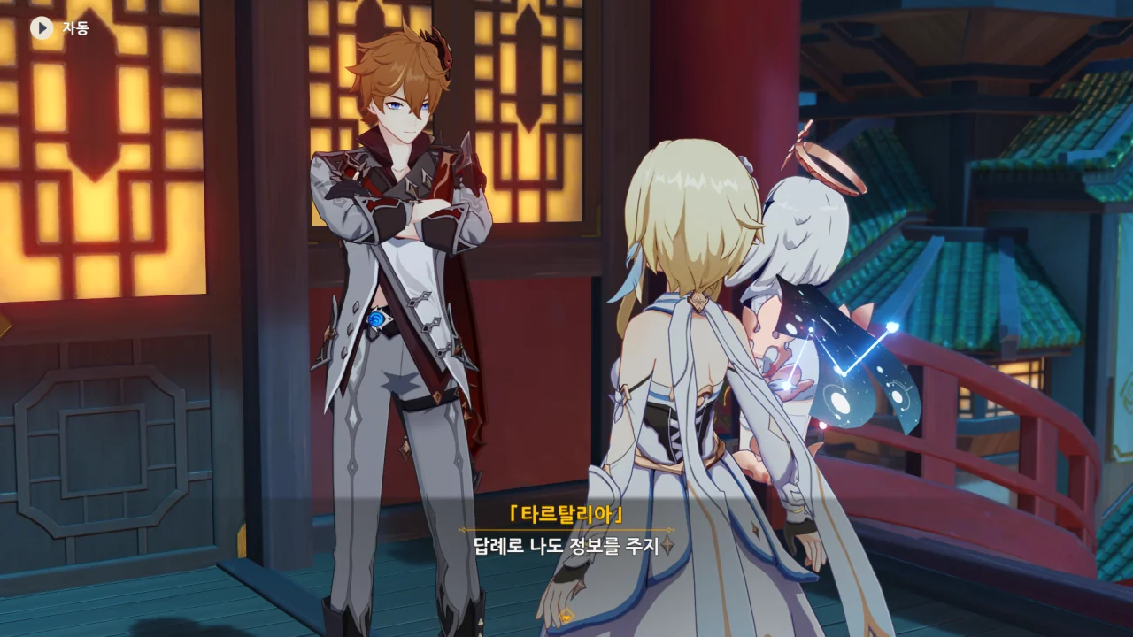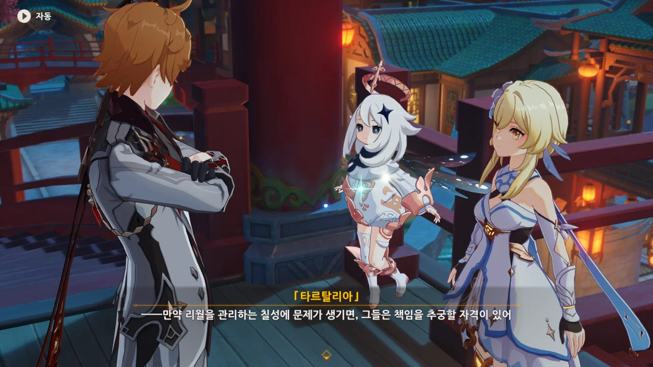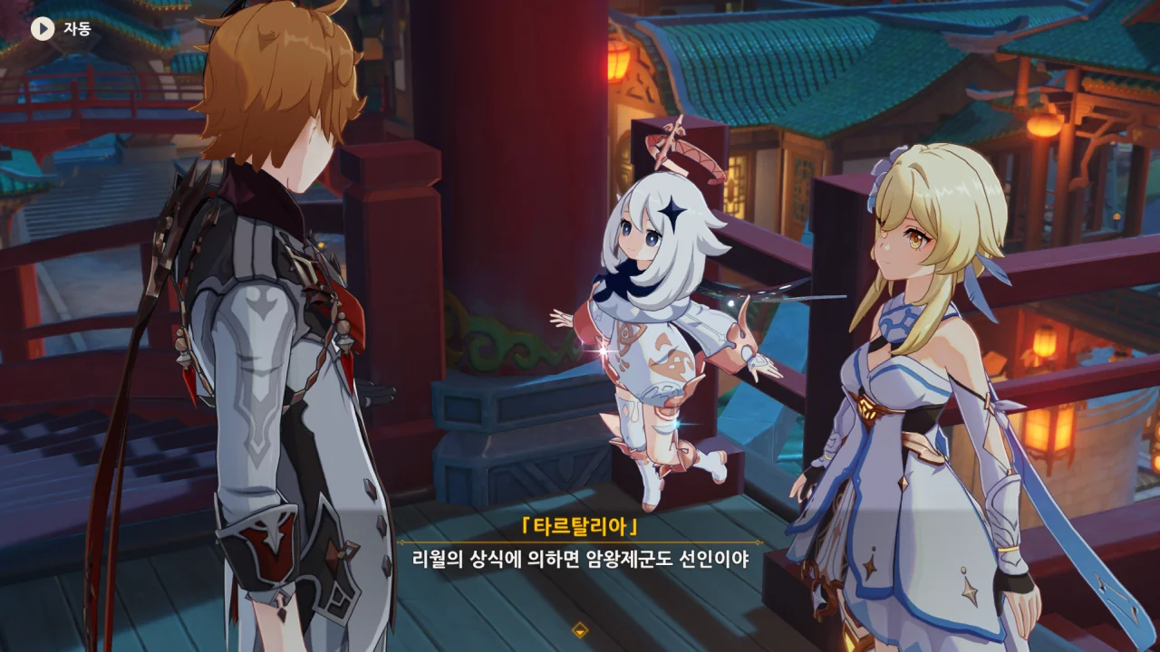 새로운 선인에 관한 정보에 대한 답례로 타르탈리아 역시 여행자가 리월항을 떠나있던 동안 있었던 일에 대해 알려준다.