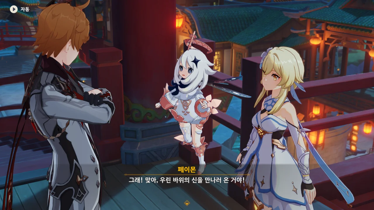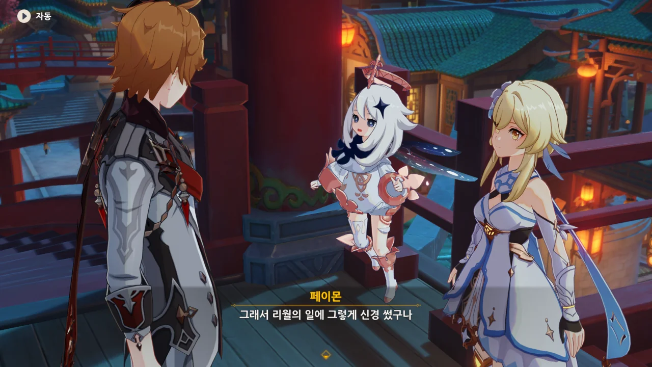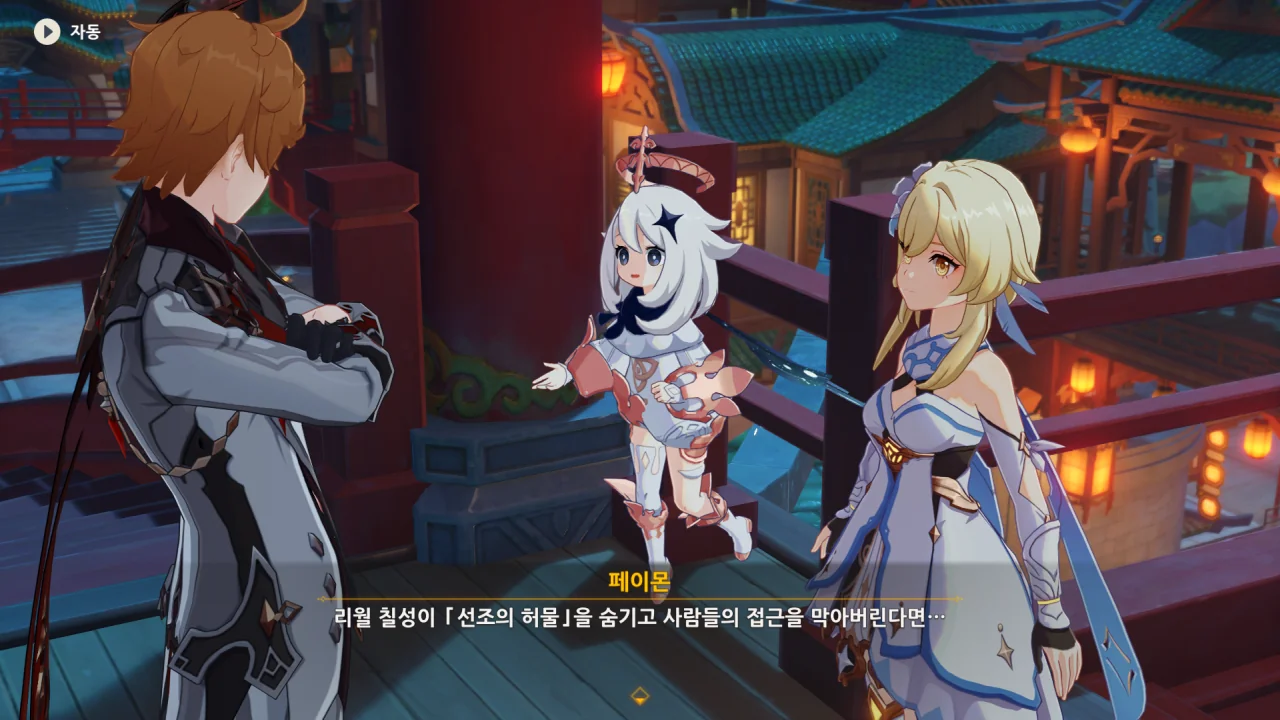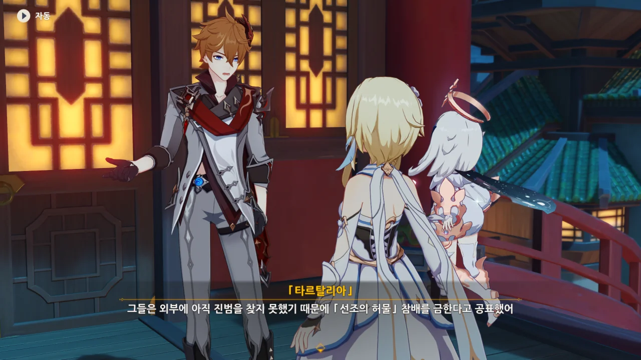 새로운 선인에 관한 정보에 대한 답례로 타르탈리아 역시 여행자가 리월항을 떠나있던 동안 있었던 일에 대해 알려준다.