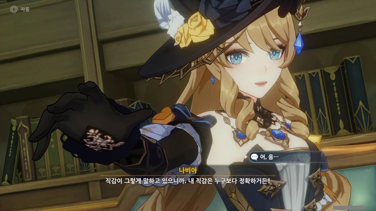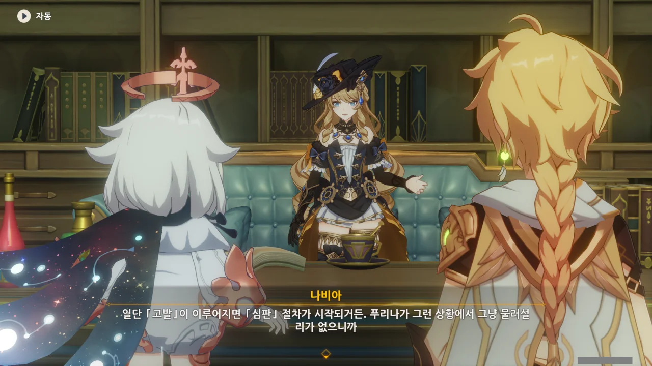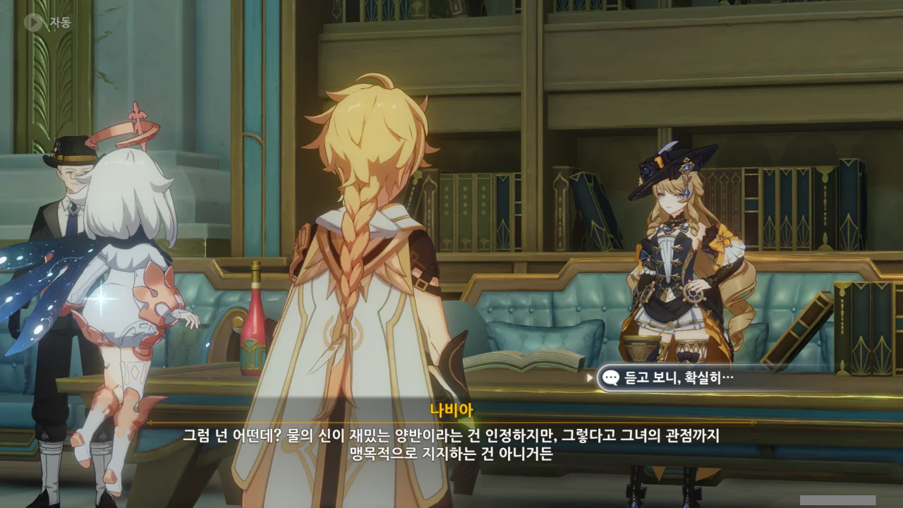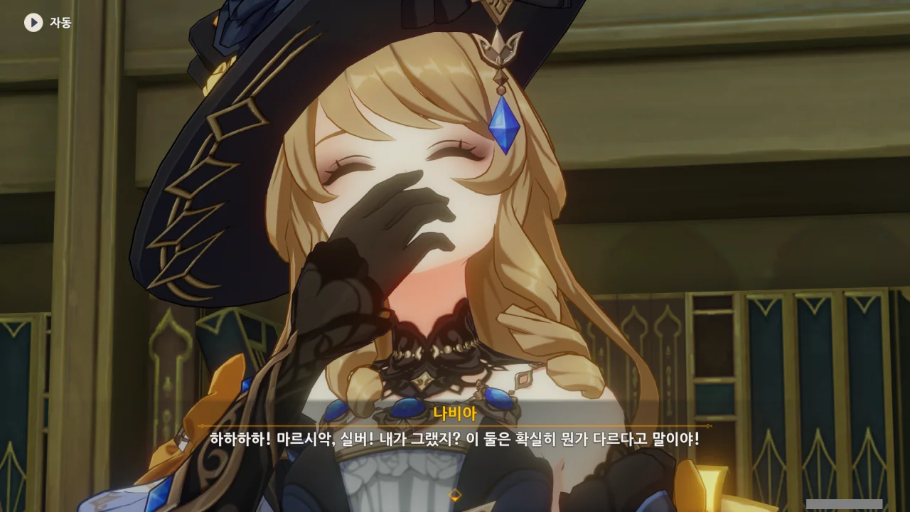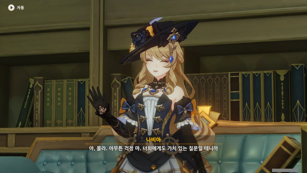 나비아의 말을 듣고 나도 모르게 "응? 뭔 개소리야?"라고 중얼거렸다. 중2병은 푸리나 그 꼬맹이 하나로 충분하다고! 폰타인 사람들은 수치심이라는 감정이 없는 건가?