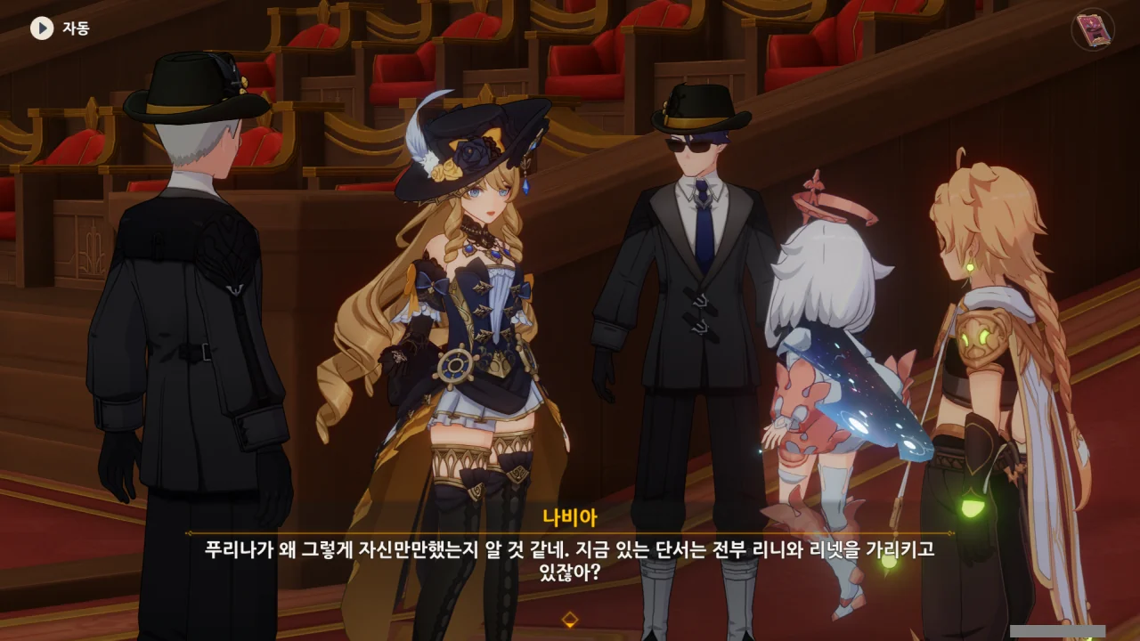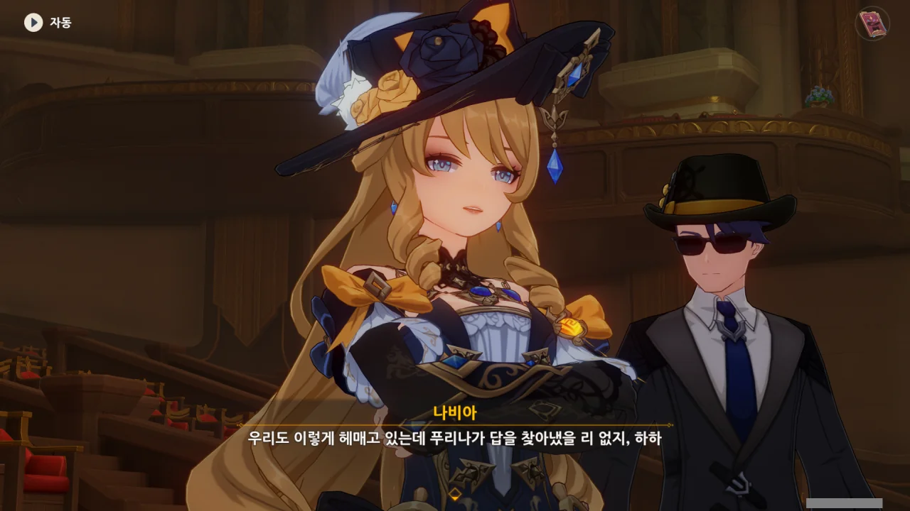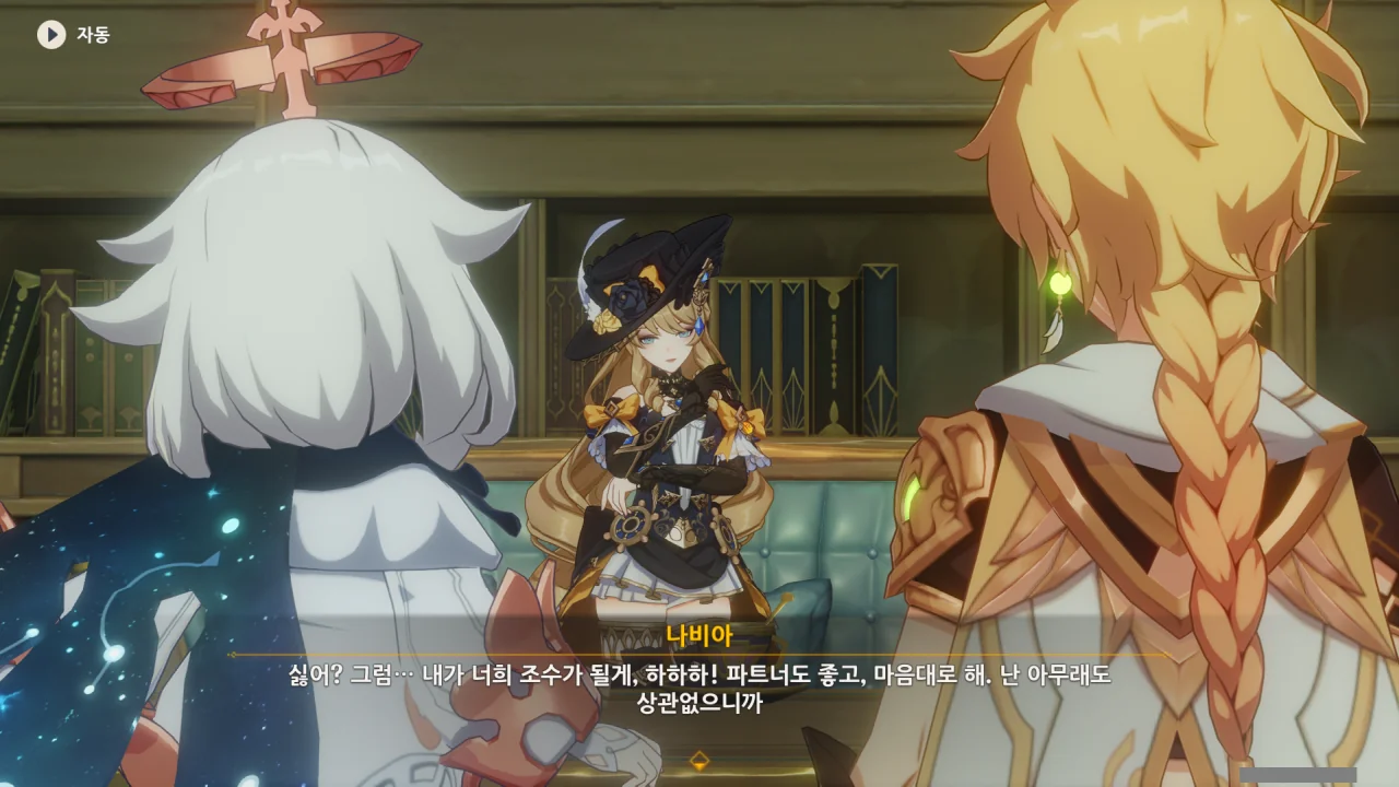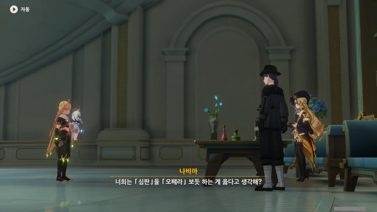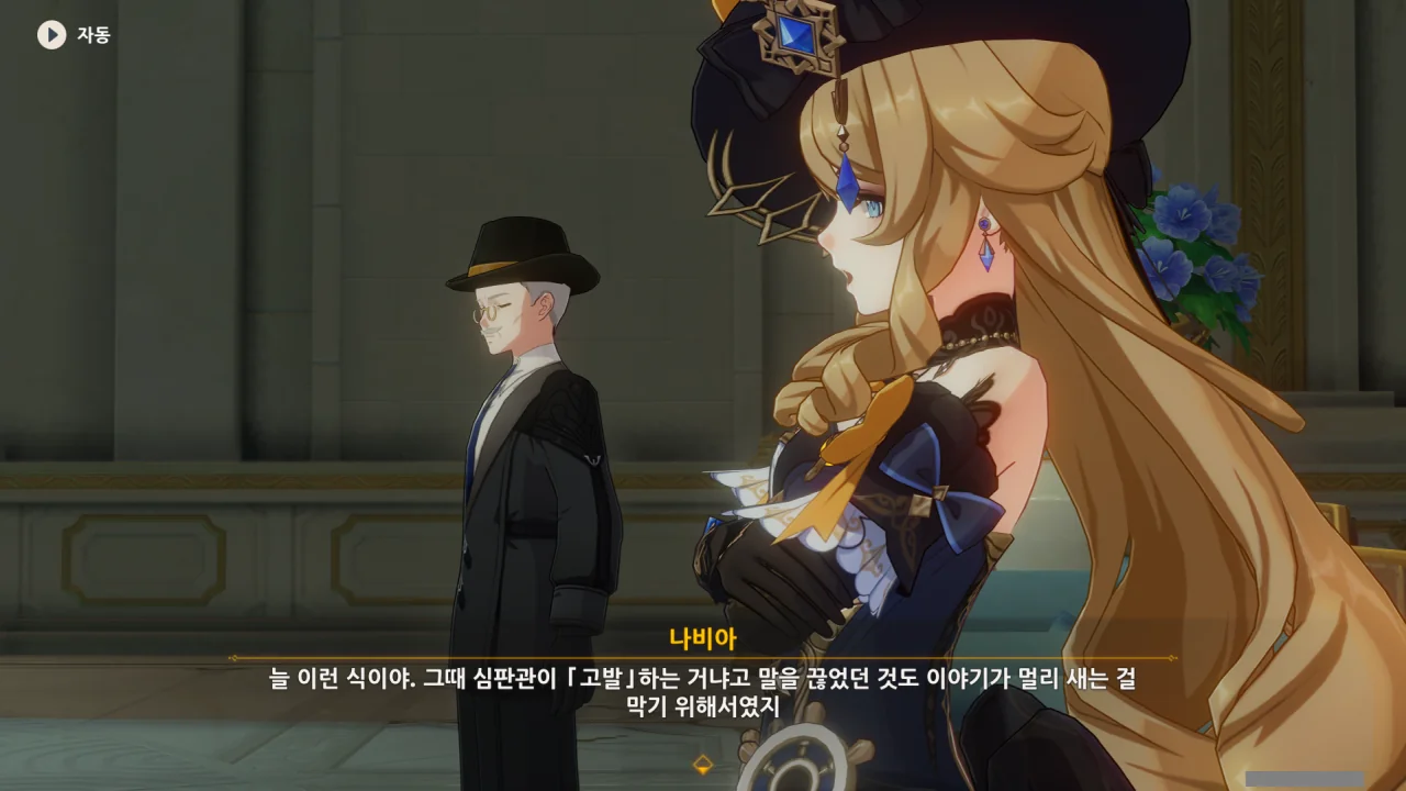 나비아의 말을 듣고 나도 모르게 "응? 뭔 개소리야?"라고 중얼거렸다. 중2병은 푸리나 그 꼬맹이 하나로 충분하다고! 폰타인 사람들은 수치심이라는 감정이 없는 건가?