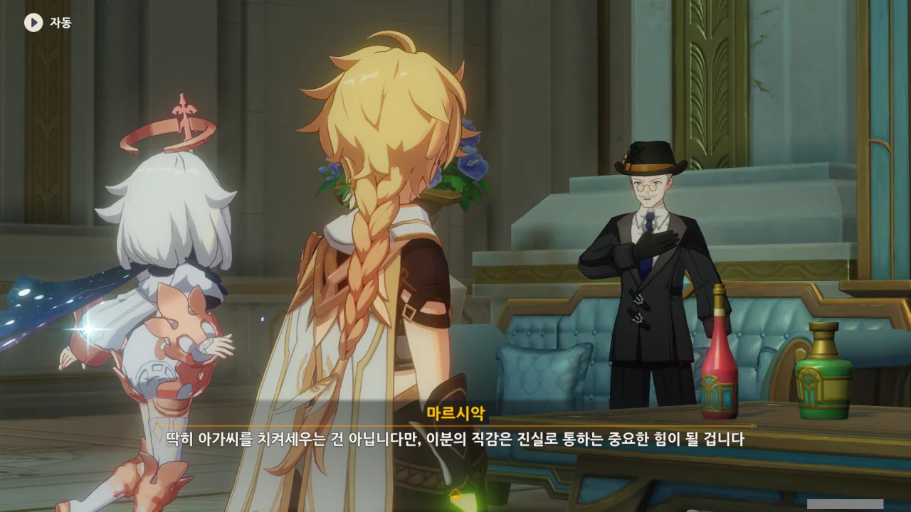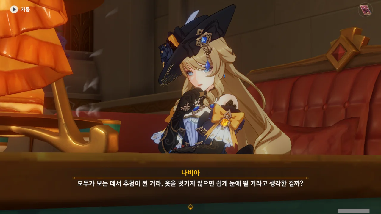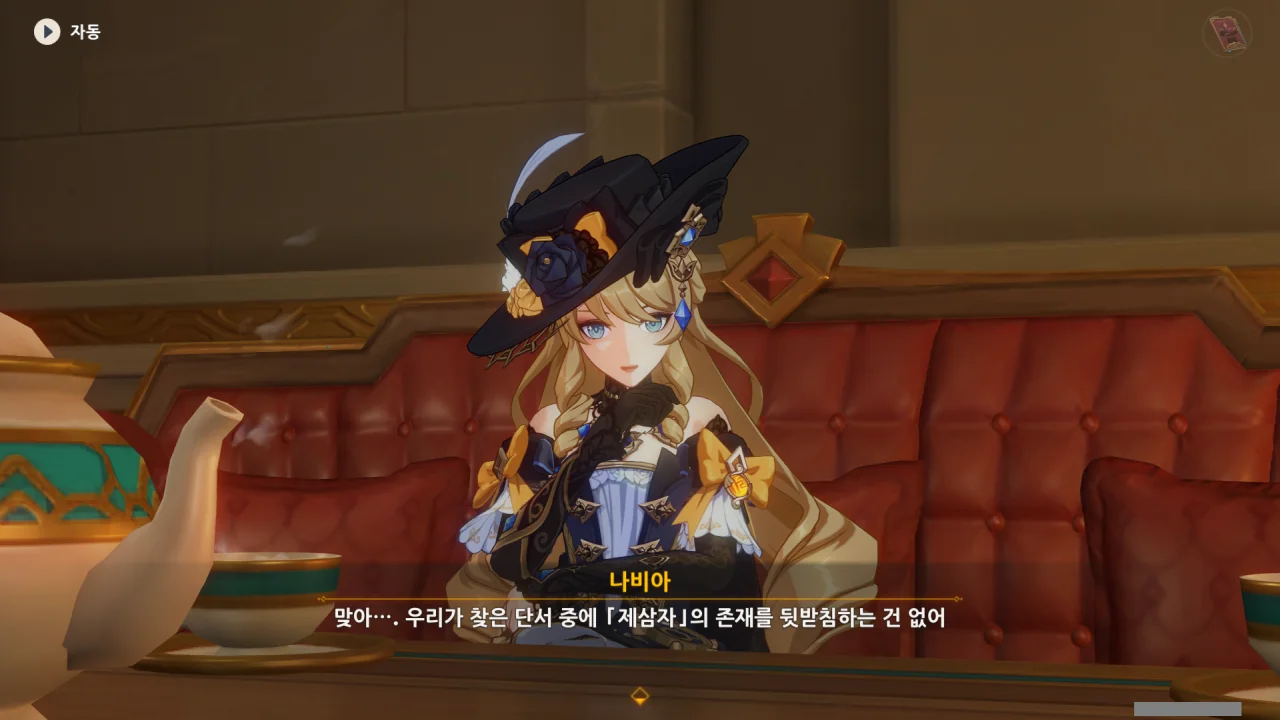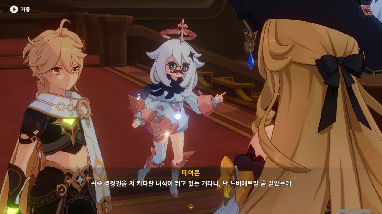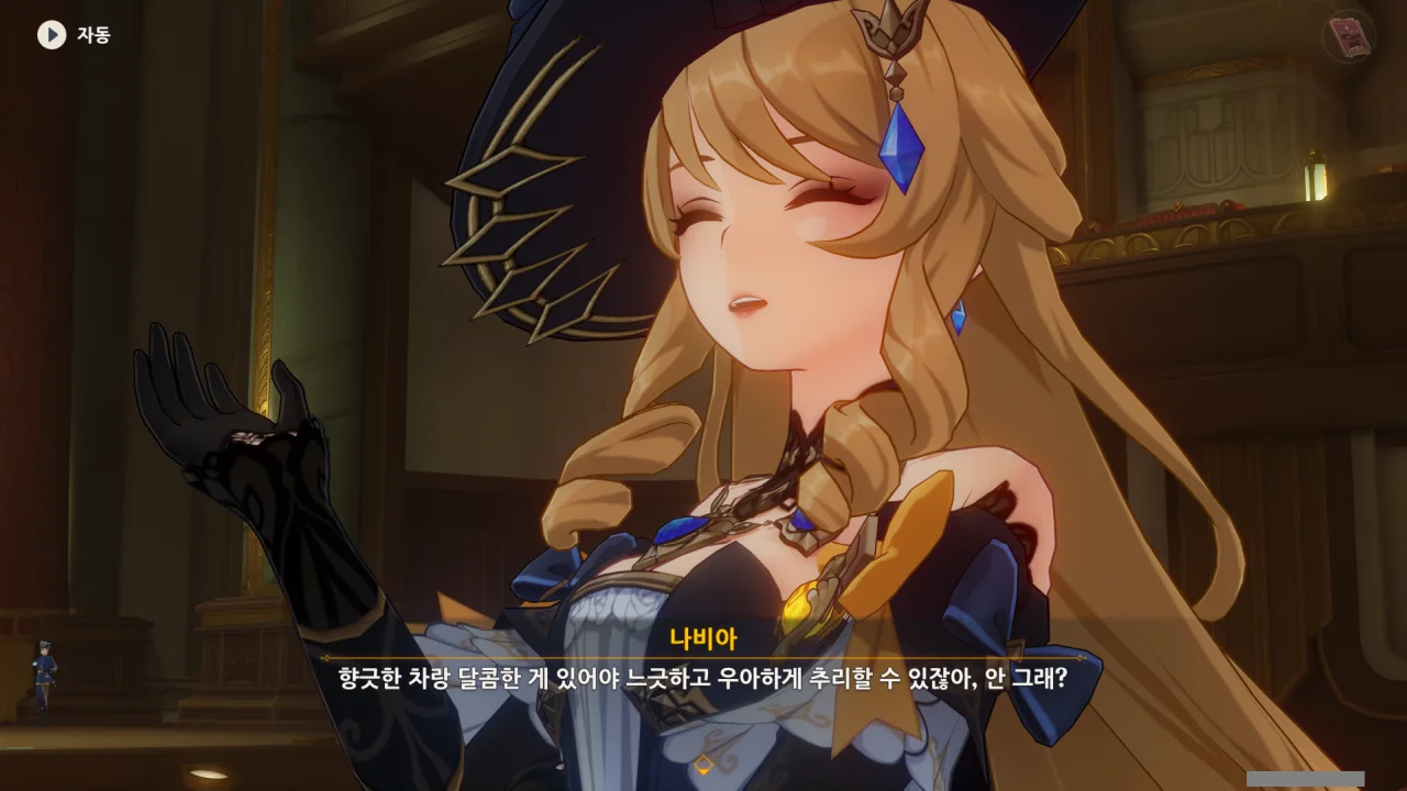 나비아의 말을 듣고 나도 모르게 "응? 뭔 개소리야?"라고 중얼거렸다. 중2병은 푸리나 그 꼬맹이 하나로 충분하다고! 폰타인 사람들은 수치심이라는 감정이 없는 건가?
