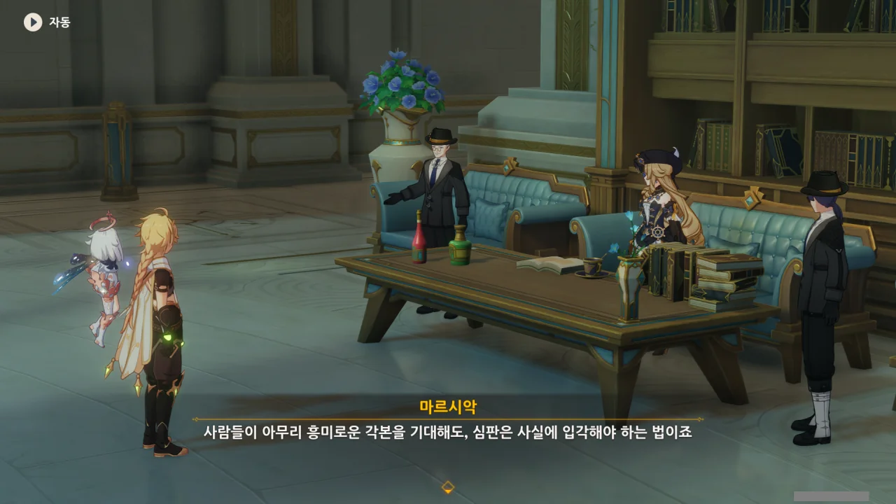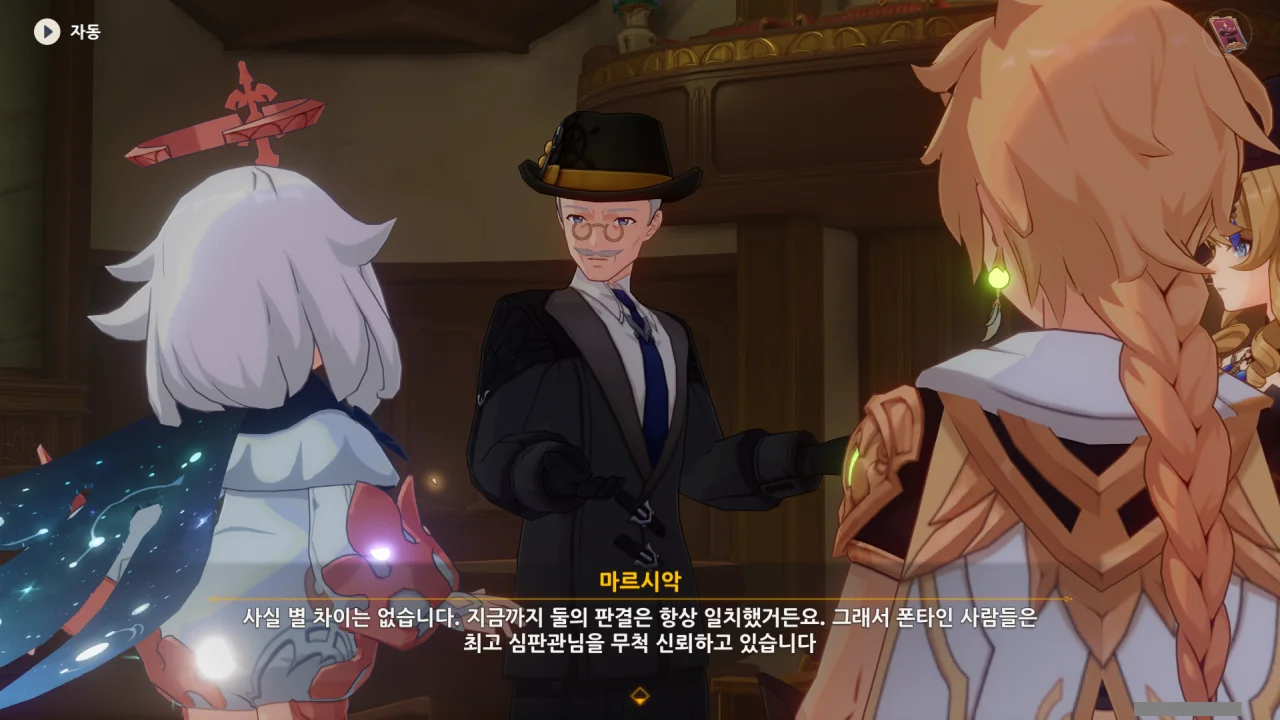 물론 당연하게도, 폰타인에 처음 왔을 때 생각하던 것 그대로이다. 재판이란 시시비비를 가리는 중요하고 엄숙한 문제인데, 이를 유흥거리나 오락거리처럼 소비하는 건 재판에 대한 모욕이라 생각한다.
