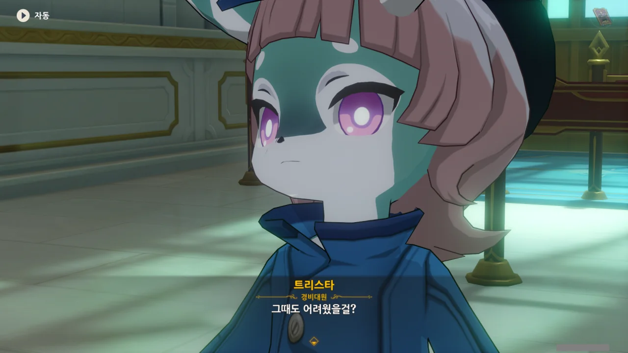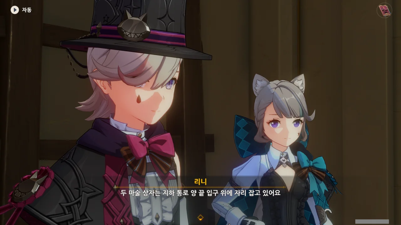 오페라 하우스 입구를 굳건히 지키고 있는 멜뤼진, 트리스타에게 말을 걸어보자.