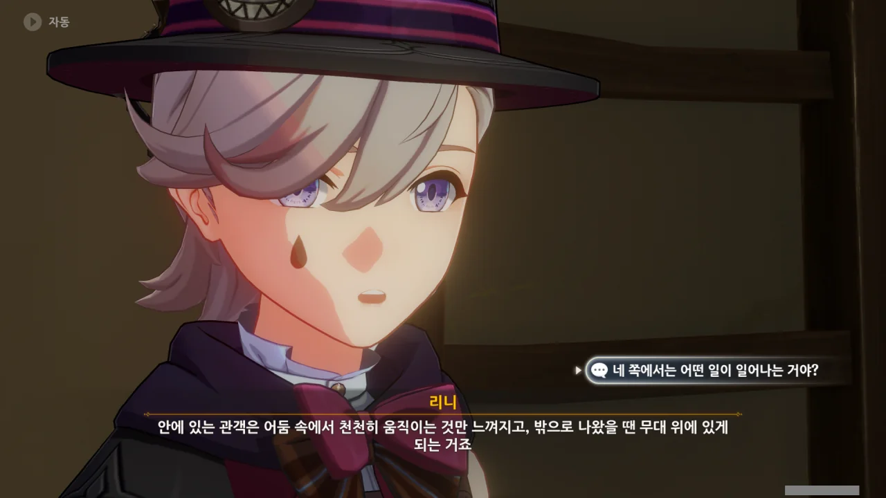 아까 공연 때와 비교해, 무엇이 달라졌는지 한번 알아맞혀 보라는 리니.