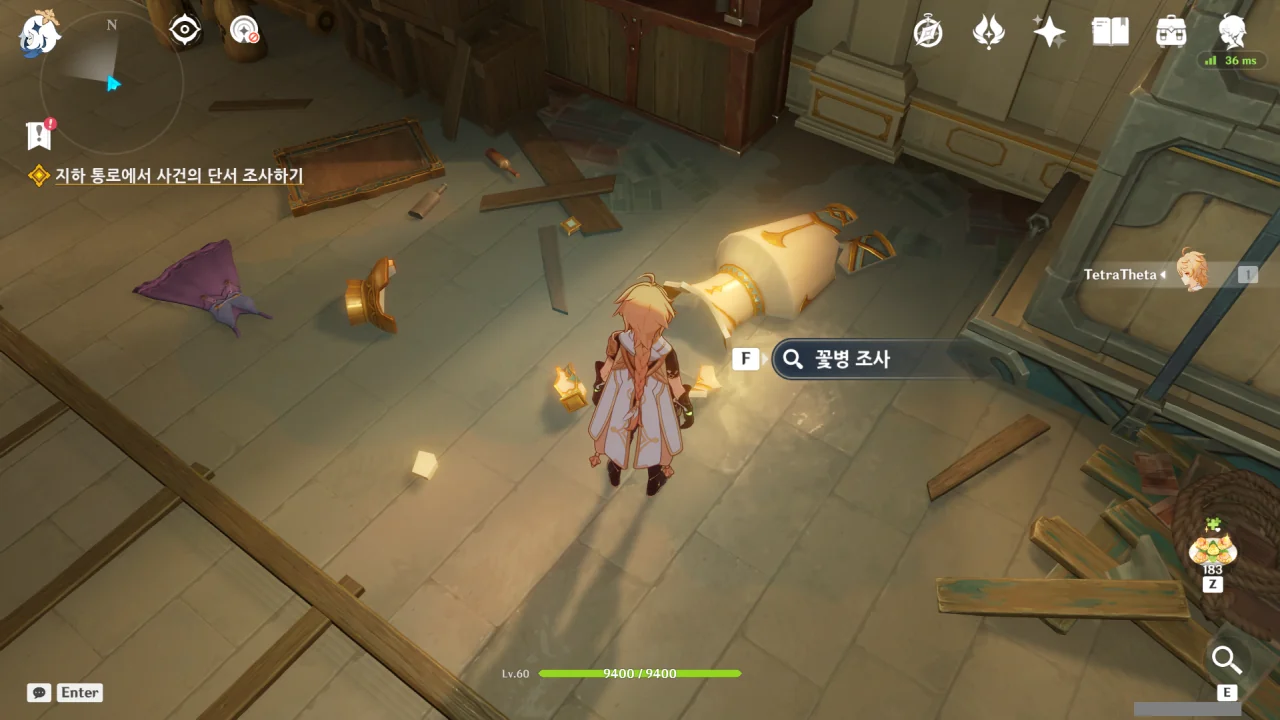여긴 꽃병이 깨져있고, 그 안에 있던 물이 바닥에 잔뜩 고여있다.