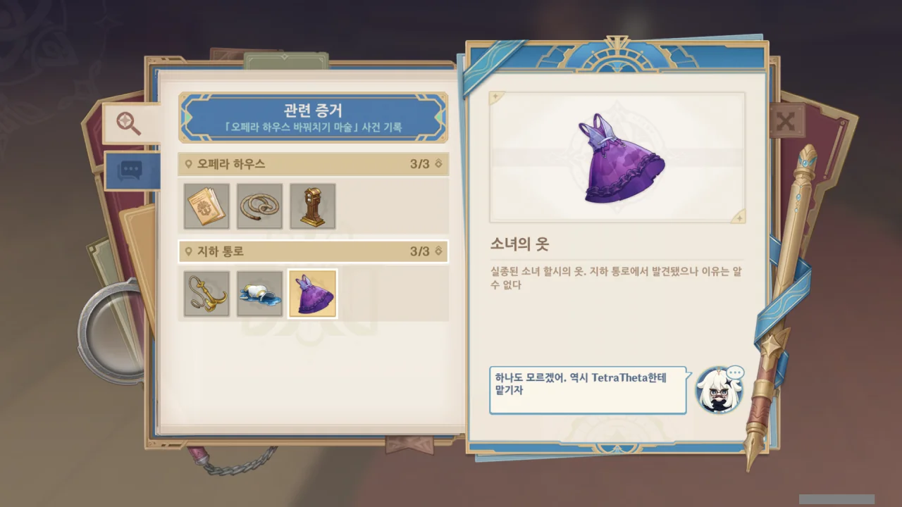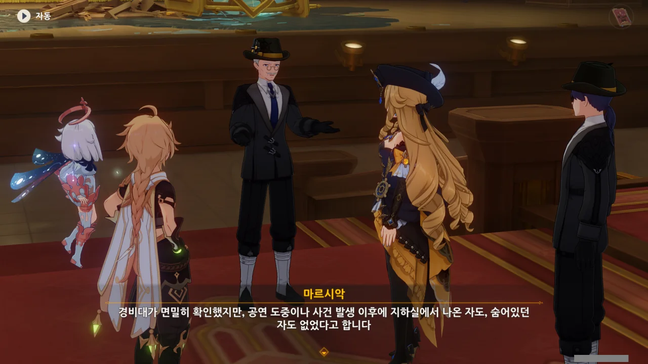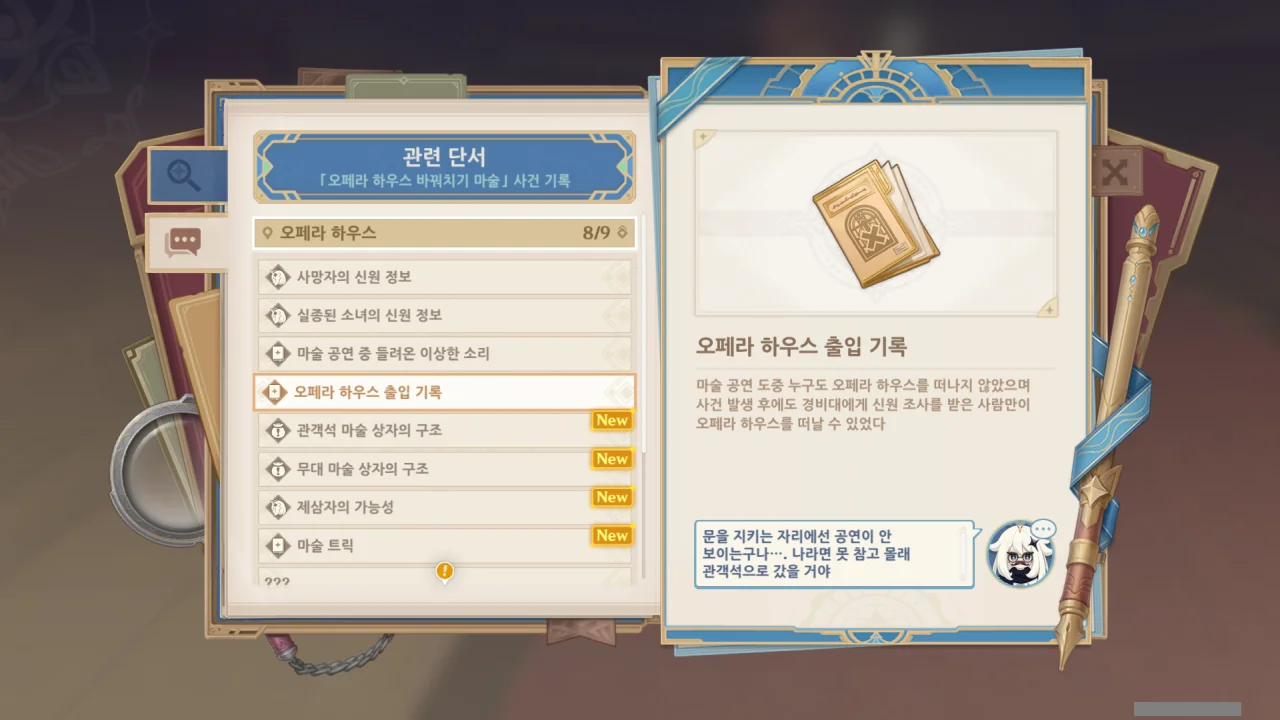 아까는 이런 이야기를 못 들었던 것 같은데. 여행자가 리니/리넷의 대리인으로 활동하고 있기 때문에, 사건 관계자로 분류되어 오페라 하우스 바깥으로 나갈 수 없다고 한다.