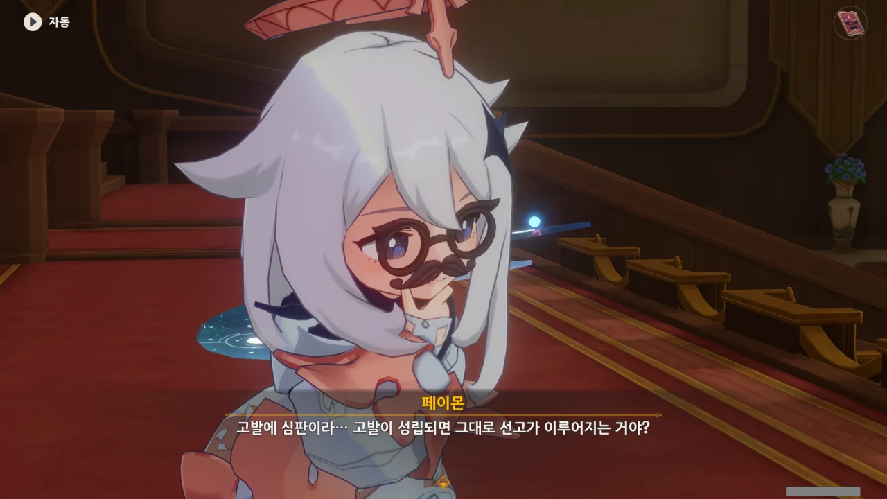 단순히 「계시 판결 장치」는 최고 심판관을 보조하고 사람들의 신앙을 모아 에너지로 변환하는 역할인 줄로만 알았는데, 폰타인의 「심판」 절차는 예상외로 복잡했다.