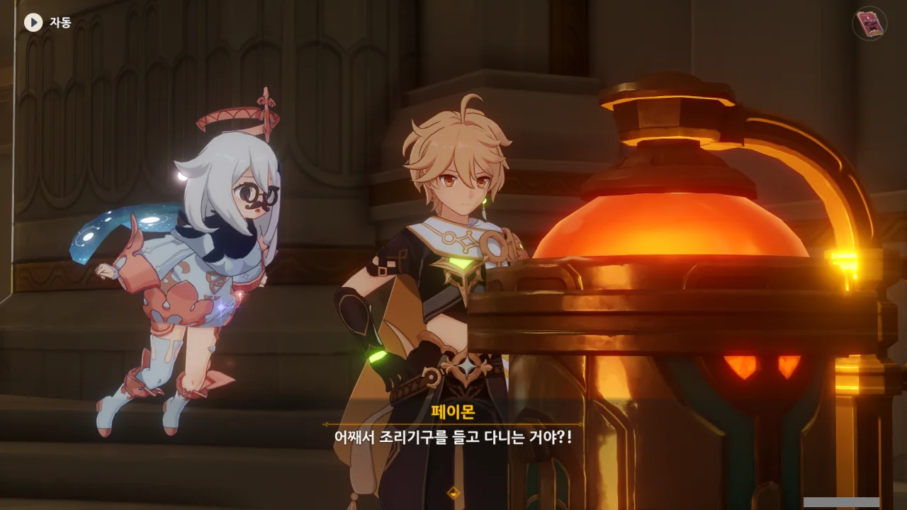 페이몬: 하나도 모르겠어. 역시 여행자한테 맡기자.