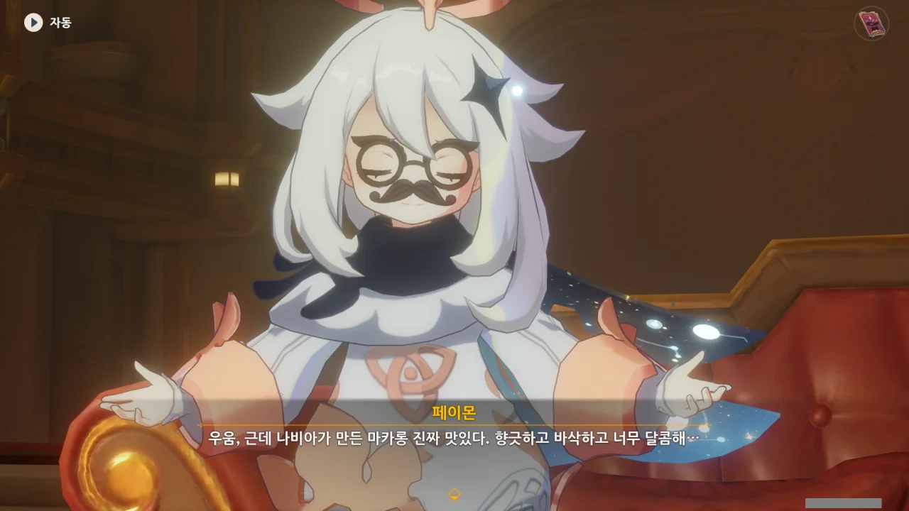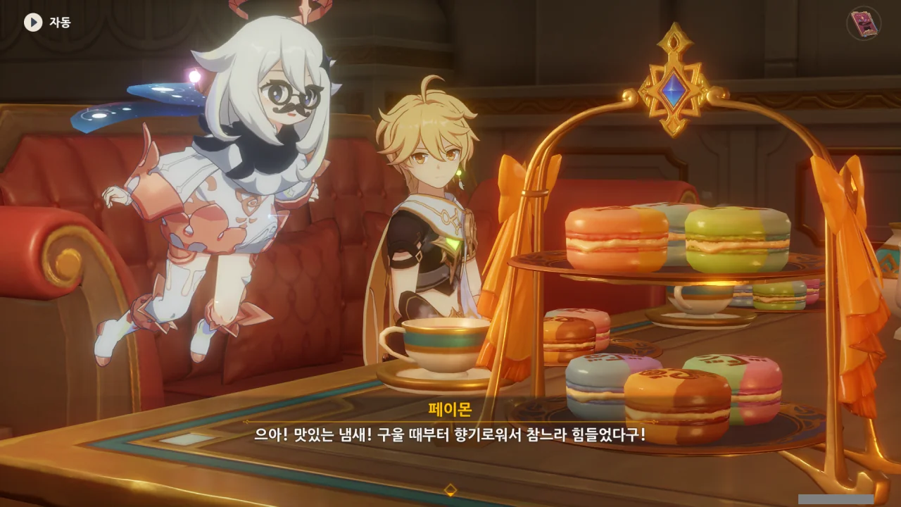 페이몬, 혹시 마카롱이 너무 맛있어서 세 개를 먹는다는 것이 저도 모르게 다섯 개를 먹은 거 아냐?