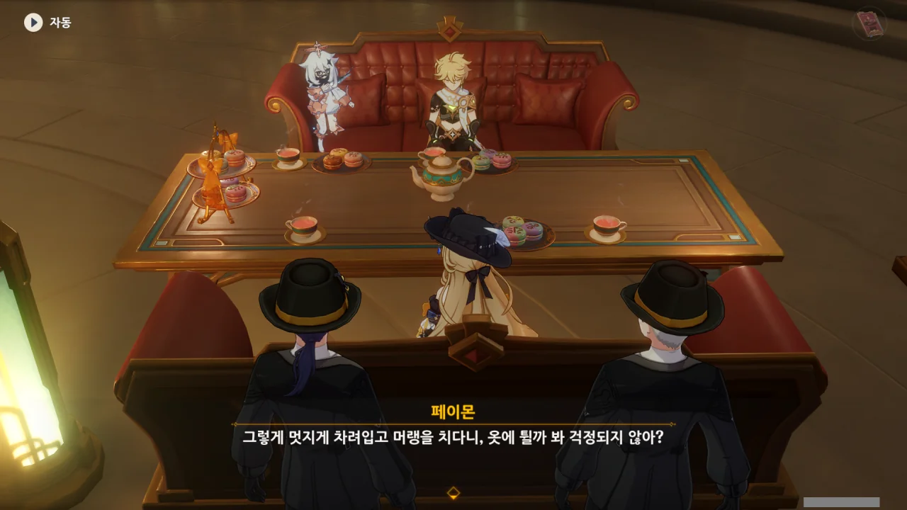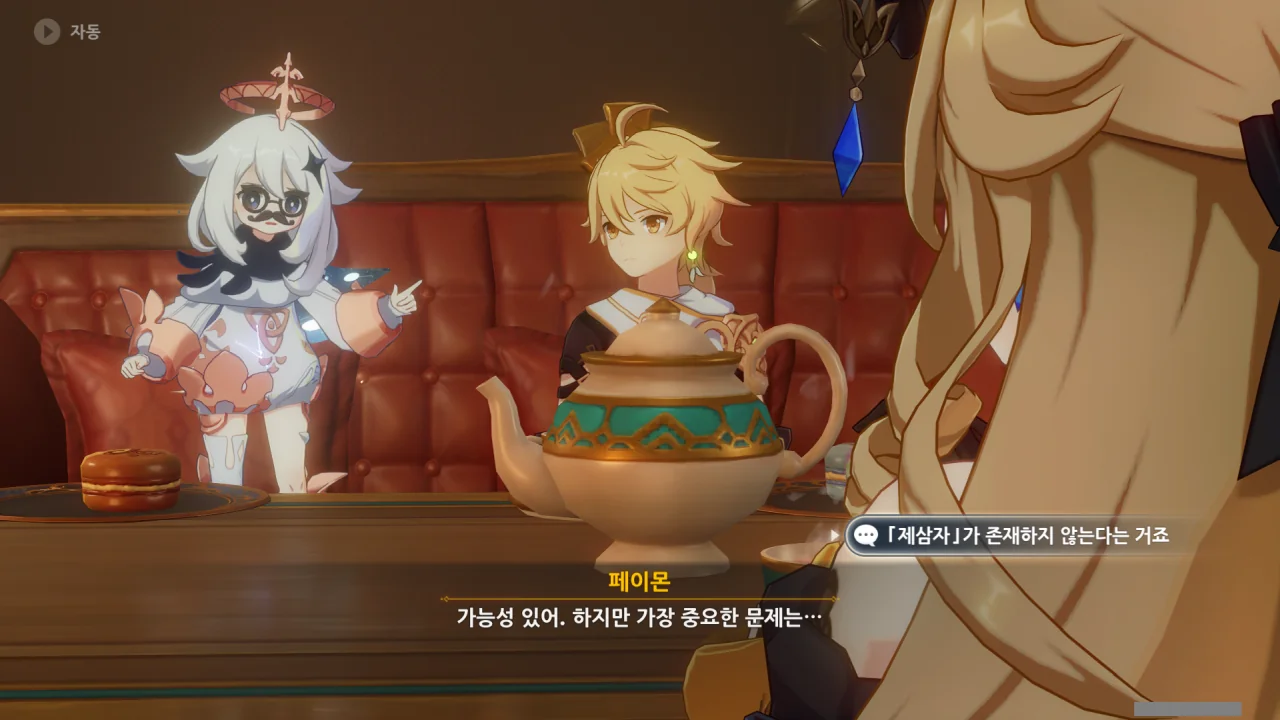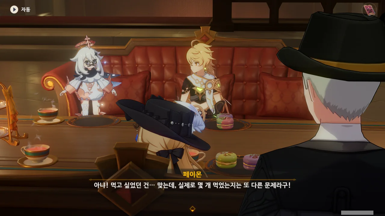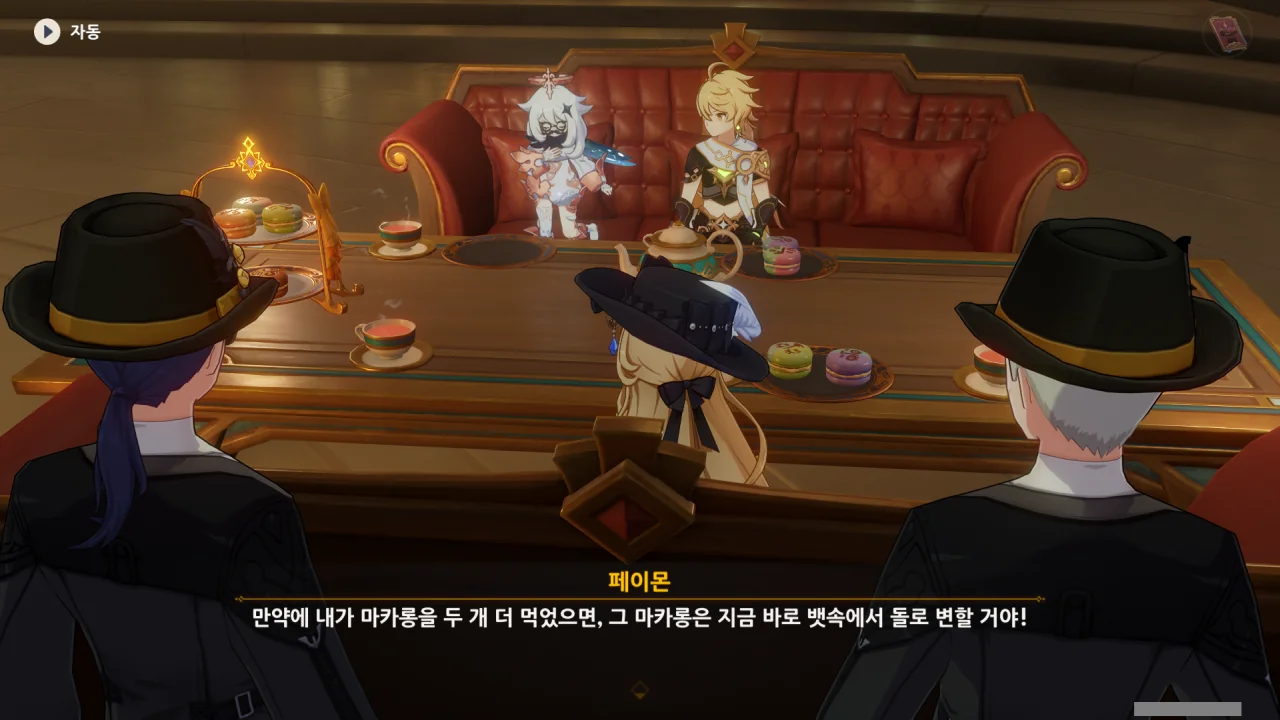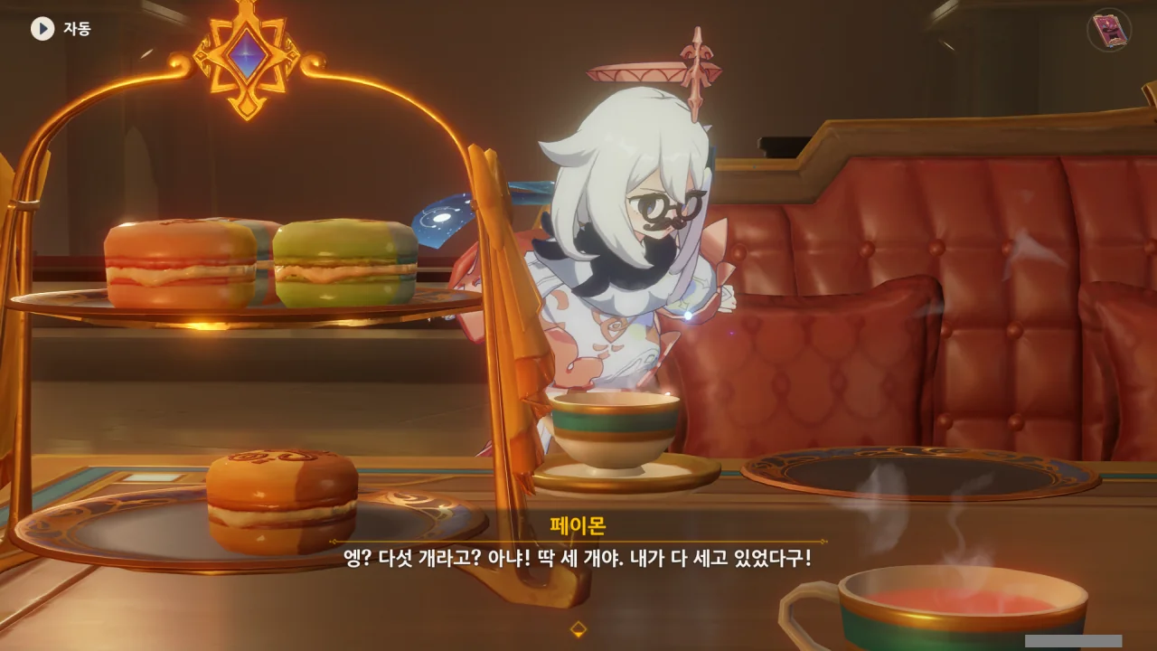 페이몬: 제삼자는 없어! 페이몬도 마카롱을 세 개밖에 안 먹었고!