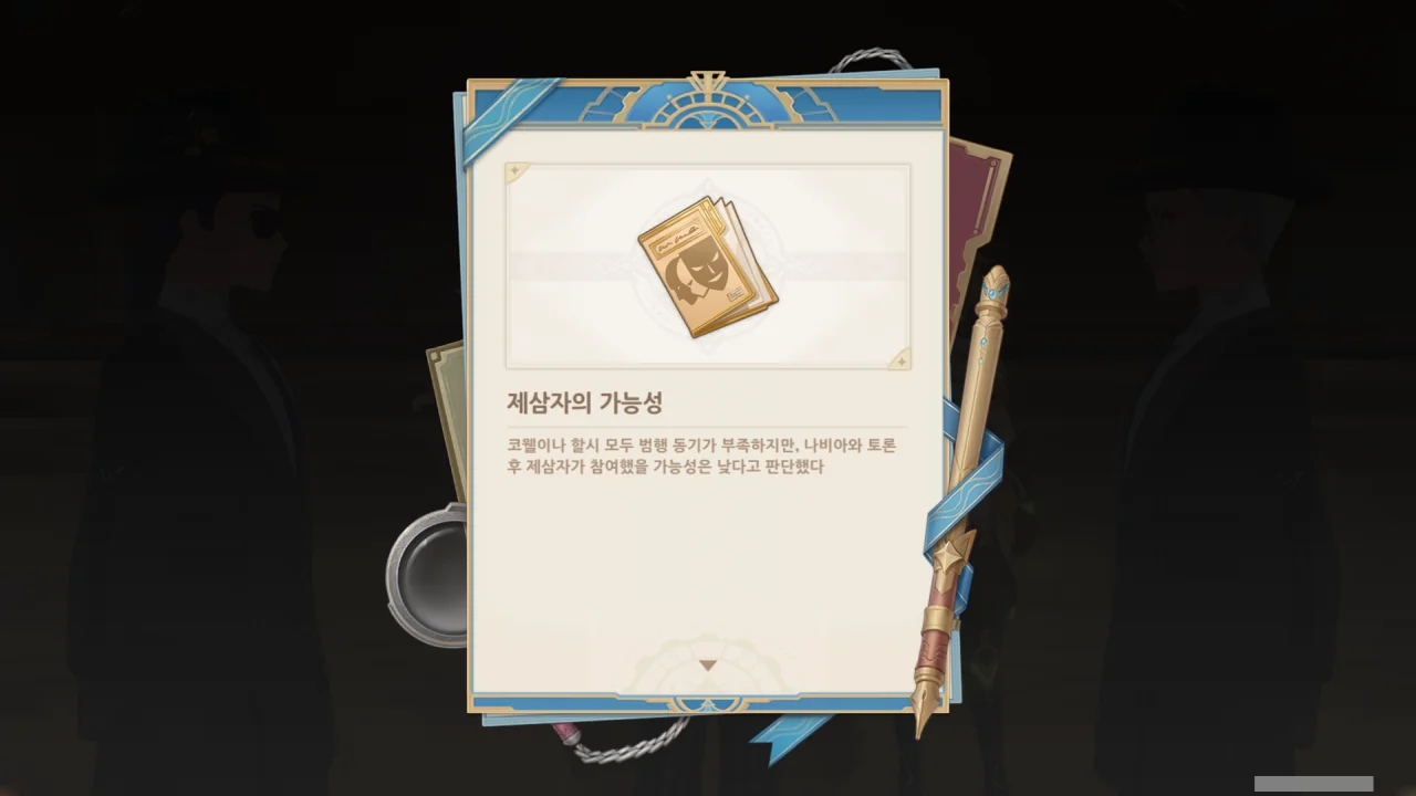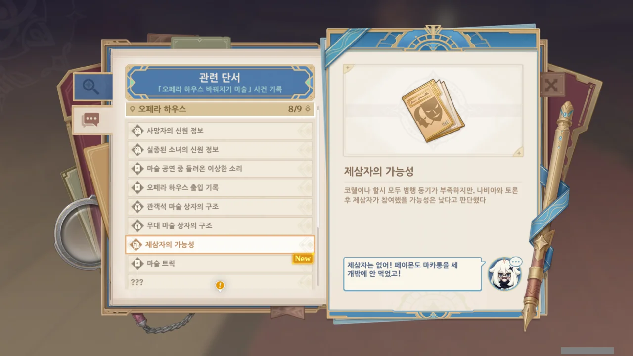 할시가 코웰을 없애기 위해 마술 도구에 손을 쓰고 혼자 도망친 게 아닐까 페이몬이 추측한다.