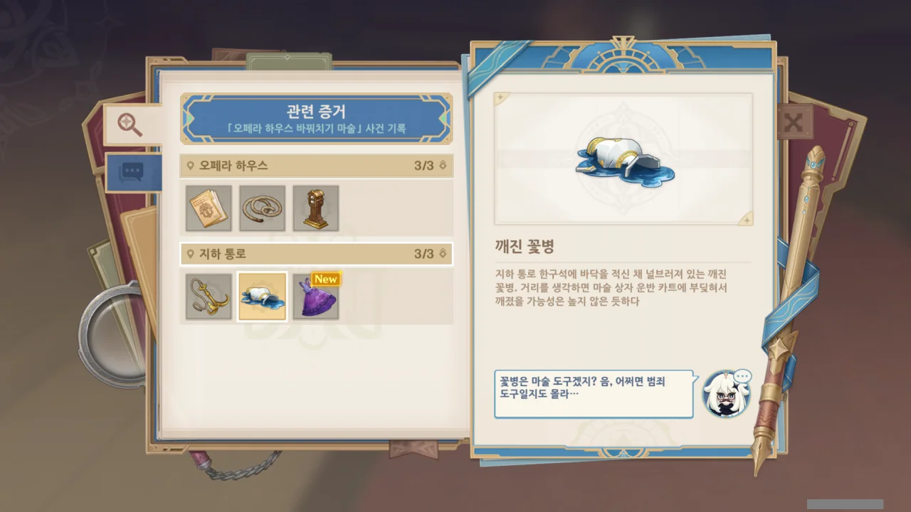 페이몬: 꽃병은 마술 도구겠지? 음, 어쩌면 범죄 도구일지도 몰라…