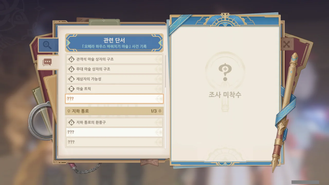 임무 안내에 따르면, 분명 조사해야 할 것이 하나 더 있다는데, 극장 안에서 아무리 「수색 감지」 스킬을 사용해도 조사할 수 있는 대상이 더 나타나지 않았다.
