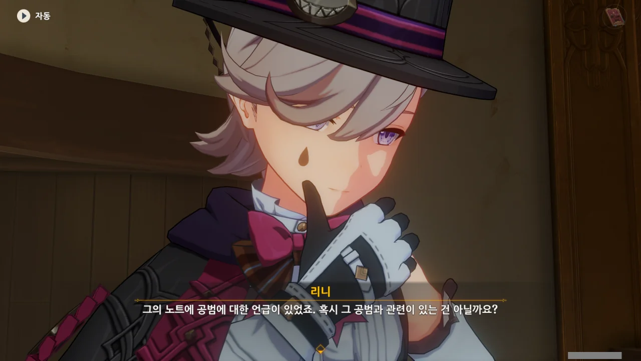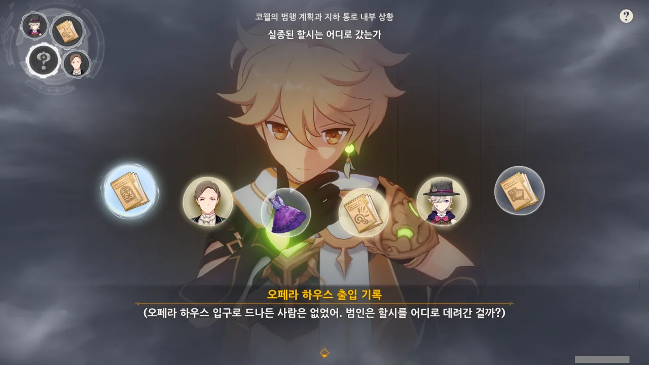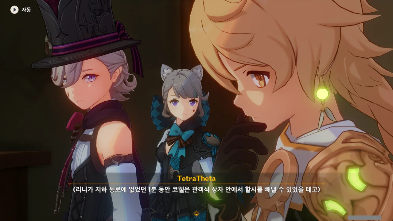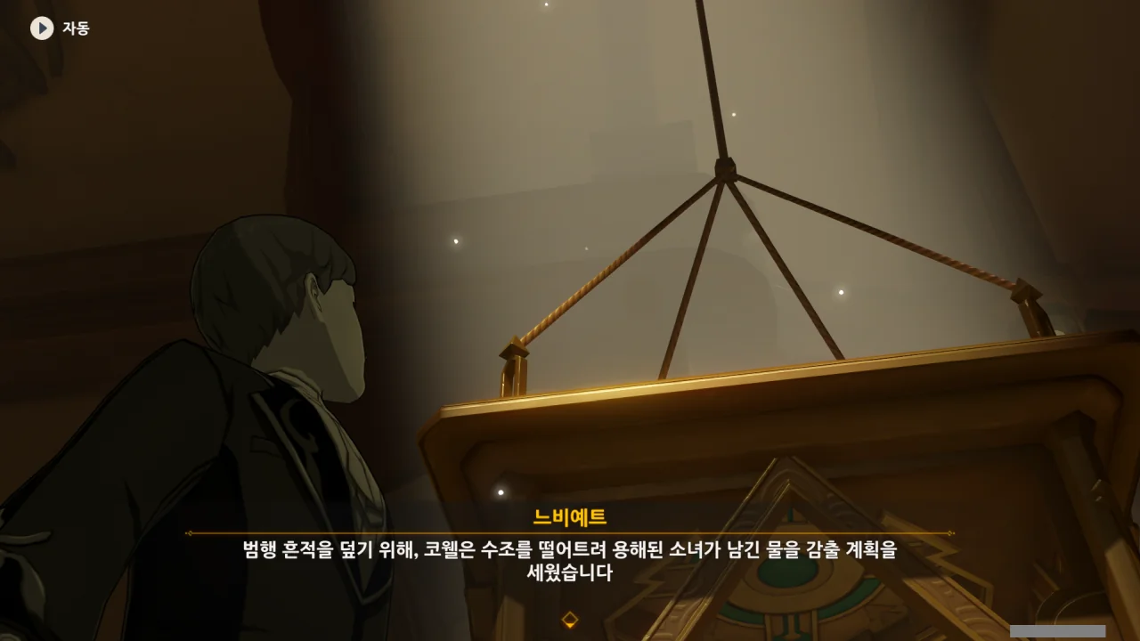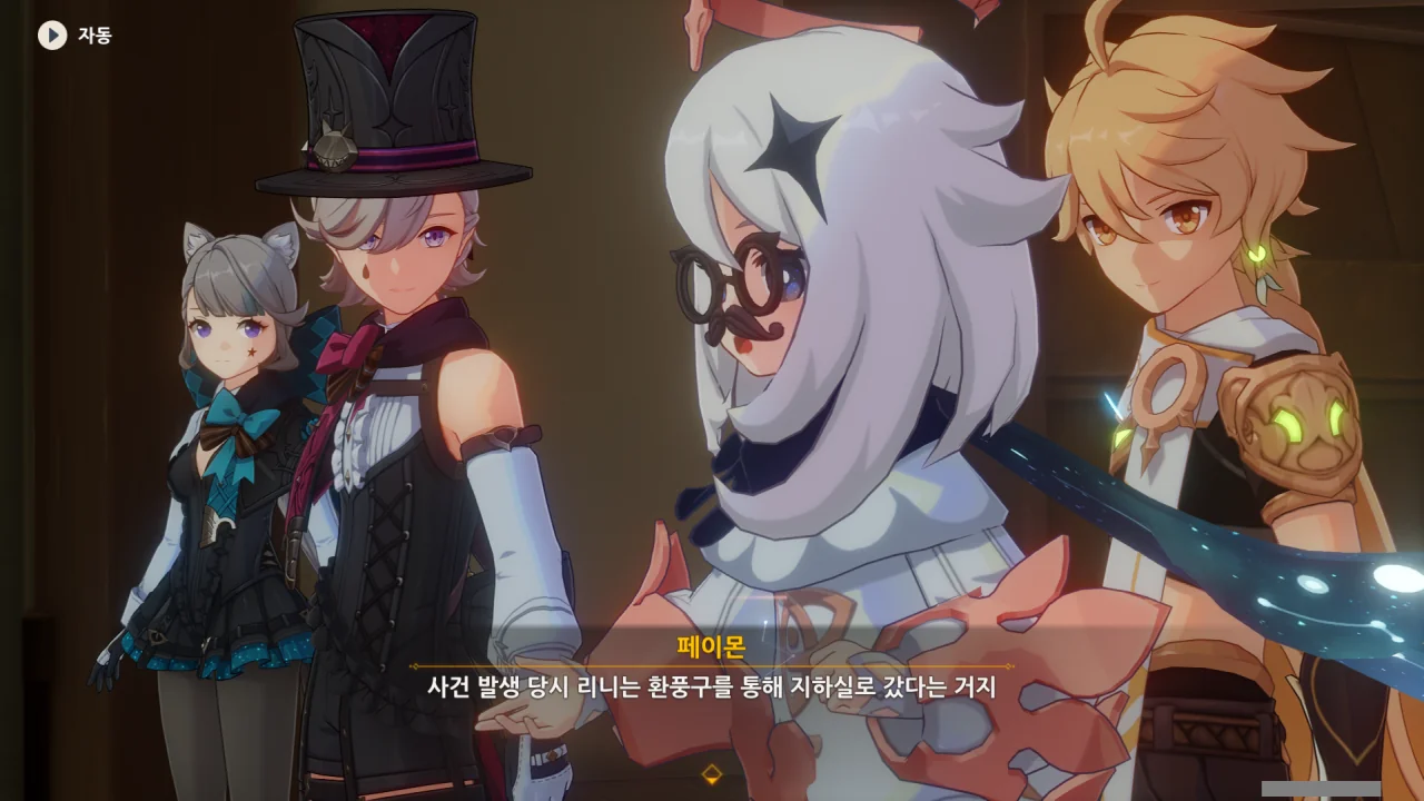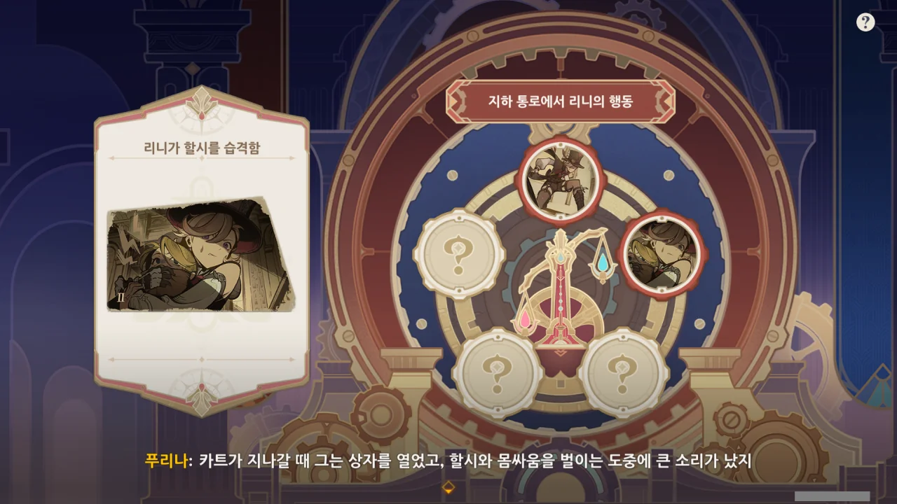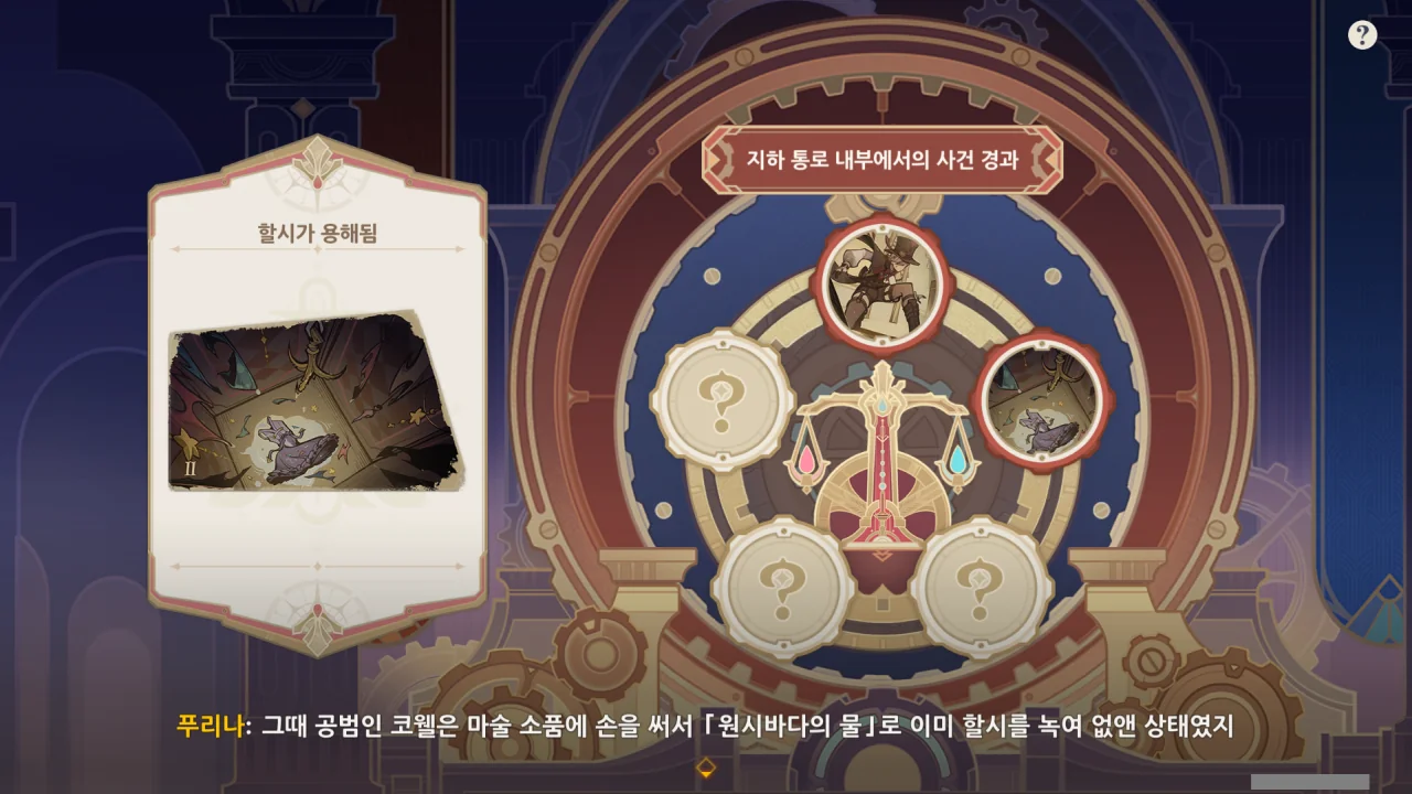 페이몬이 "코웰이 지하 통로로 들어가지 않았을 경우, 리니는 누구를 죽이려고 했을까?"라고 말하는데, 이후 대사와의 연결이 어딘가 매끄럽지 않다. '코웰을 그런 방식으로 죽일 이유가 없다'라고 해석하는 게 더 나을 것 같다.