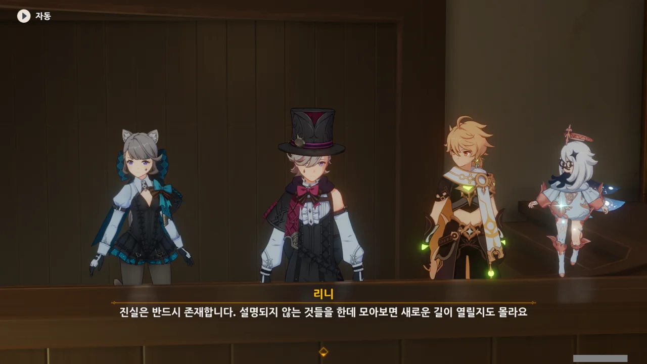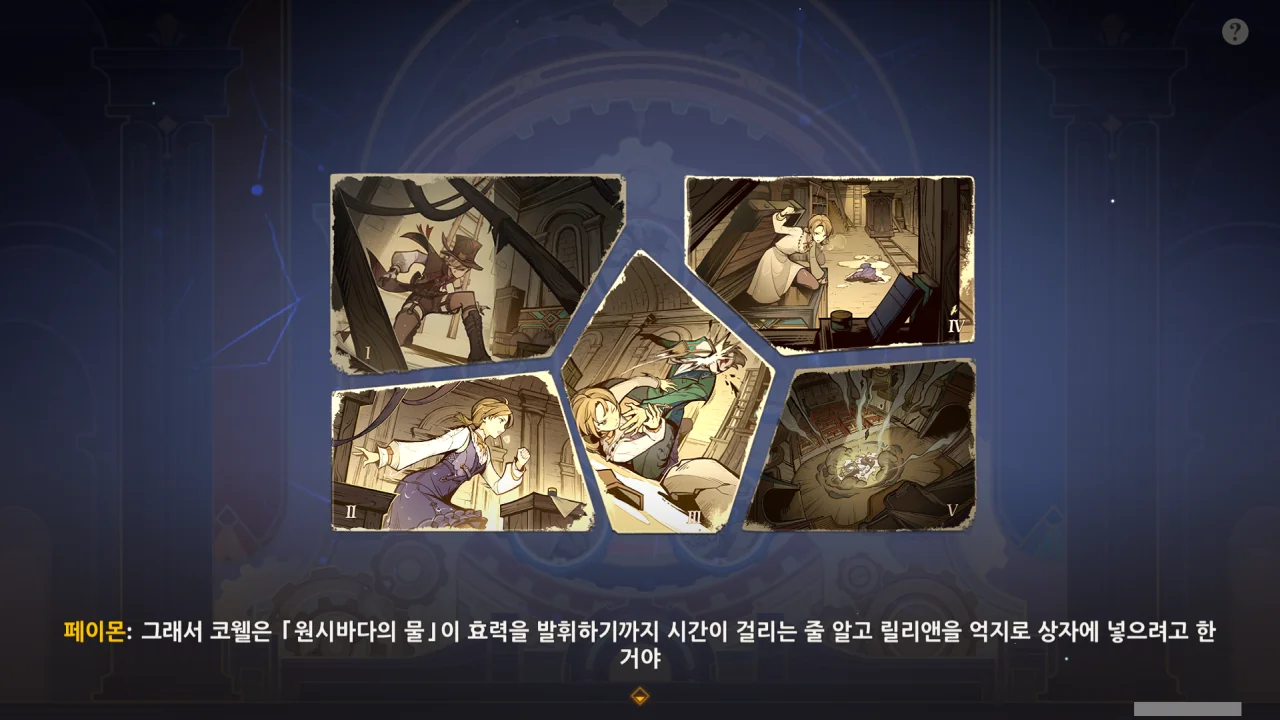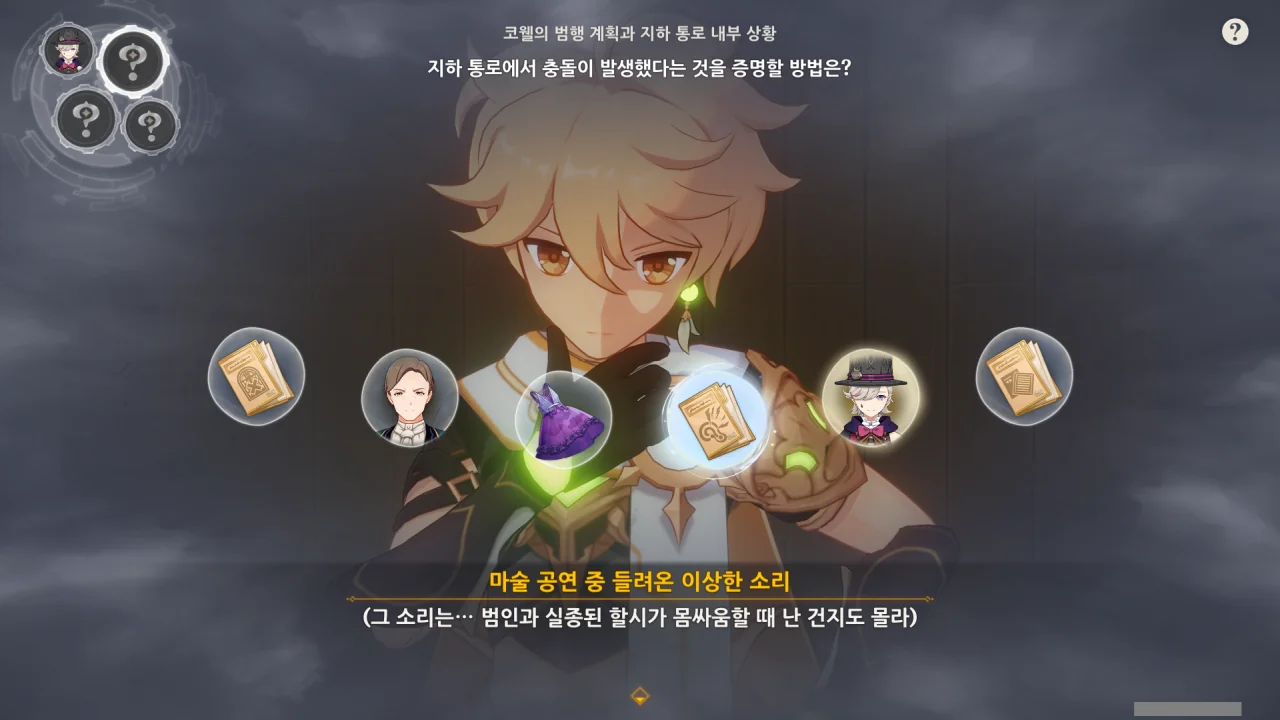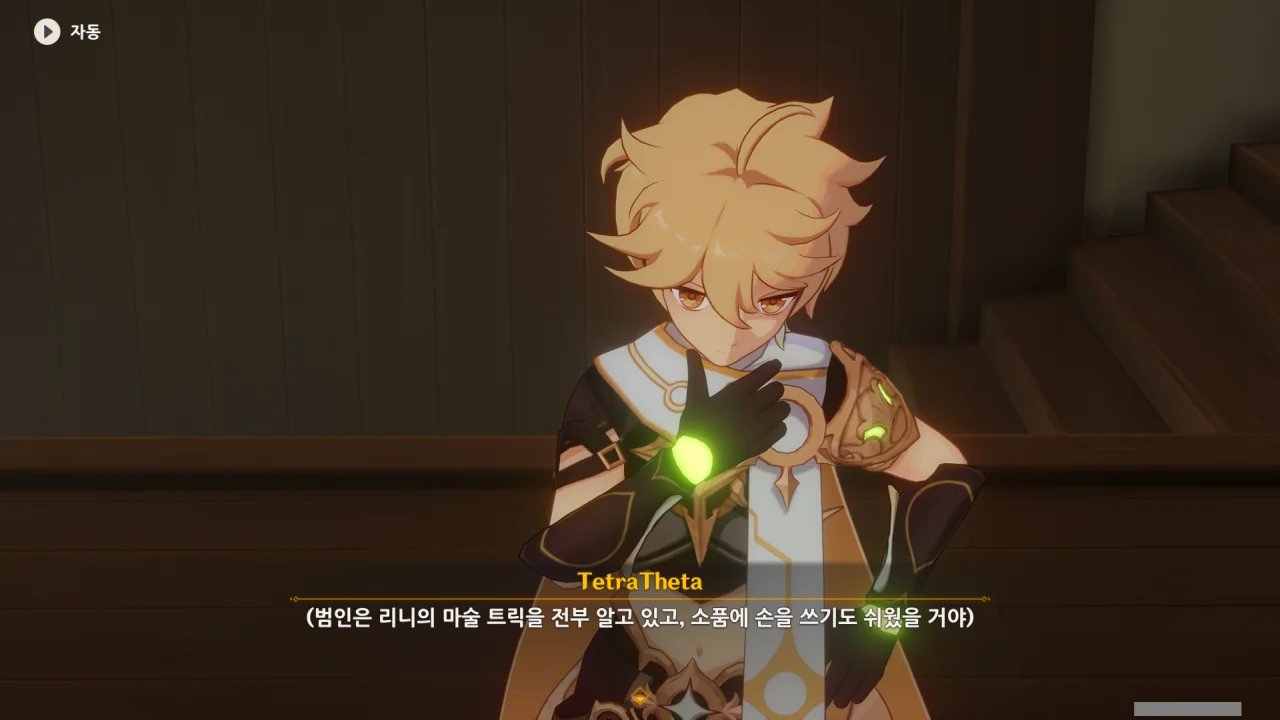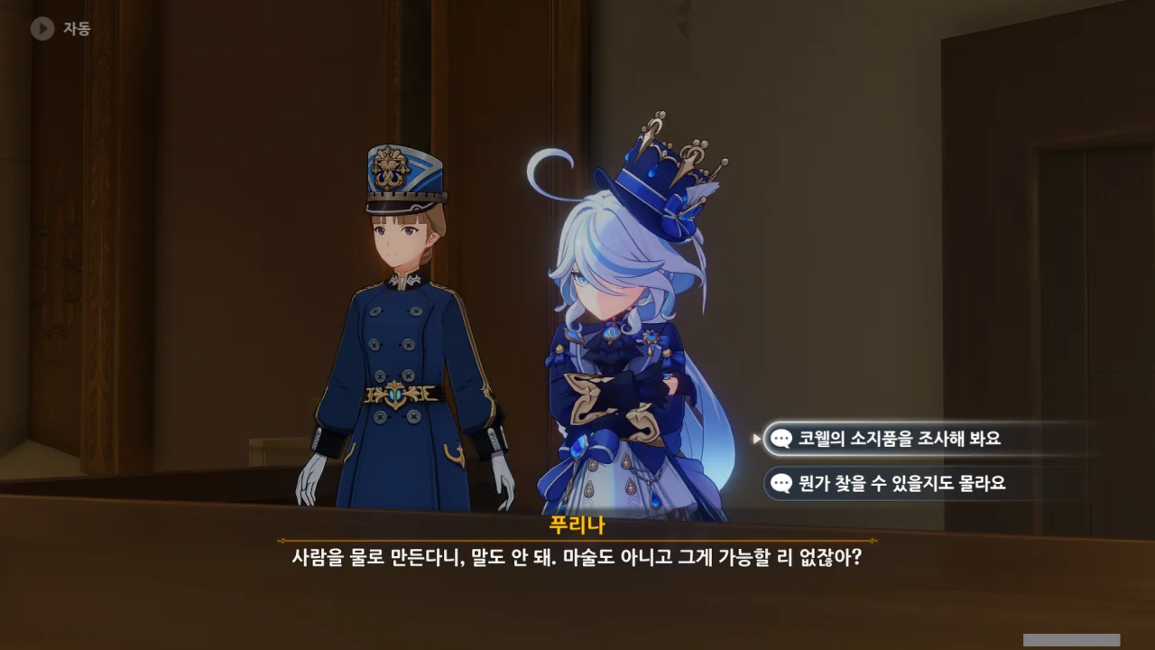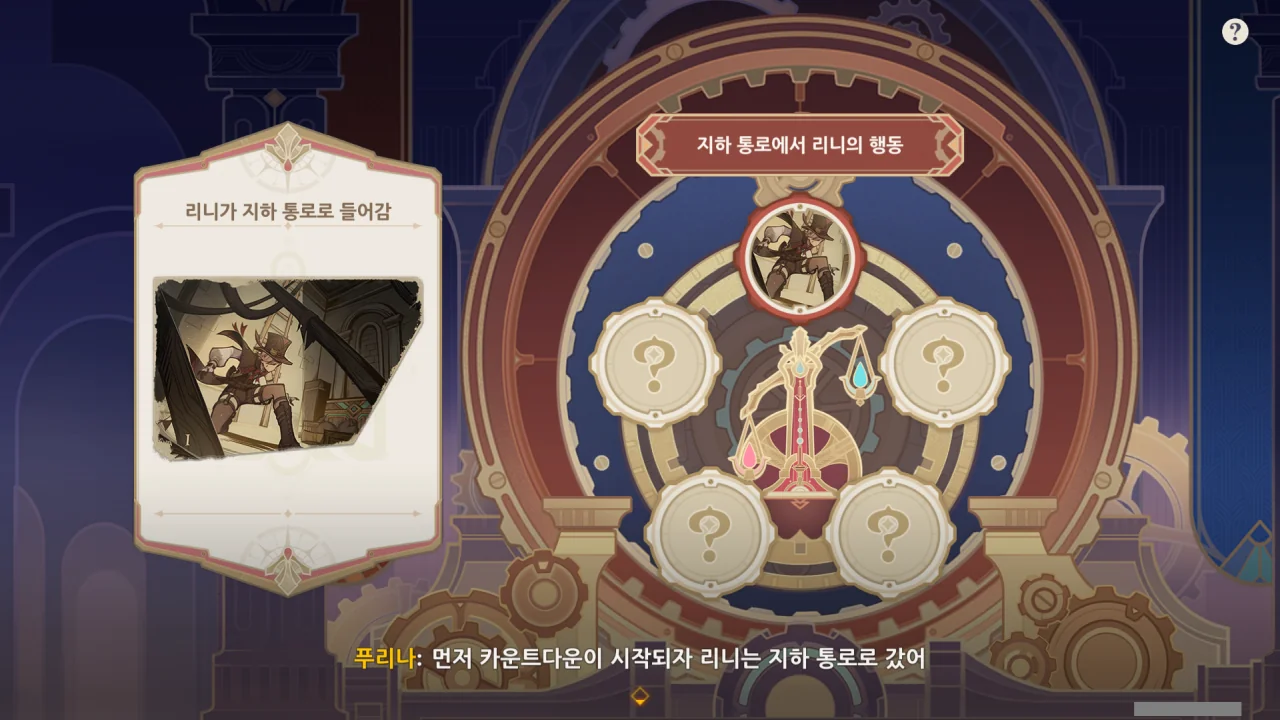 페이몬이 "코웰이 지하 통로로 들어가지 않았을 경우, 리니는 누구를 죽이려고 했을까?"라고 말하는데, 이후 대사와의 연결이 어딘가 매끄럽지 않다. '코웰을 그런 방식으로 죽일 이유가 없다'라고 해석하는 게 더 나을 것 같다.