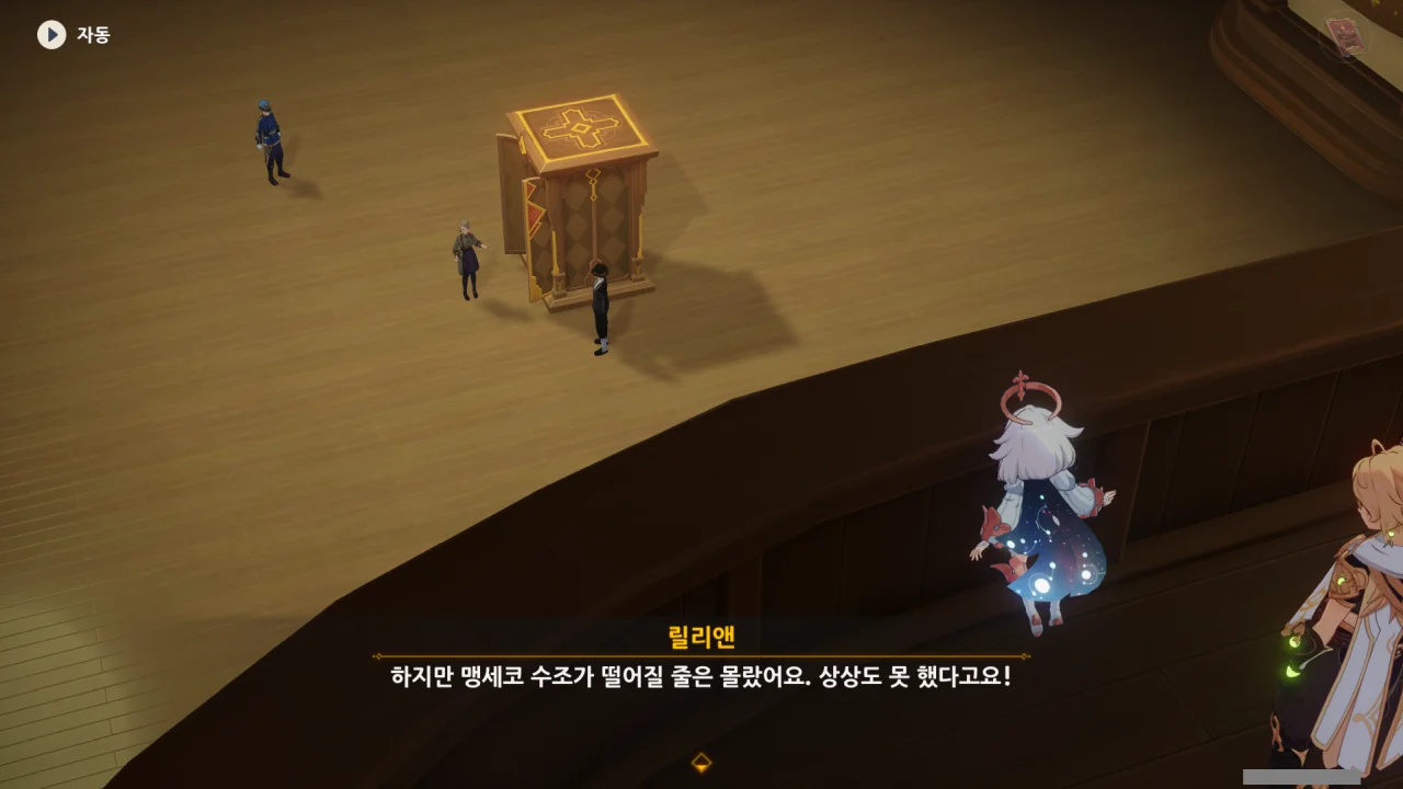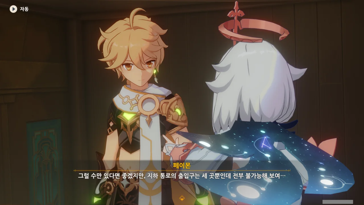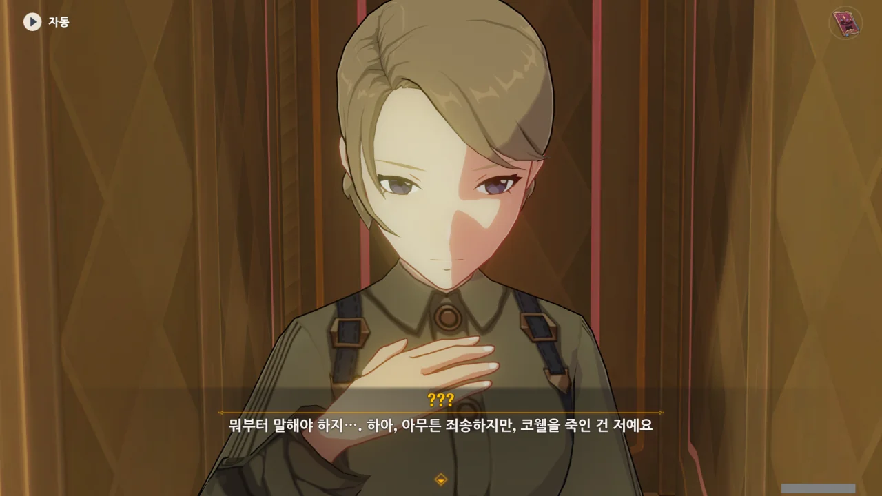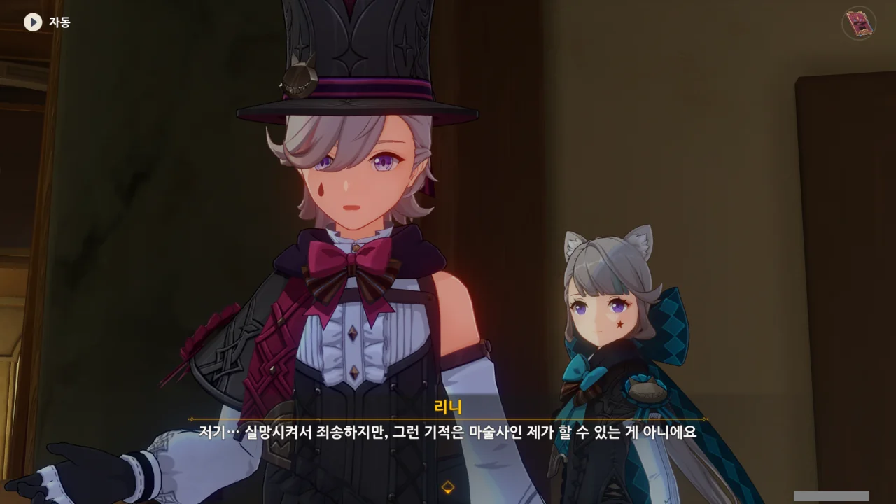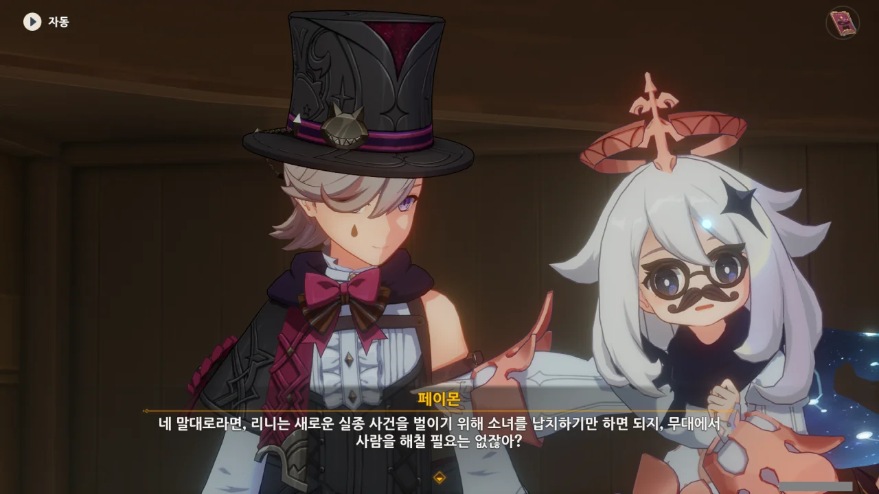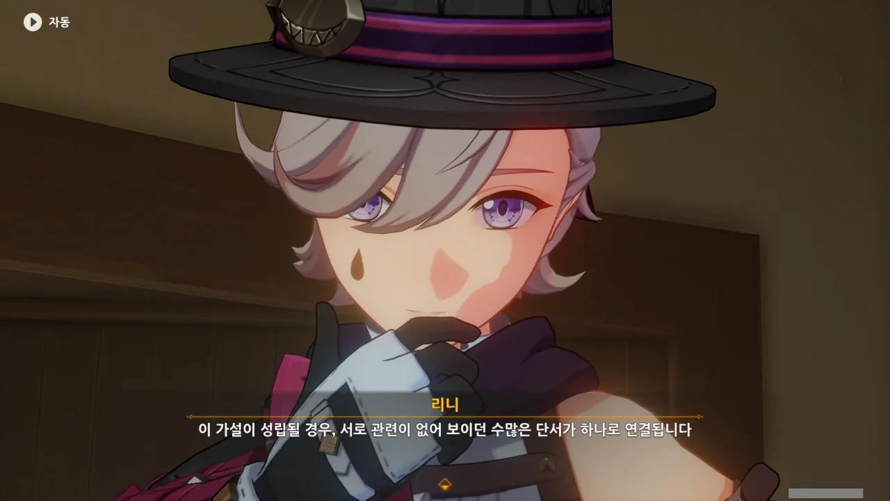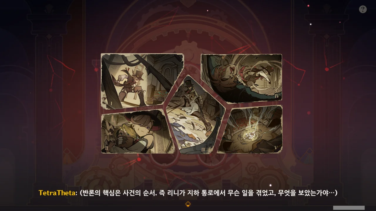 페이몬이 "코웰이 지하 통로로 들어가지 않았을 경우, 리니는 누구를 죽이려고 했을까?"라고 말하는데, 이후 대사와의 연결이 어딘가 매끄럽지 않다. '코웰을 그런 방식으로 죽일 이유가 없다'라고 해석하는 게 더 나을 것 같다.
