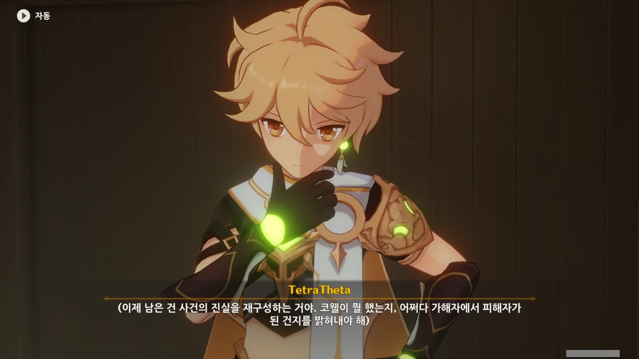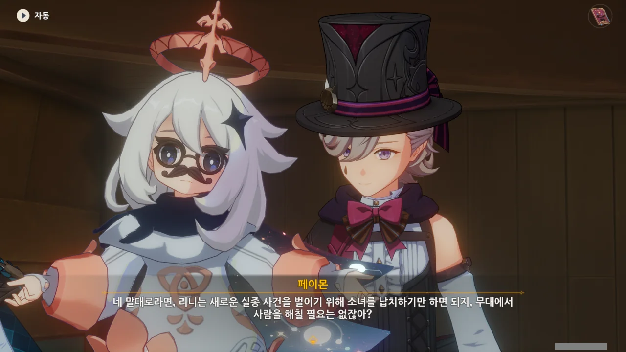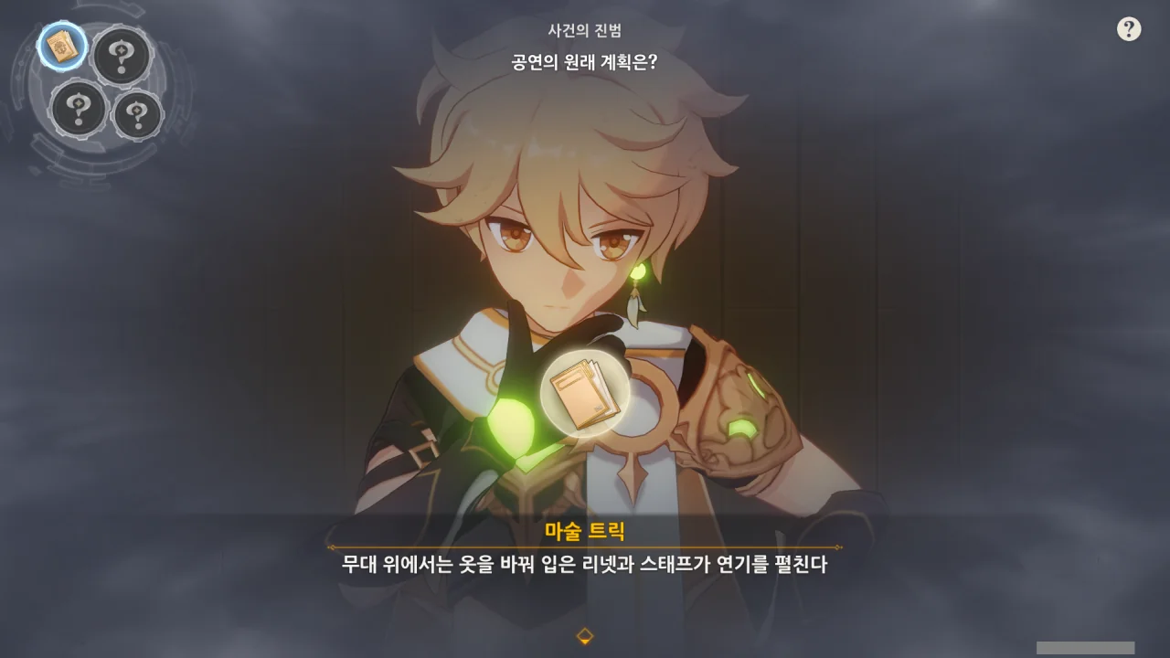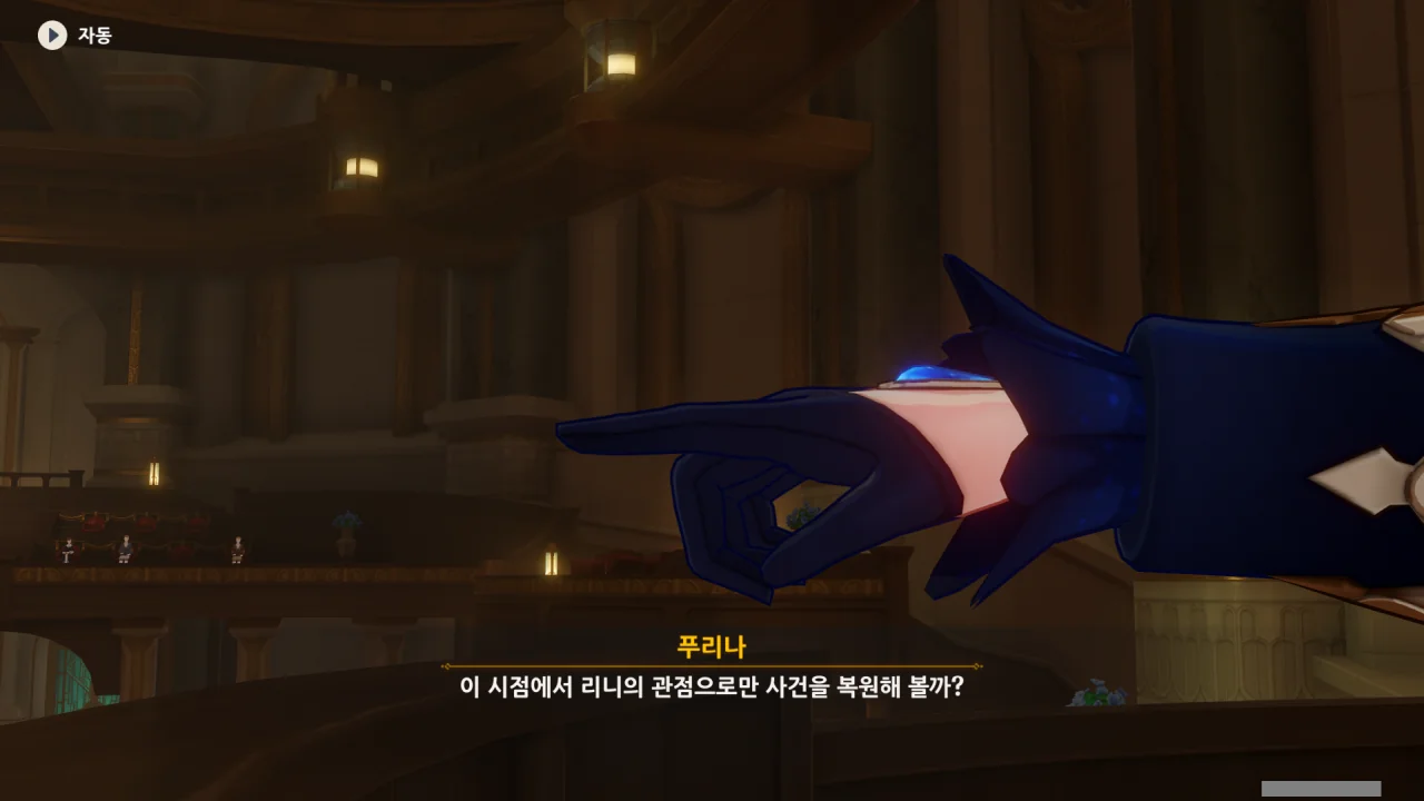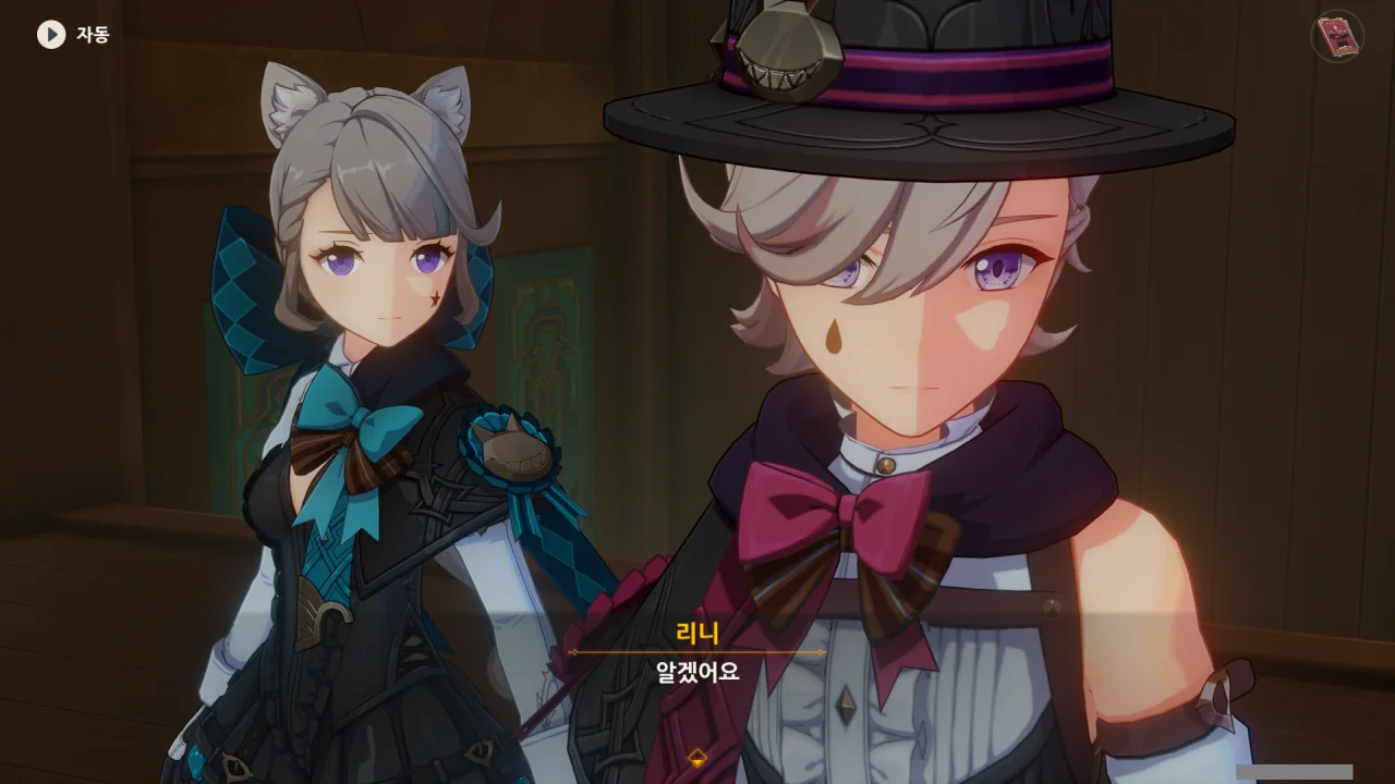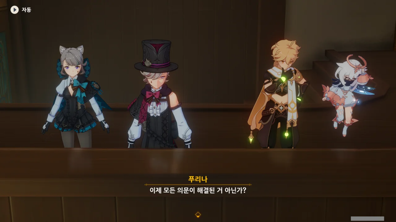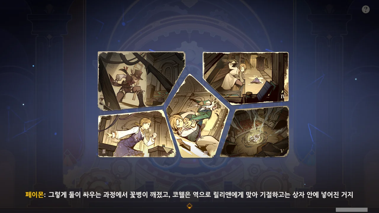 페이몬이 "코웰이 지하 통로로 들어가지 않았을 경우, 리니는 누구를 죽이려고 했을까?"라고 말하는데, 이후 대사와의 연결이 어딘가 매끄럽지 않다. '코웰을 그런 방식으로 죽일 이유가 없다'라고 해석하는 게 더 나을 것 같다.