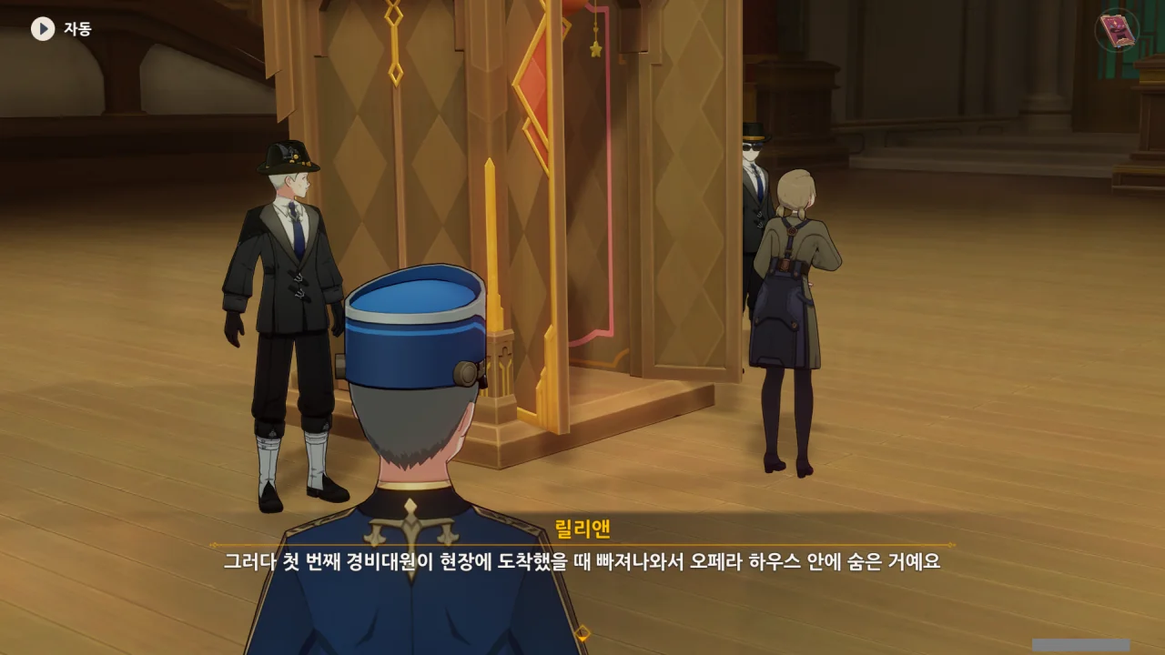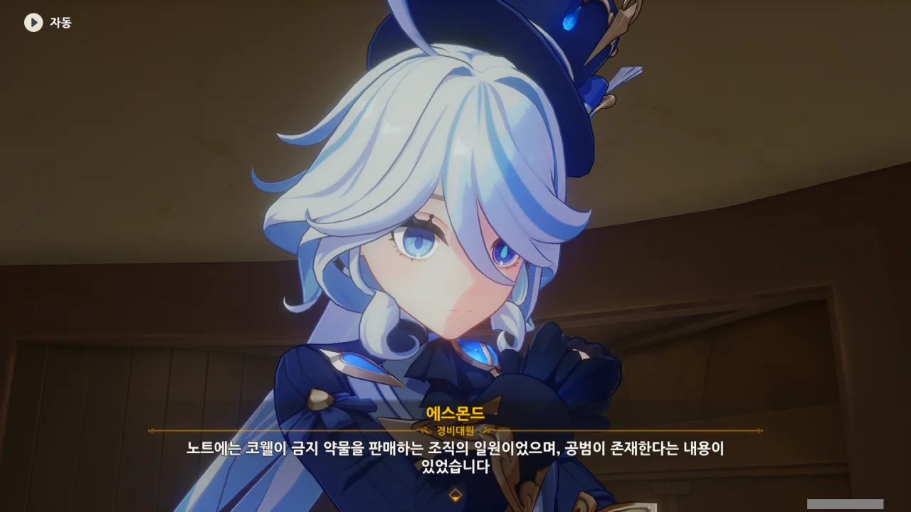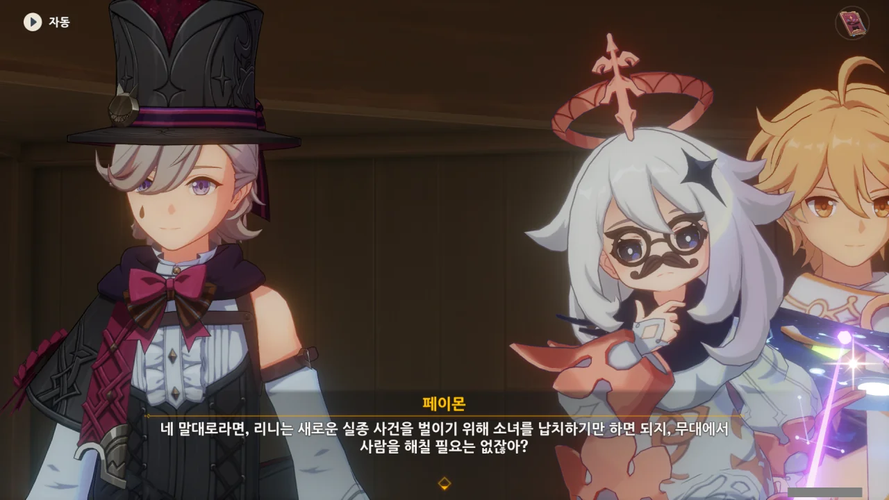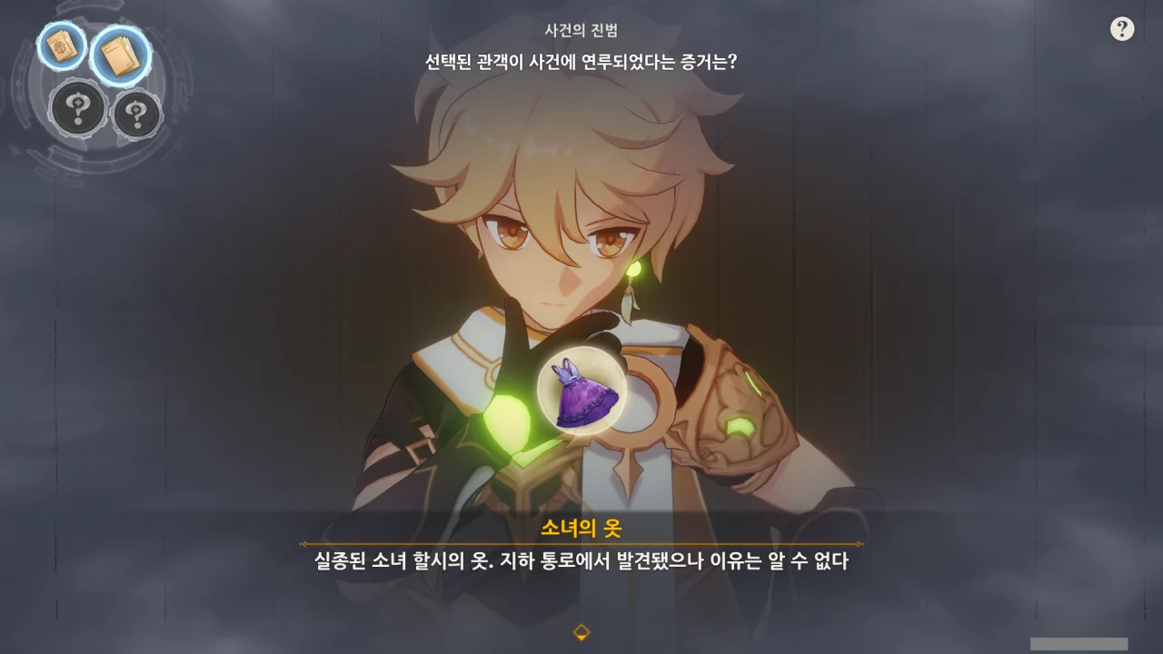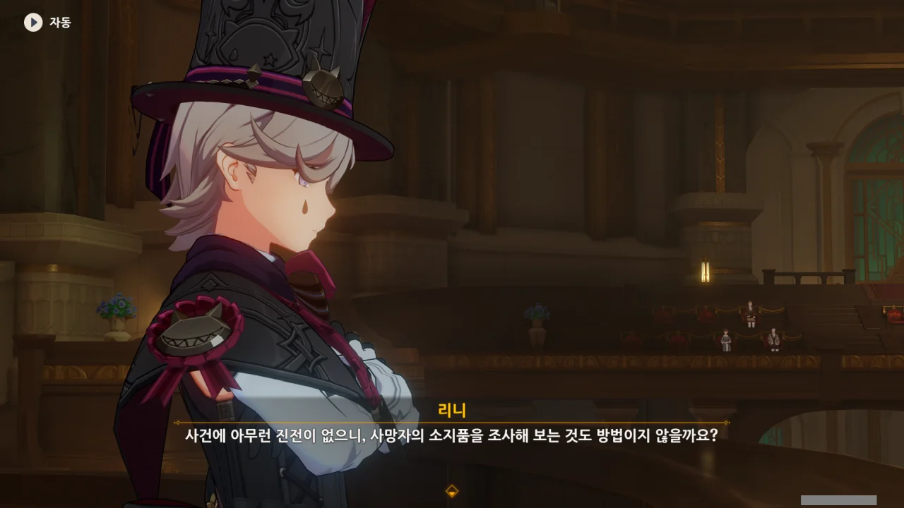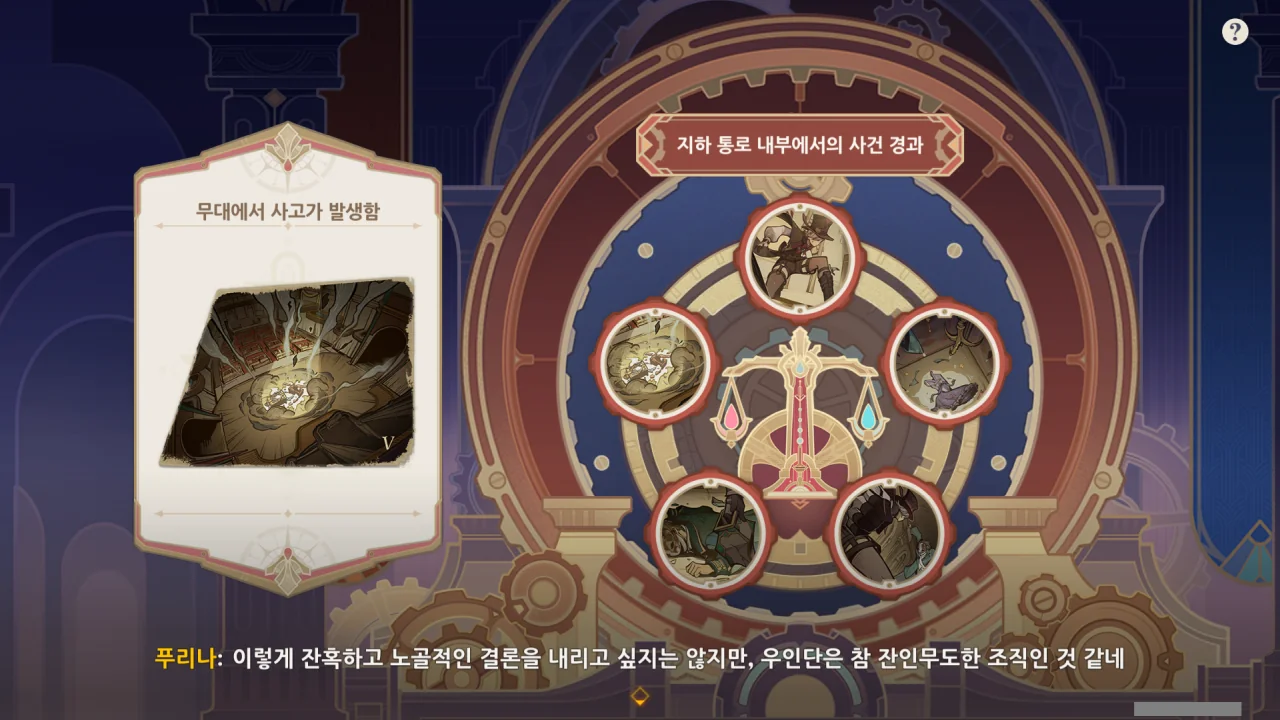 페이몬이 "코웰이 지하 통로로 들어가지 않았을 경우, 리니는 누구를 죽이려고 했을까?"라고 말하는데, 이후 대사와의 연결이 어딘가 매끄럽지 않다. '코웰을 그런 방식으로 죽일 이유가 없다'라고 해석하는 게 더 나을 것 같다.