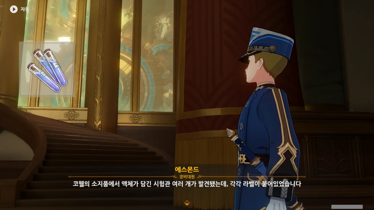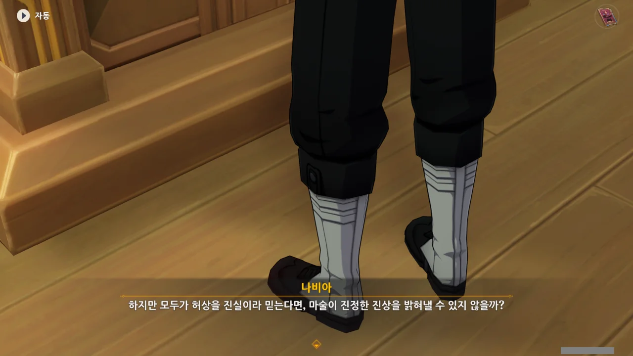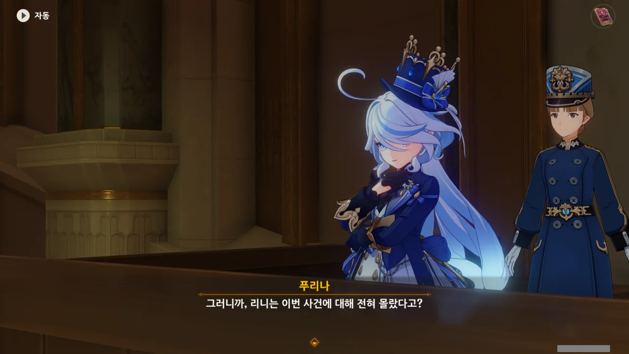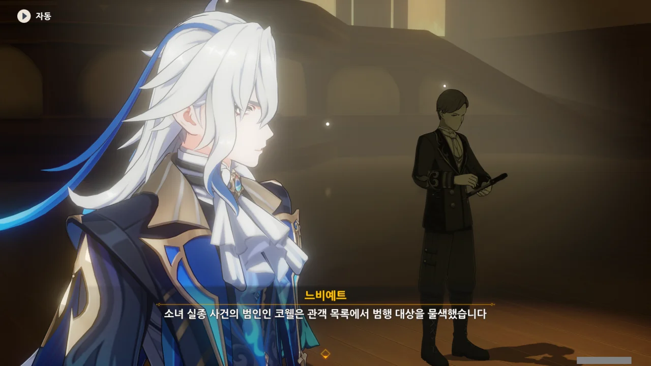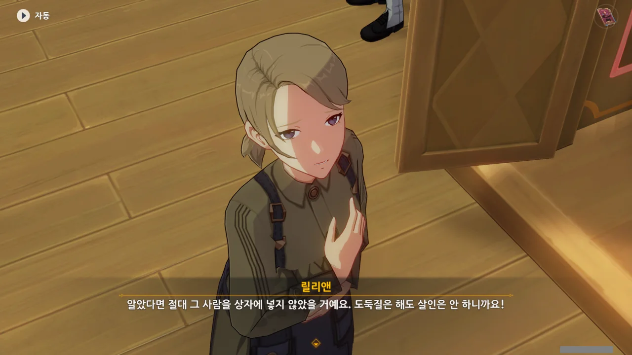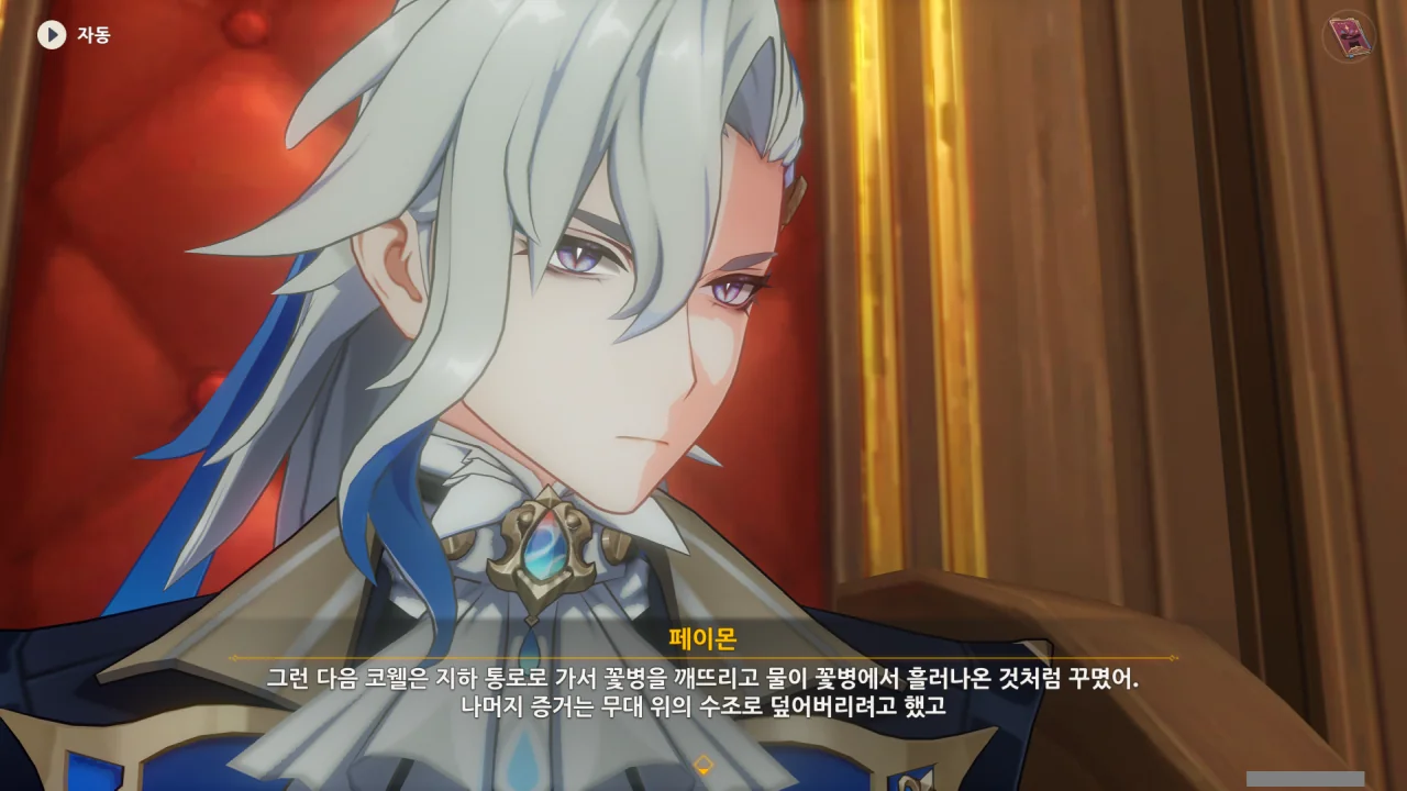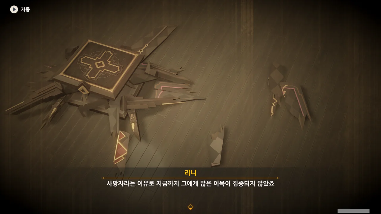 페이몬이 "코웰이 지하 통로로 들어가지 않았을 경우, 리니는 누구를 죽이려고 했을까?"라고 말하는데, 이후 대사와의 연결이 어딘가 매끄럽지 않다. '코웰을 그런 방식으로 죽일 이유가 없다'라고 해석하는 게 더 나을 것 같다.