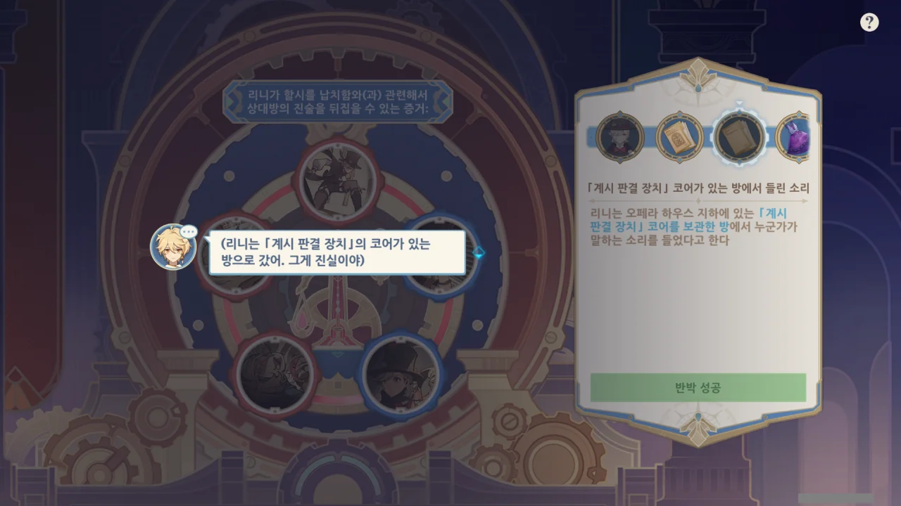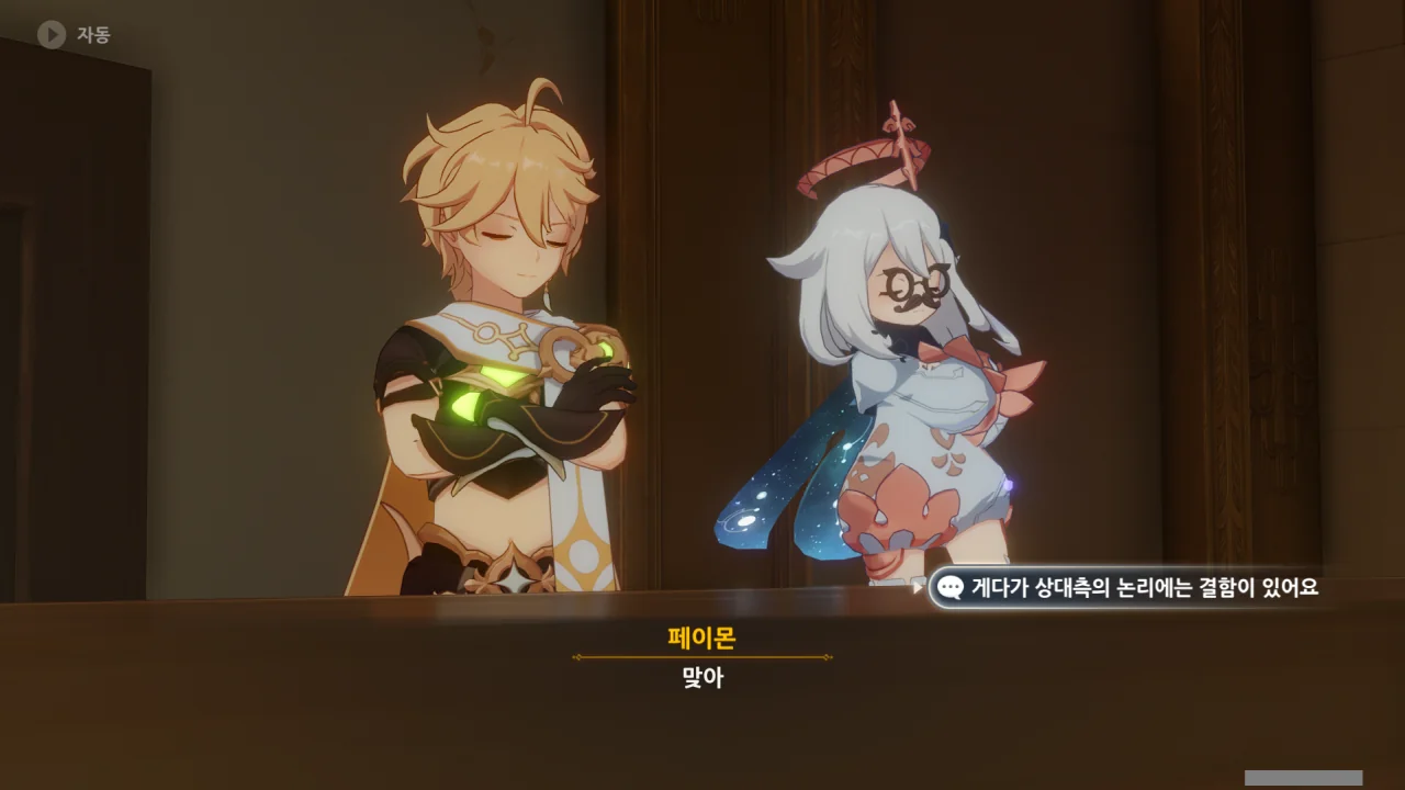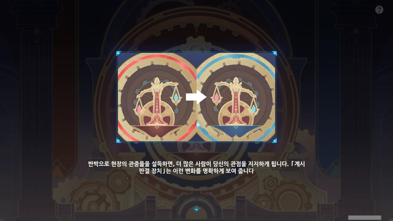 많은 관객들이 페이몬의 말에 동감한다. 「계시 판결 장치」의 저울도 단숨에 여행자 쪽으로 확 기울었다.