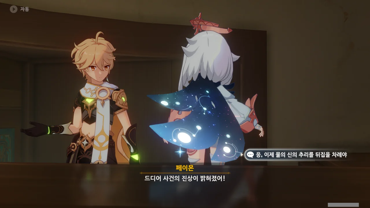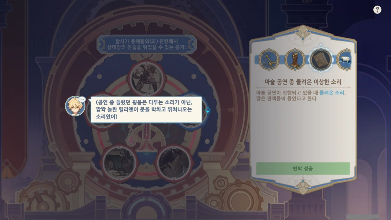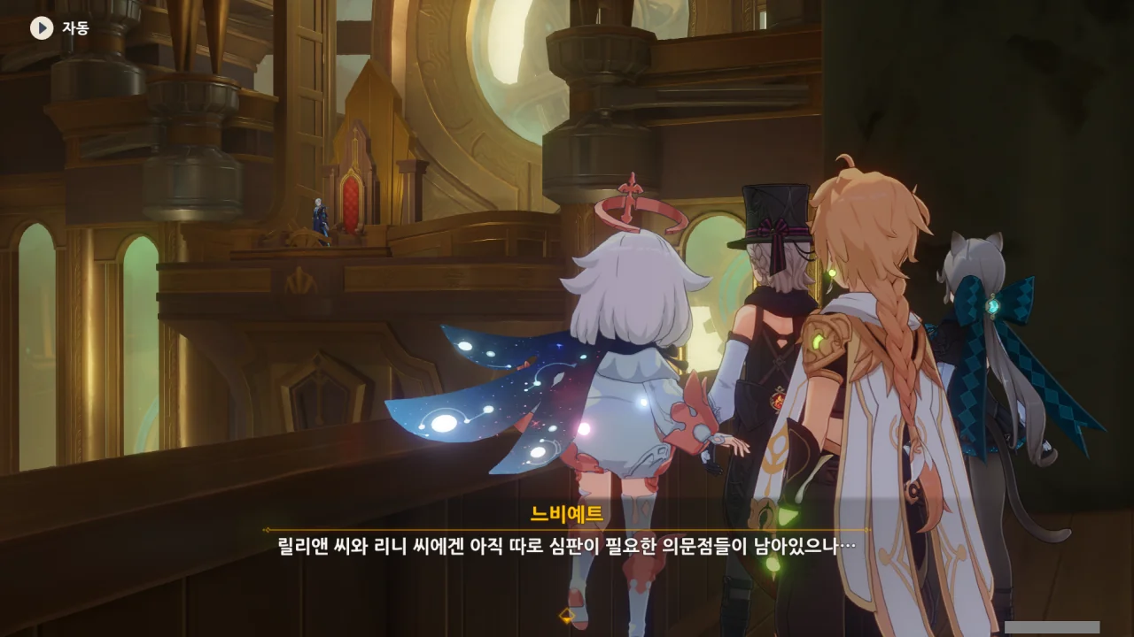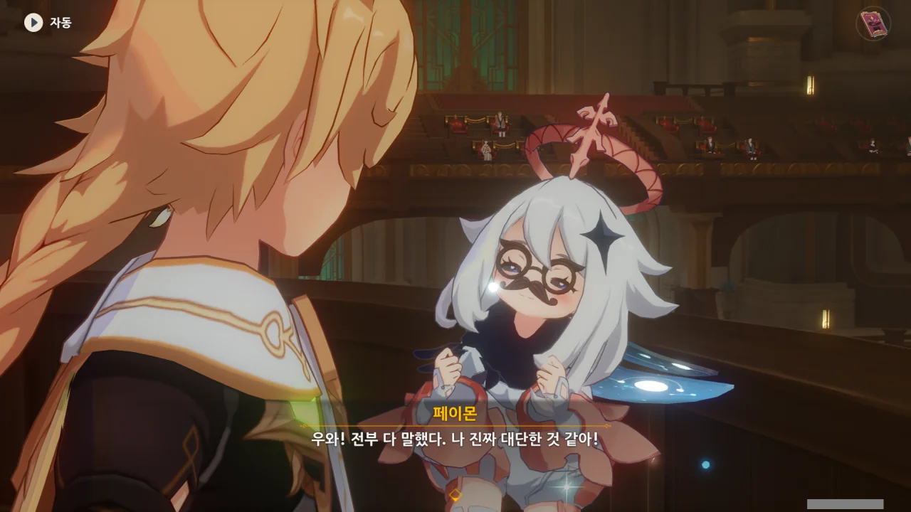 많은 관객들이 페이몬의 말에 동감한다. 「계시 판결 장치」의 저울도 단숨에 여행자 쪽으로 확 기울었다.