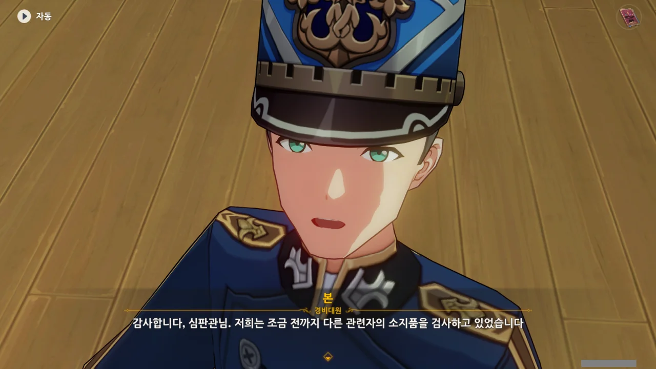 「계시 판결 장치」에 경비대원이 카드 비슷한 것을 넣는다.