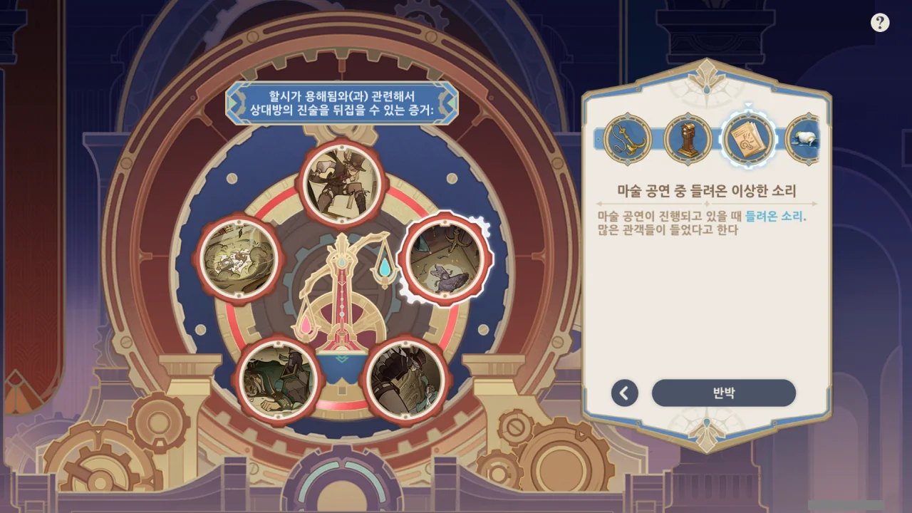 저 삿대질과 강조선을 보니, 갑자기 역전재판이 떠오른다. 설마 이번 마신 임무는 역전재판을 패러디한 것이었나?