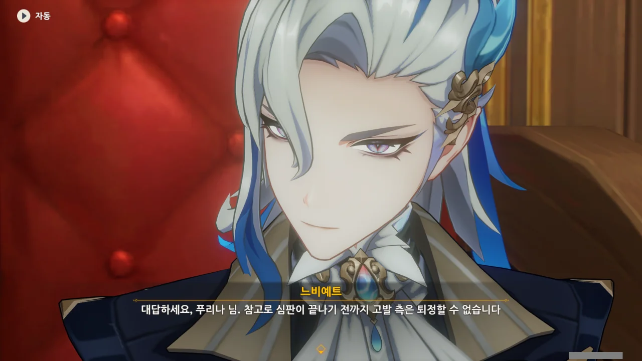 푸리나가 느비예트에게 판결을 재촉하는데, 아까 어디론가 사라졌던 나비아가 다시 되돌아와 잠깐 재판을 멈추어달라고 한다.