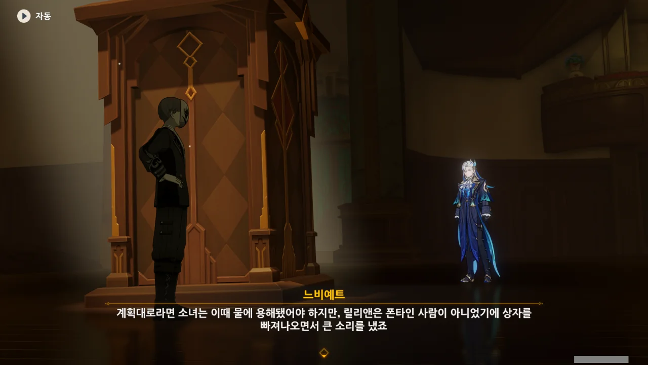 계획대로라면 소녀는 이때 물에 용해됐어야 하지만, 릴리앤은 폰타인 사람이 아니었기에 상자를 빠져나오면서 큰 소리를 냈죠.
