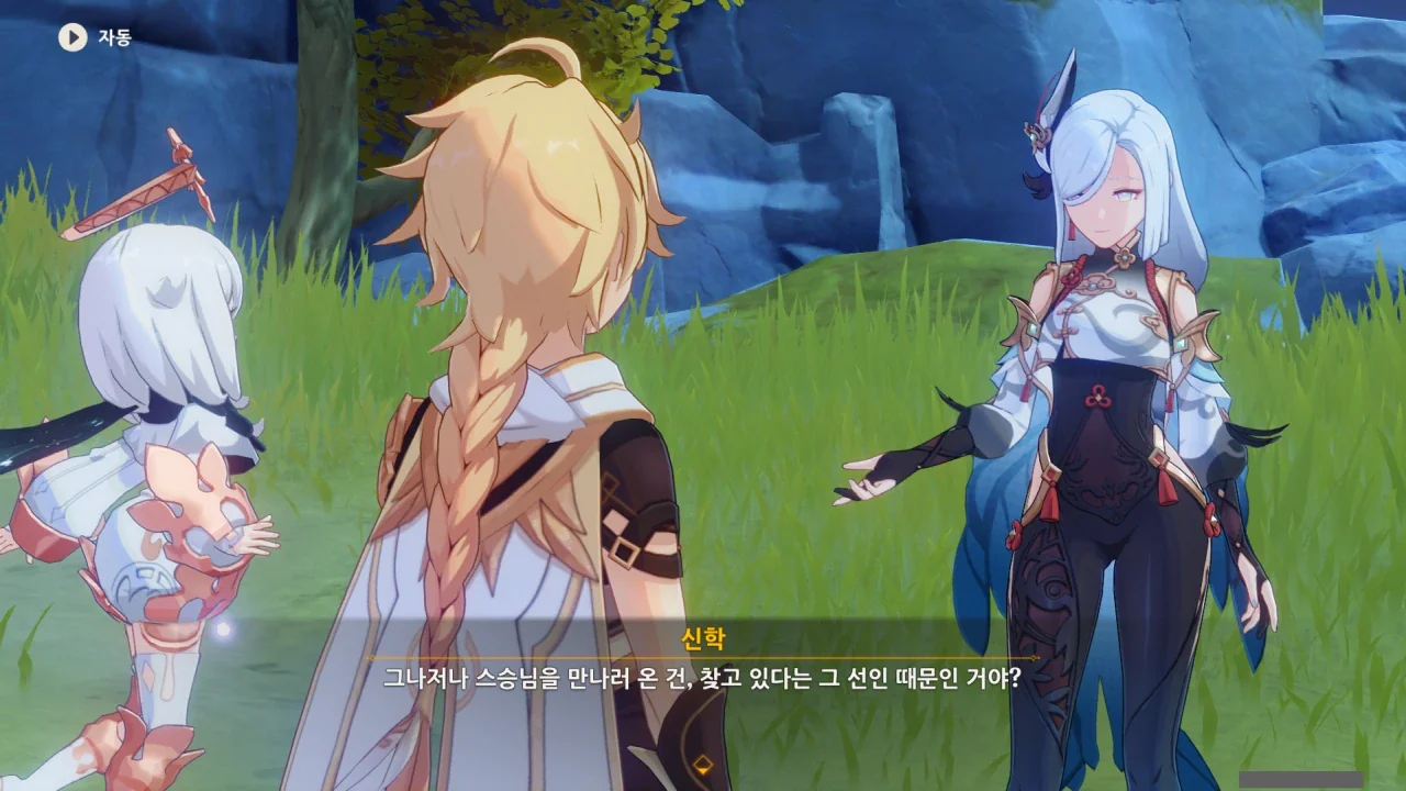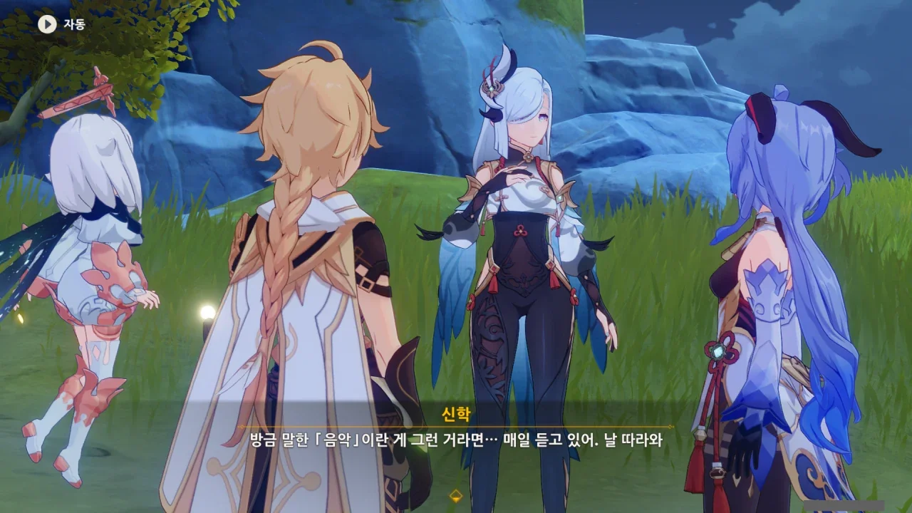 페이몬이 말한 「음악」을 매일 듣고 있다며, 일행을 안내하는 신학.