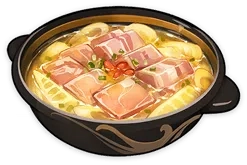 종려의 특제 요리. 햄은 월해정의 기준을 만족한 최고급 부위를, 고기는 샘물 마을에서 당일 사냥한 삼겹살을, 죽순은 경책산장의 꽉 찬 봄 죽순을 사용한다. 꼼꼼하고 세심하게 약불로 천천히 푹 삶는다… 이렇게 「까다로운」 요리이기 때문에, 그는 이런 맛을 감상할 줄 아는 사람과만 나누고 싶어 한다.