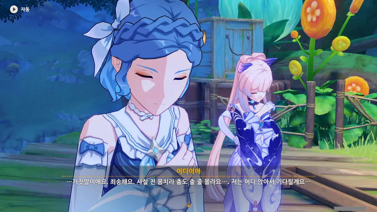 낙담해하는 이디이아를 코코미가 잘 달래 기운을 북돋아준다.