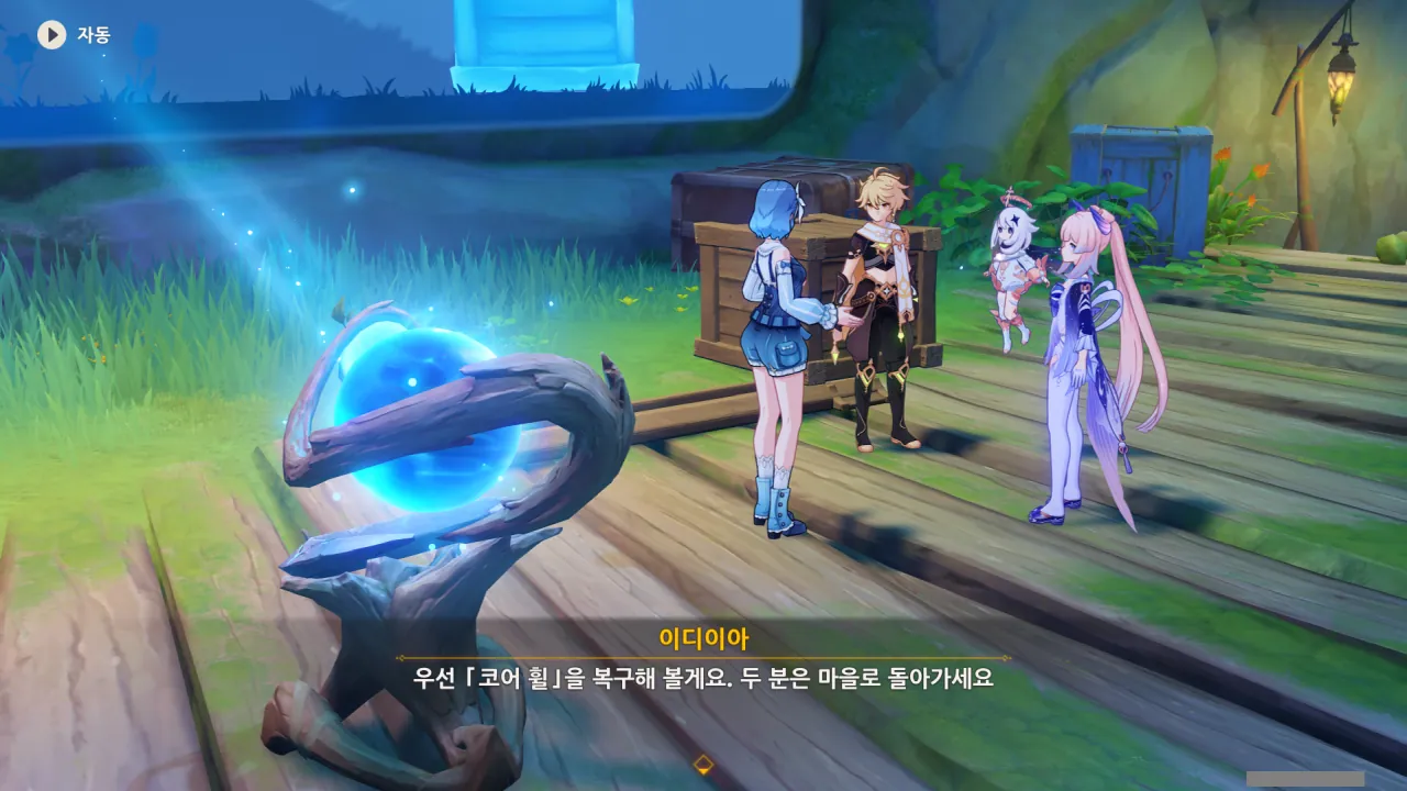 이디이아가 코어 휠을 복구할 동안, 일행은 마을로 돌아가기로 했다.